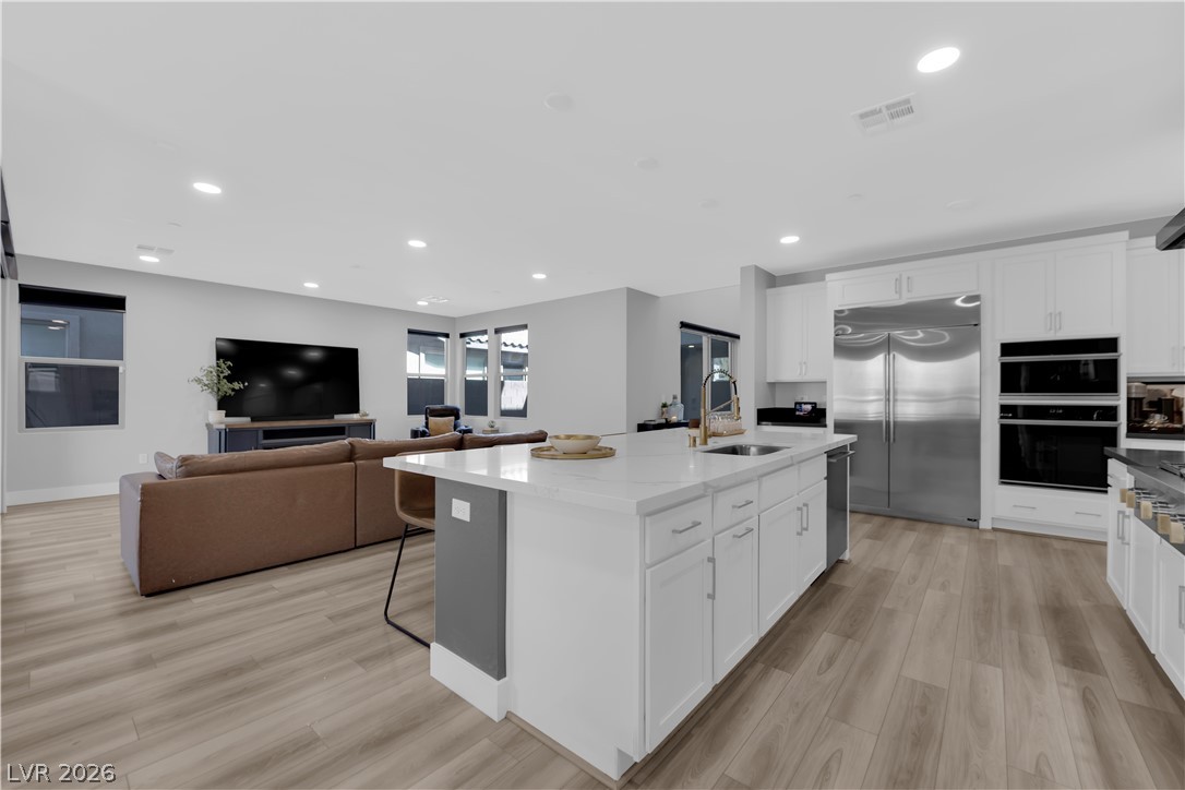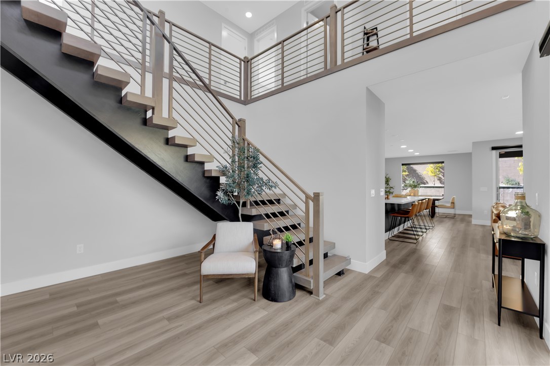 Beautifully designed home in the highly desirable Kings Canyon neighborhood of Redpoint Village. From the moment you step inside, the open and airy layout creates a welcoming space ideal for both everyday living and entertaining. The stylish kitchen flows into spacious gathering areas, while a versatile loft offers the perfect place for a home office, media space, or additional lounge. A downstairs bedroom adds flexibility for guests or multi-generational living, while the upstairs primary suite provides a peaceful retreat. The backyard is already finished with lush turf and trees, creating a private, low-maintenance outdoor space perfect for relaxing or entertaining. Located within the award-winning master-planned community of Summerlin West, residents enjoy miles of scenic walking and biking trails, beautiful parks, and close proximity to the outdoor beauty of Red Rock Canyon National Conservation Area