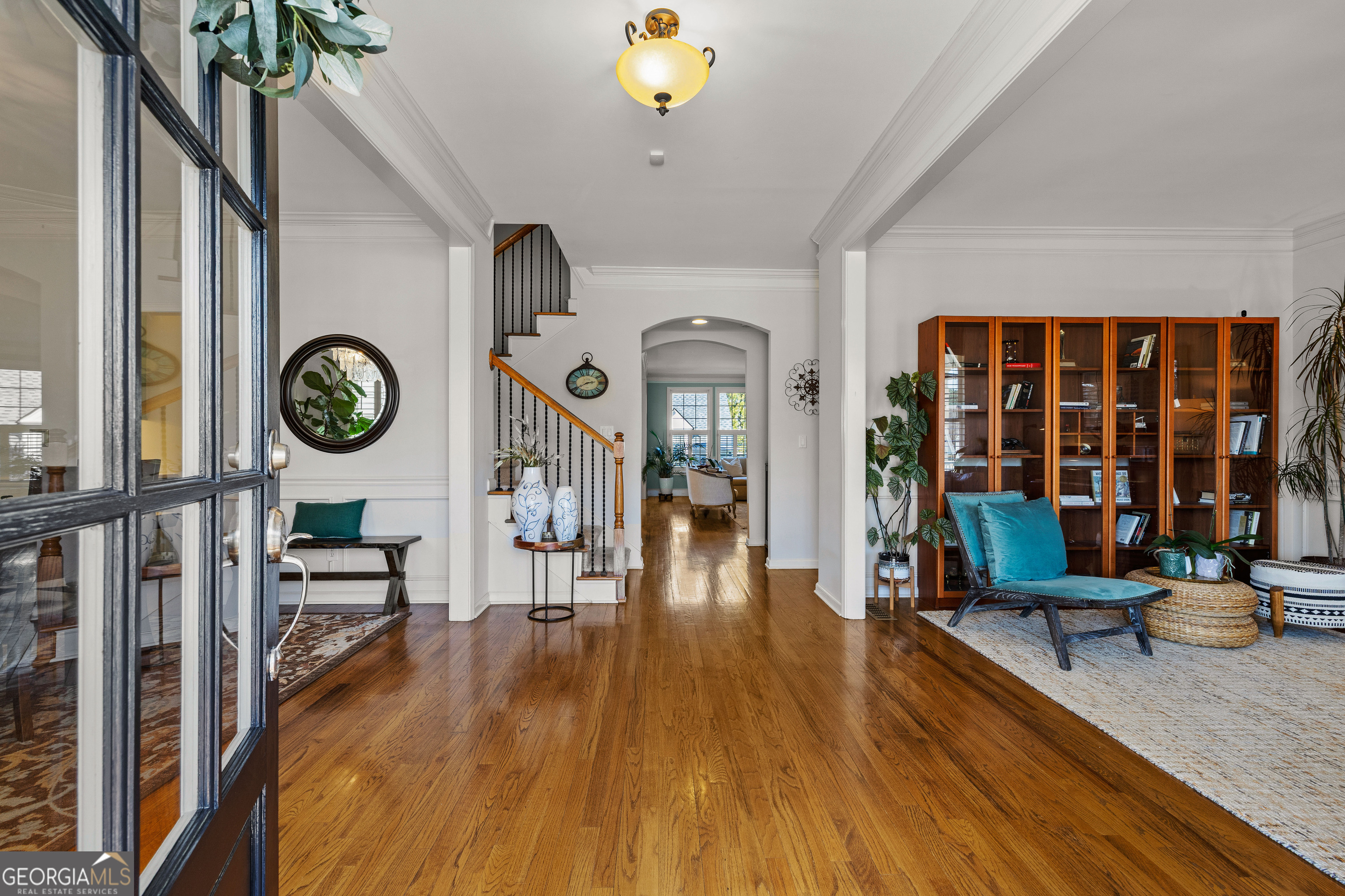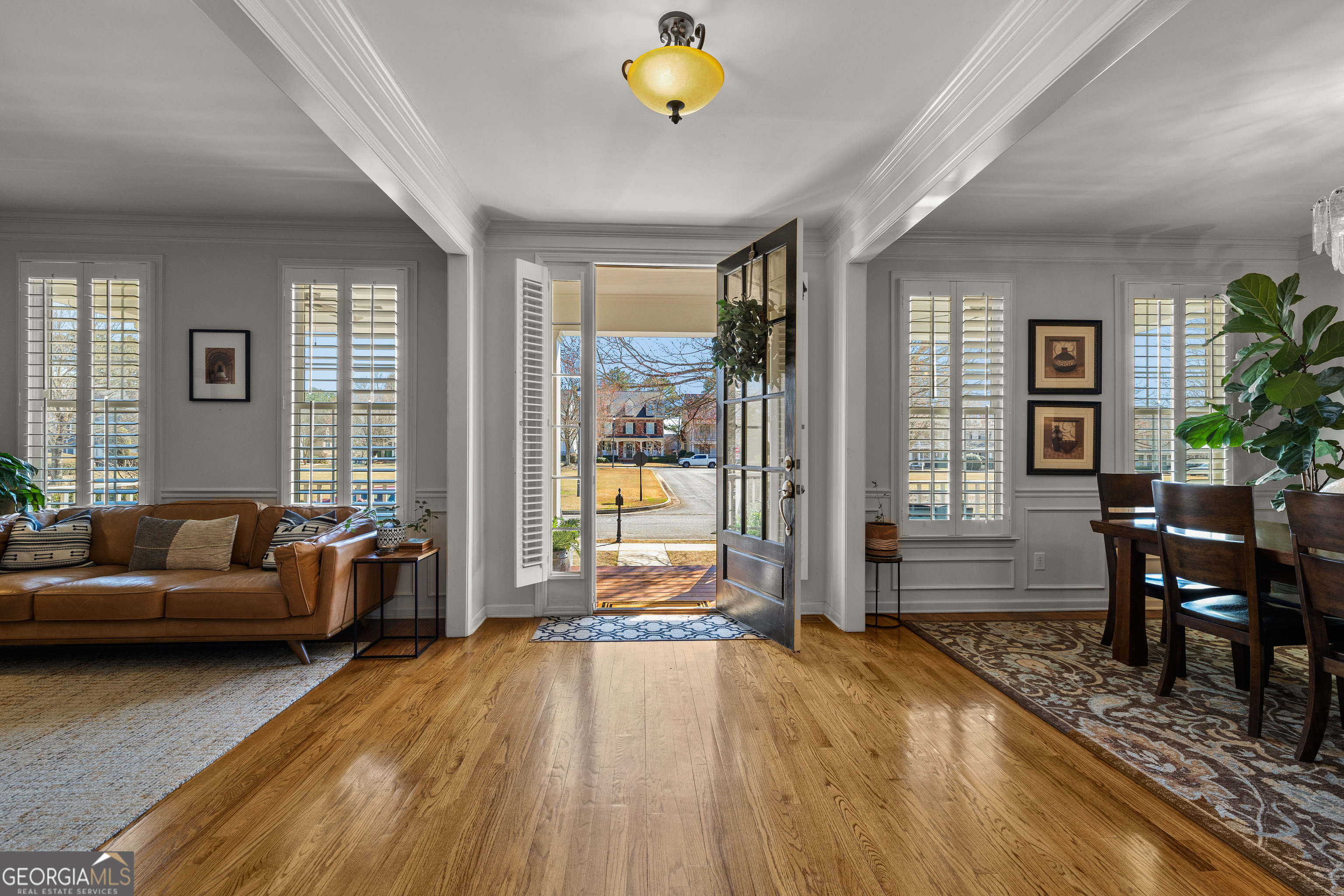 TIMELESS SOUTHERN CLASSIC WITH THE LATEST MODERN UPDATES in Peachtree City's desirable CENTENNIAL neighborhood! Two-story stacked porches welcome you into this breathtaking beauty overlooking the Village Green. Truly "move-in ready" you will enjoy over 4,600 square feet including a FULL FINISHED BASEMENT, OVERSIZED SEPARATE BONUS/OFFICE & GOLF CART GARAGE! The heart of this home is the remodeled "open concept social kitchen" with quartz island and new appliances. Bright, cozy and relaxing is the family room ambience with a stone fireplace and built-ins. Separate dining room with a butler's pantry and the inviting living room make for an entertainer's dream home. The upper level includes the spacious primary suite with a walkout directly onto the upper level porch. Additionally, the primary has two walk-in closets and a recently remodeled "spa-like" sanctuary en suite. Relax in the free standing soaking tub or huge glass enclosed shower. Guest bedroom has its own upgraded full bath while the other two bedrooms share an updated bathroom. Laundry room with additional cabinetry is conveniently located adjacent to the bedrooms. Terrace level is a fully finished basement with 10' ceilings including an entertainment area with built-in cabinetry, gym/office, additional finished room could be used as a bedroom/craft room, bar area/wine storage with built-in beverage cooler, finished storage space with built-in cabinetry as well as a separate golf cart garage. Relax away the hours and enjoy the sunshine on the newly-built back deck. Need a private space for work? Nothing compares to the separate finished bonus/office retreat with beamed ceiling and its own heat/air. Additional features to note are the custom plantation shutters throughout, NEW ROOF and custom closets. Two car garage with EV charger and additional storage space. Located in the top-rated MCINTOSH HIGH school district and "amenity rich" Centennial with its Olympic size waterslide pool, clubhouse, playground and tennis courts. Jump on your golf cart for a short ride to all the shopping and restaurants! Ideally located in North Peachtree City, this home allows for quick access to I-85, Atlanta and the International airport while maintaining its quiet community vibe! Don't miss this one!