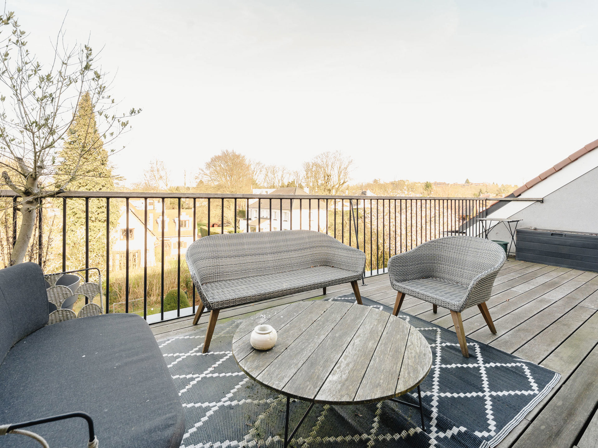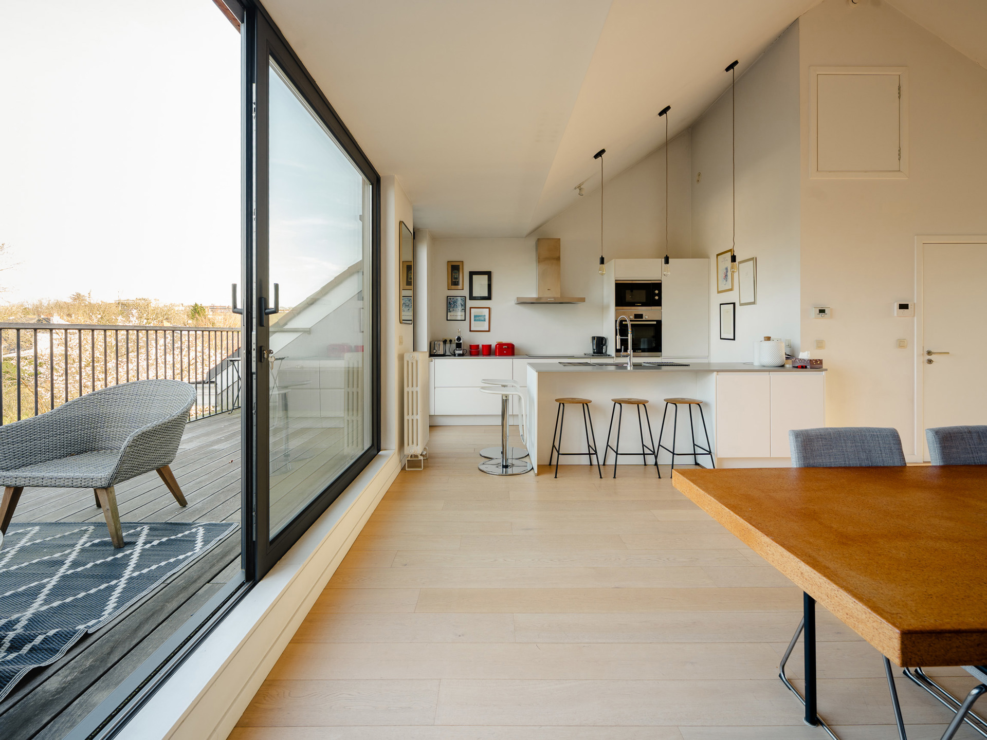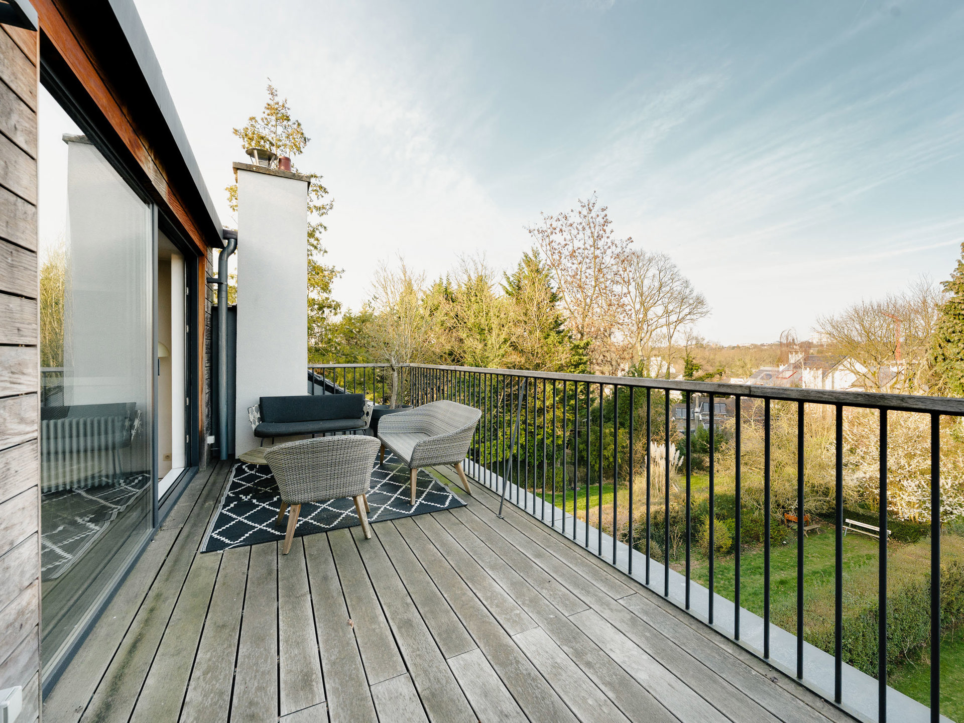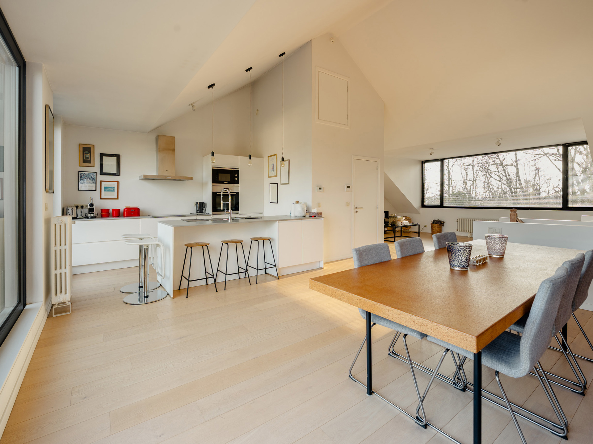 Ideally located between the Observatory and Wolvendael Park, in a quiet two-unit building, this fully renovated, dual-aspect duplex apartment offers approximately 115 m² of gross floor area (as per the Energy Performance Certificate - EPC). It comprises two bedrooms and a pleasant terrace. Bordering Wolvendael Park, the duplex features, on the upper floor, living areas including a living room with a Stuv fireplace, a dining room, and a fully equipped open-plan kitchen with a central island. Large windows flood the living spaces with natural light and open onto a lovely terrace with unobstructed views and greenery. On the lower floor, two bedrooms with built-in wardrobes share a shower room. Other: alarm system, blinds, individual boiler, garage and outdoor parking space, cellar, and no common charges. EPC: C L'Observatoire is a green and quiet neighborhood located close to local shops and public transportation, as well as several schools. It is a welcoming and family-friendly area. For further information, please contact Laurence Ballaux at +32 (0)2 640 08 01.