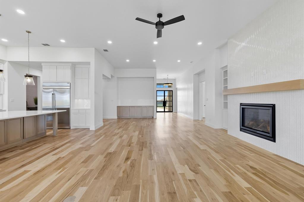 Thoughtfully designed transitional on acre lot in gated Harper Estates! 12 foot ceilings in main living areas, Andersen Series windows provide natural light throughout! Seamless indoor-outdoor flow with large Western sliders in both living areas open to outdoor living area with FP, full built in kitchen! Stunning White oak nail down hardwood floors in all living areas plus primary suite. Prewired for potential wine room in dining for climate control! Dream kitchen opens to main living with custom designed cabinets, abundant storage, equipped with GE Monogram series SS 6 burner gas cooktop, 48 in built in Fridge double ovens, custom vent hood. Fully equipped prep kitchen has second dishwasher, sink so main kitchen to stays polished ready for entertaining! Private beverage center with under counter fridge drawers just inside entry to Primary Suite. Spa inspired Ensuite bath has beautiful custom cabinets, dual separate vanities, large walk in shower with frameless glass, floor to seeing polished Venato Gold marble. Free standing solid surface tub, large walk in closet! 4 additional Ensuite BRs with large walk in closets offer flexibility for family needs and privacy! Second living area with attached media room has wet bar with another fridge, ice maker! Large laundry with sink, cabinets extra storage also has built in space for hampers or dog kennel! 4 car garage has full foam encapsulation, is fully conditioned with HVAC and heat, epoxy flooring, 2 exterior doors, Electric vehicle charger, Steel and glass doors, Jackshaft side openers allowing ceilings to remain free from opener equipment! Entire home is full foam encapsulated for energy efficiency. This true custom home has excellent craftsmanship, loaded with beautiful design upgrades throughout! Fully sodded lot has irrigation, aerobic systems staged for possible future pool build. Pool designs available if desired. Circular drive and additional driveway provide extra parking for guests!