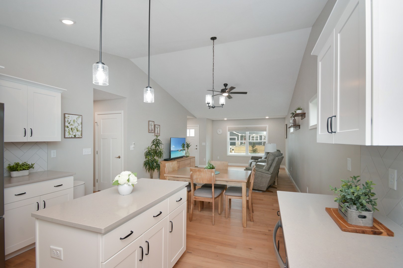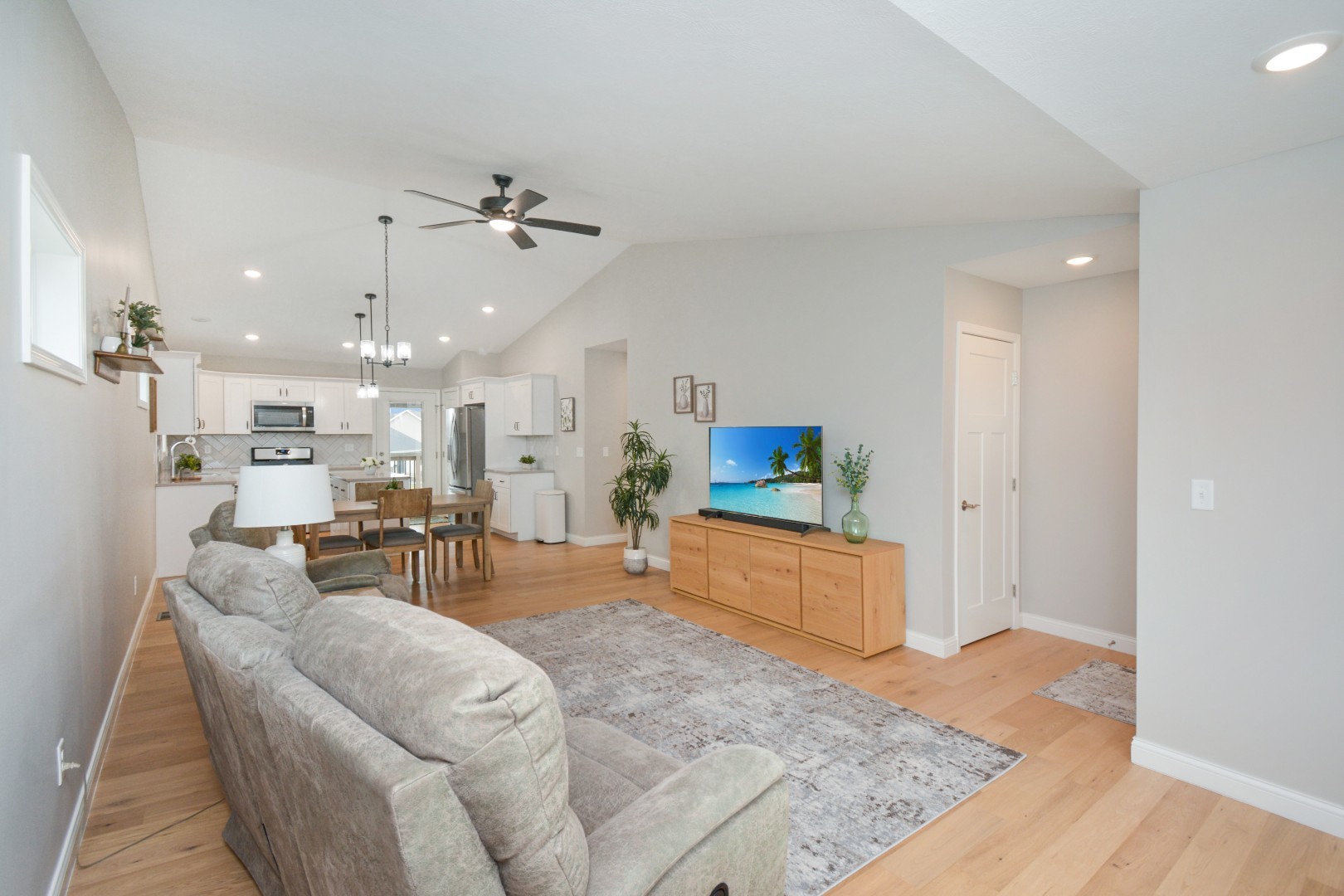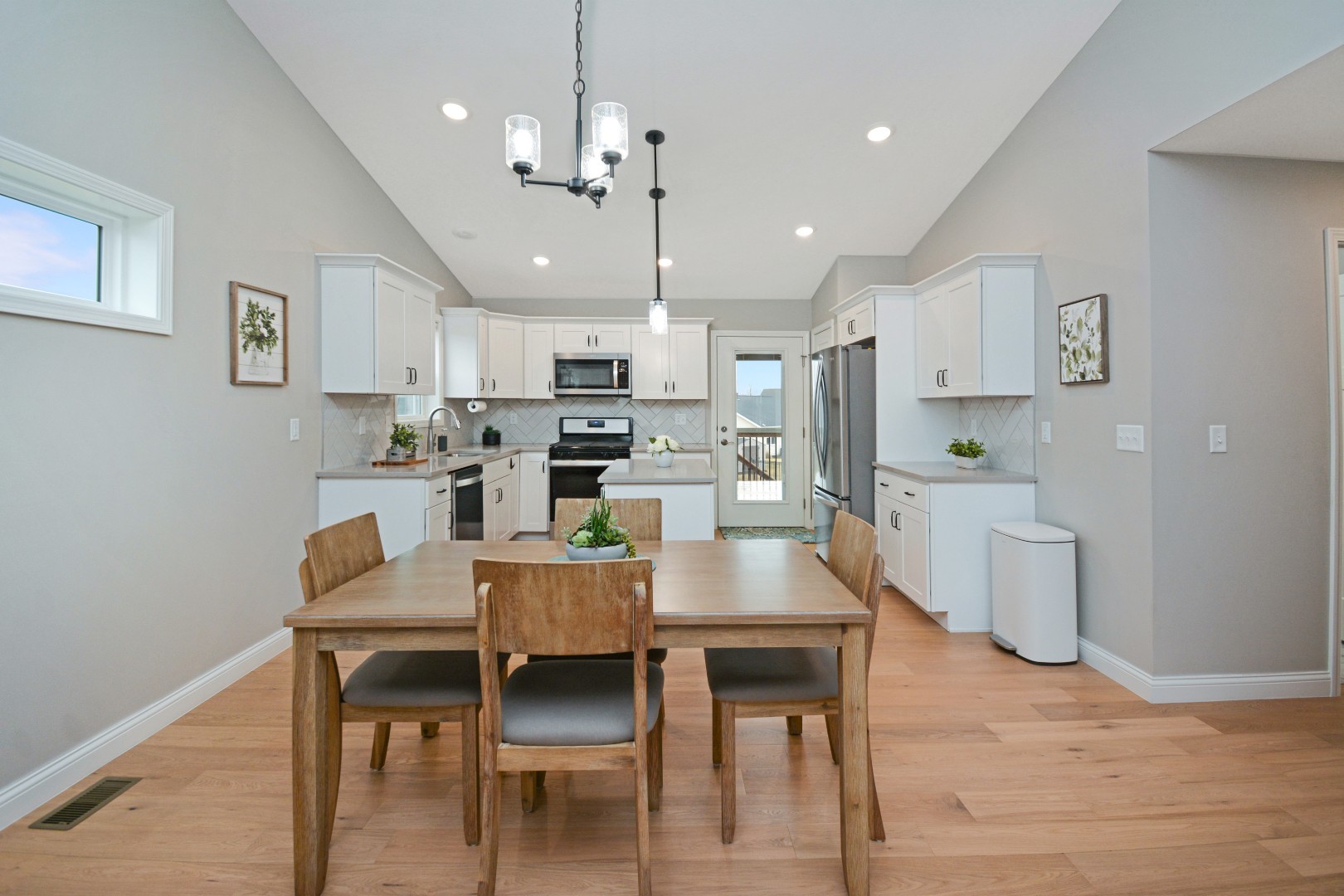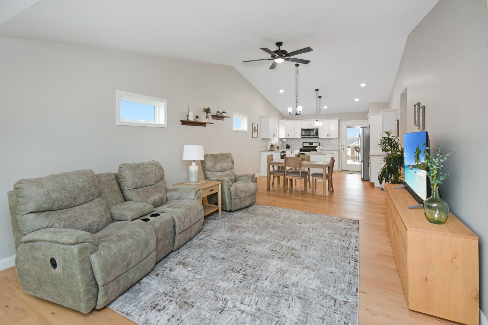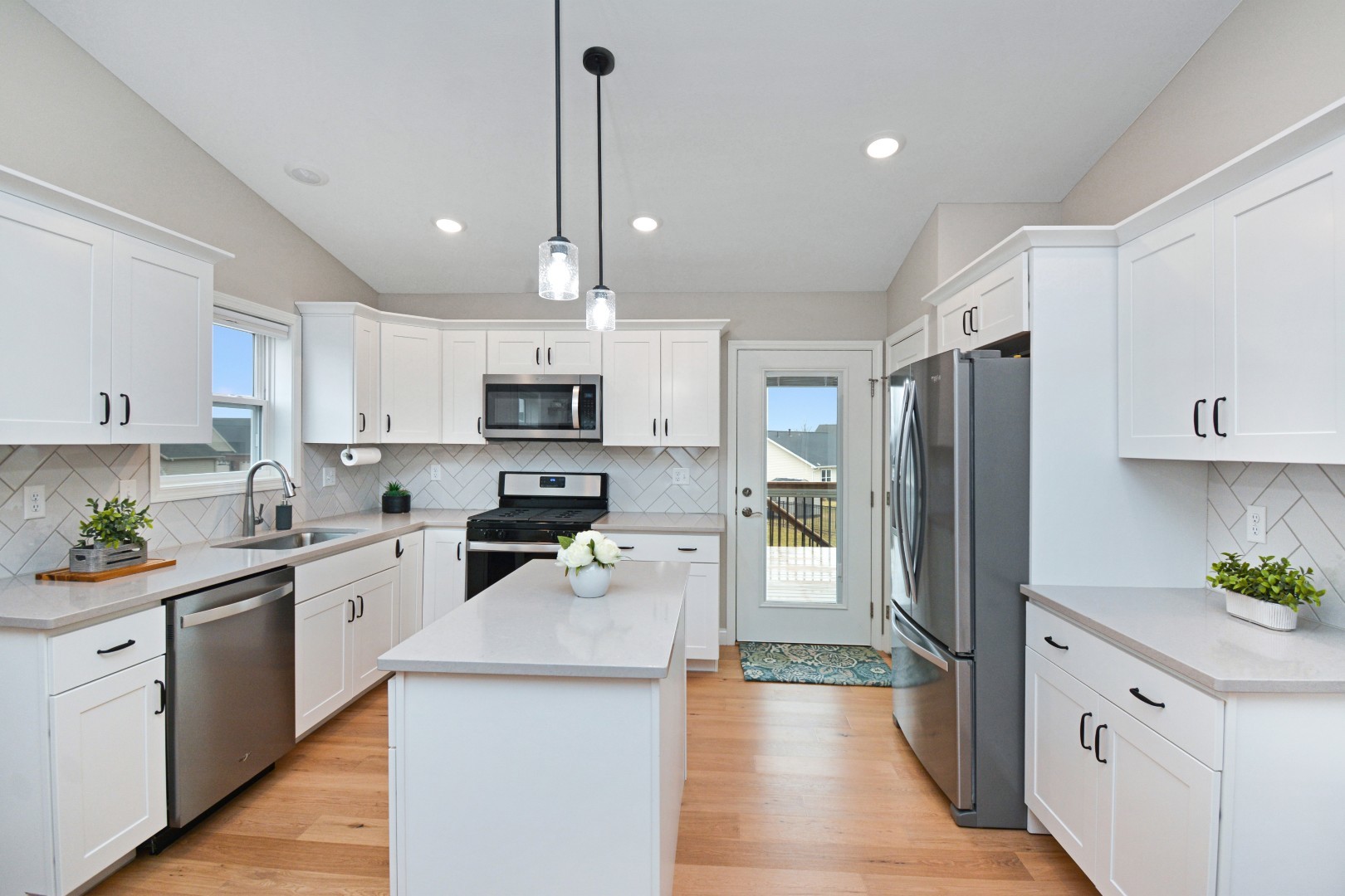 Located in Heartland Hills, one of Bloomington's newer neighborhoods, this home offers a setting that feels just far enough outside the city center that the stars seem to shine a little brighter-while still being conveniently close to everything. Built just four years ago, this BETTER THAN NEW ranch has been thoughtfully upgraded and meticulously maintained. Since construction, the owners have added a fully finished basement, updated paint and lighting, and installed new carpet in the bedrooms, creating a home that shows beautifully and feels truly move-in ready. The main level features an inviting open-concept layout with a vaulted great room and a stunning kitchen designed for both everyday living and entertaining. The kitchen includes quartz countertops, soft-close cabinetry, stainless steel appliances, a tiled backsplash, large island, and a customized walk-in pantry that provides exceptional storage. Just off the kitchen, a spacious deck offers the perfect place to enjoy outdoor dining or take in the evening sunsets. The primary suite features a walk-in closet and a beautifully tiled shower, while the main floor laundry and drop zone includes a convenient custom built-in bench. With 4 bedrooms and 3 full baths, this home offers plenty of space and flexibility. The finished basement is a standout with daylight windows that bring in natural light-something not found in every home in the neighborhood. Additional highlights include a rare 3-car attached garage, 2x6 exterior construction, energy-efficient LED puck lighting, high-efficiency HVAC, a WiFi programmable thermostat, and MyQ garage door access from your smartphone. The current owners have also invested in extensive landscaping, creating a yard that is both beautiful and welcoming. Lightly lived in, exceptionally cared for, and located in Unit 5 schools, this home truly checks all the boxes. A move-in ready opportunity in Heartland Hills that buyers will not want to miss.