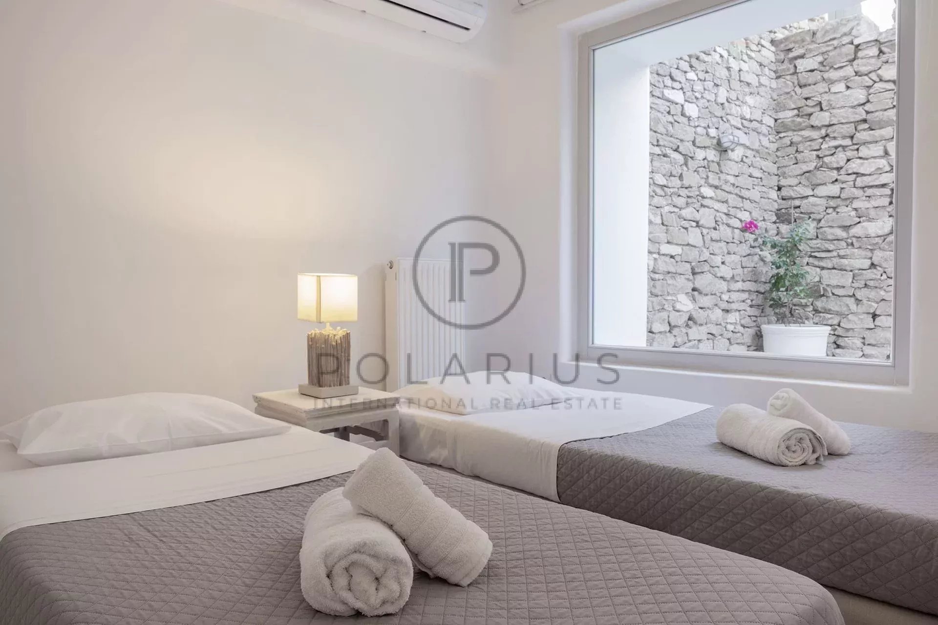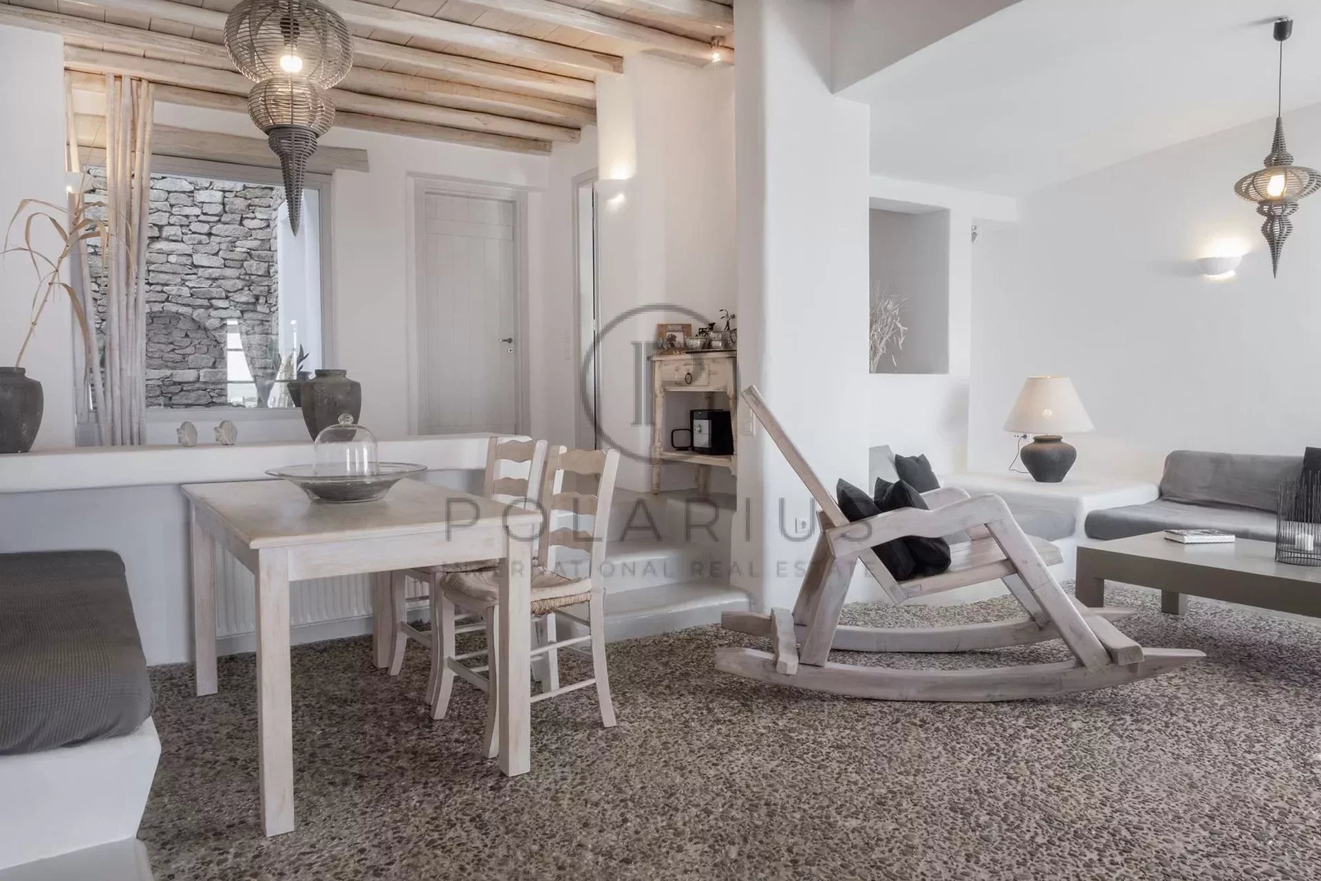 这座别墅坐落在爱琴海畔宁静的山坡上,为米克诺斯岛的生活提供了一个精致的视角。别墅拥有开阔的海景、典雅的基克拉迪建筑风格以及一个仿佛与地平线融为一体的私人无边际泳池,专为注重美景、隐私和海岛生活宁静节奏的宾客而设计。从您抵达的那一刻起,这里就洋溢着平静和开放的气氛。粉刷过的墙壁、天然石材和柔和的纹理营造出轻松精致的室内氛围,同时又让人倍感舒适。整栋别墅开阔的视野将无敌海景尽收眼底,爱琴海变幻的色彩每天都在影响着您的心情。别墅内有三间设计精美的卧室,最多可容纳六位客人。主套房设有独立浴室和更衣区,是一处宁静的休憩之地,另外两间卧室则为家人或朋友提供了时尚、温馨的空间。每间客房的设计都以简约舒适为宗旨,采用天然材料、柔和色调和优质床单,提升了别墅的轻松优雅氛围。别墅的中心是宽阔的室外露台,在这里可以尽情享受米克诺斯岛的生活。无边泳池向大海延伸,成为夏日午后游泳、阅读或欣赏美景的绝佳场所。遮阳休闲区和宽敞的用餐露台为夕阳下的开胃酒、悠闲的午餐和星空下的夜晚提供了完美的环境。虽然别墅环境宁静幽雅,但米克诺斯岛的活力却从未远离。岛上著名的海滩、知名的海滩俱乐部以及米克诺斯镇的餐厅和精品店都近在咫尺,让宾客可以在宁静的私密空间和岛上热闹的社交场所之间无缝切换。为了进一步提升您的住宿体验,酒店还可安排一系列量身定制的服务。私人厨师、别墅内的健康护理、游艇包租、豪华交通以及岛上一些最受欢迎场所的优先预订等服务均可安排,确保您的每次造访都完美无缺,令人难忘。别墅将设计、舒适度和地理位置独特地结合在一起,为宾客打造了一个温馨的度假胜地,让宾客充分体验米克诺斯岛的美景和氛围。价格淡季每天 1,020 欧元(至少入住 3 晚):5 月 1 日至 6 月 30 日和 9 月 1 日至 10 月 15 日旺季每天 1,470 欧元(至少住宿 3 晚):7 月 1 日至 8 月 31 日