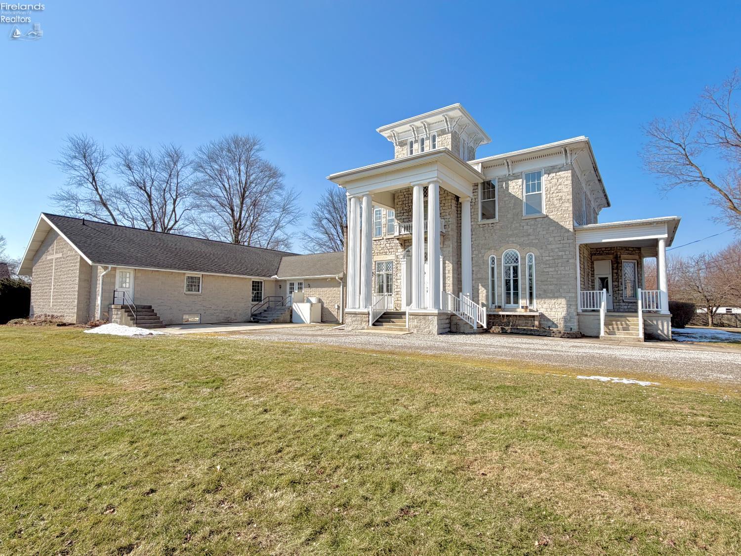 Step into history with this one-of-a-kind property situated on over 2 acres that began its life as a grand mansion built in 1855 by J.B. Highbee, turned investment property, then the Charter House Restaurant in 1956, to most recently being transformed into Faith Bible Church in 1968. The newer 3,200 sqft. sanctuary accommodating 241 guests, was added on in 1980(fully remodeled in 2003), equipped with a fellowship hall and kitchen in basement, two multi-stall restroom facilities & two certified chair lifts.From the moment you step into the original house, you'll notice the stately presence, classic detailing, & old-world charm that simply can't be replicated. Inside, souring ceilings, expansive gatherings spaces, original woodwork, oversized windows & intricate elements tell the story of a bygone era. The rich architectural character & timeless craftmanship of this remarkable property offers a rare opportunity for creative visionaries. The spacious main floor provides flexible space, most recently used as offices, Sunday school classes, children's nursery(recently remodeled) & meeting areas. Walk up the impressive staircase to the parsonage for the pastor-a 3 Bed, 1 Bath living quarters with sizeable eat-in kitchen & living room. A guest room w/attached half bath, three more potential bedrooms, add'l half bath & wrapped staircase to cupola, complete the 2nd floor. Convenient 1st floor laundry and large attached shed off back(new in 2022) features an overhead door with storage space galore. Ample parking for approx 70+ vehicles. This property offers an ideal layout for an event center, banquet hall/venue, community organization or unique residential/multi-family conversion. Whatever your vision-the rich history combined with unparalleled adaptability provides a rare opportunity to create something extraordinary! This well-loved landmark property is ready for its next chapter. Currently zoned R-1. Other uses would require rezoning approval through the City of Bellevue