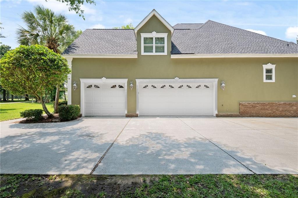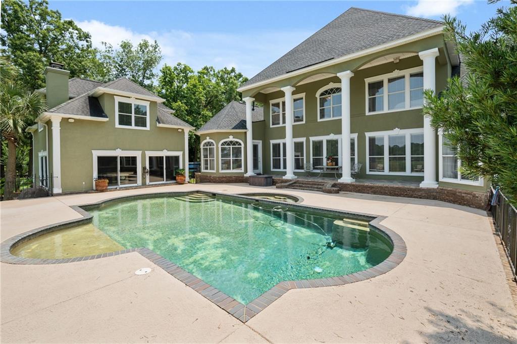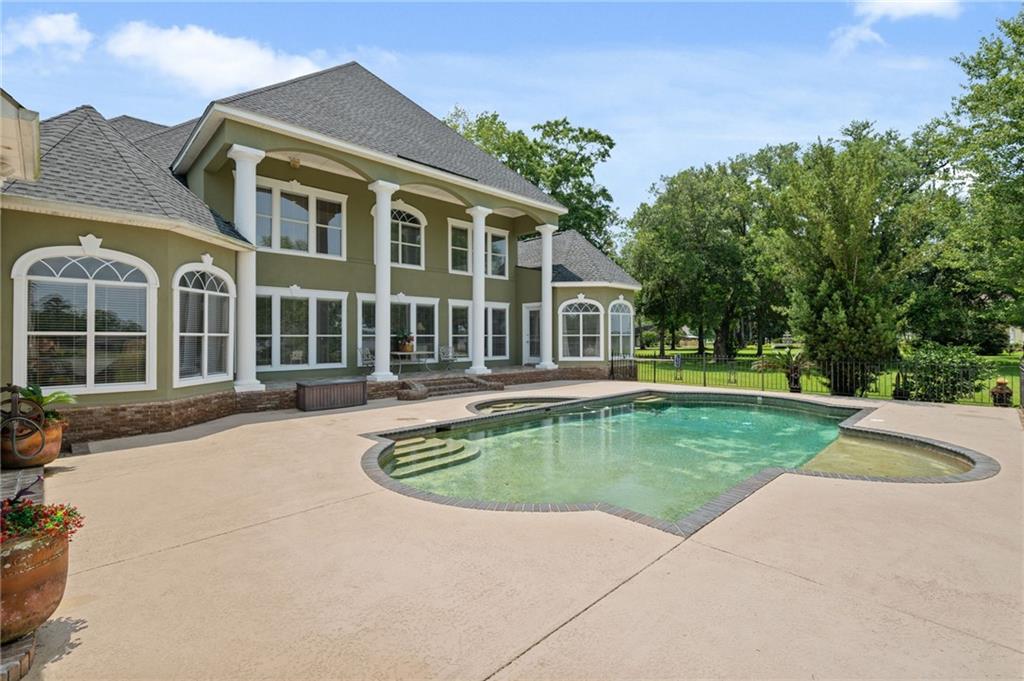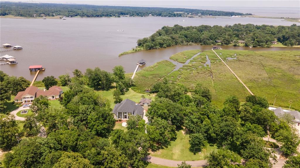 Stunning Waterfront Estate with exceptional amenities on approximately 2 acres located on a quiet cul-de-sac with approximately 150 feet of serene waterfront, with the option to purchase an additional 2 acre waterfront (150ft of waterfront) adjoining lot (MLS#7729243 ) This beautifully maintained, estate offers an unmatched blend of luxury, comfort, and functionality. The main house boasts over 7300 square feet under roof and over 5800 square feet of heated and cooled space. This 5-bedroom, 3 full bath, 1 half bath custom-built, builders personal home, features a new fortified roof installed in August 2022 on both the house and boathouse. Step into a thoughtfully designed open floor plan with 10-foot ceilings downstairs and 9-foot ceilings upstairs, complemented by tile floors on the main level and carpeting upstairs with the exception of one room that could be craft room, hobby room, or playroom. Architectural details include hand designed leaded glass front doors, crown moulding throughout, hand-carved marble fireplace mantle, iron handrails, and a beautiful barrel ceiling from the foyer to the living room.The primary suite is located on the main floor, offering a private sitting area and a spacious ensuite with very large custom closets. The four additional bedrooms upstairs all feature huge walk-in closets and access to three walk-in attics for ample storage. The home also includes an oversized formal dining room and private office just off the foyer. This is a builders personal home and it was designed for both everyday living and entertaining, the chef's kitchen boasts custom cabinets, massive countertops, and natural light that fills the space. A theater room features Gladiator seating chairs with shakers, surround sound, and specialty lighting. Just off the theater room is a huge playroom with pool table that offers more fun for all ages. Step outside to a true oasis: the saltwater gunite pool is fully fenced and accompanied by a tiled outdoor kitchen (additional 575 square feet) that is complete with wood-burning fireplace, additional half bath, Primo grill, and access to the gym that is heated and cooled and will remain furnished (610 square feet) plus has an incredible view of the river. This set up allows for unmatched indoor/outdoor living space that will be the place of TONS of great family memories. This space also lends itself to the possibility to be converted to an additional dwelling unit/Air B&B with some minor renovations. The custom pier and boathouse with lift provides direct access to Mobile Bay and the Gulf of America for boating, world class fishing or just simply enjoying the peaceful surroundings. Whether you take the boat for a sunset cruise or sipping your coffee on the pier this exclusive setting defines serene, waterfront living at its FINEST. Set on approximately 2l ush acres, this property offers beautifully maintained landscaping with irrigation system throughout the entire property, mature shrubs, and greenery that create a peaceful, private retreat. There's ample room to park a boat, boat trailer, or RV, making this estate as functional as it is scenic.
