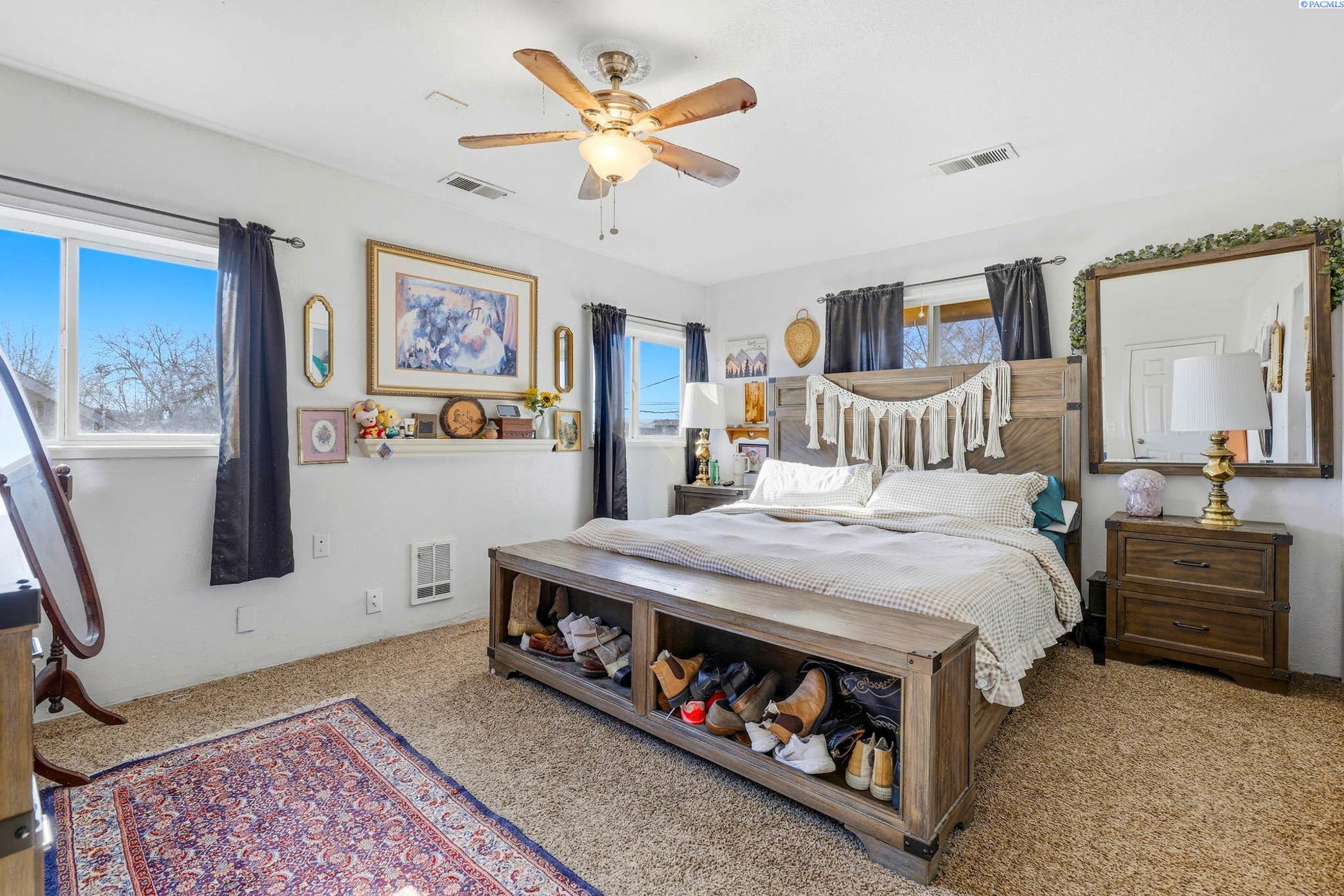 MLS 290397 Tucked into a quiet cul-de-sac in Central Kennewick, this home delivers space, upgrades and flexibility - priced to reflect the remaining cosmetic work still to be done. Set on septic with city water, the property shines for buyers who want value and function, featuring underground sprinklers with smart technology, a fully fenced backyard and a wide side gate ideal for pulling vehicles, trailers or toys into the yard. A major highlight is the insulated 24x26 detached two-car shop with power and attic storage - perfect for hobbies, projects or serious storage needs. Big-ticket improvements are already complete, including a new roof and Trane HVAC compressor in 2021, plus a new LED lighting, electrical panel and downstairs mini-split system added in 2024 (all work done by licensed professional companies, invoices available). Inside, original hardwood floors anchor the living/dining area, complemented by new recessed lighting installed in 2025. The kitchen is full of charm, with a corner window overlooking the backyard and newer appliances - washer and dryer stay, with the refrigerator negotiable. The main level includes a bedroom, full bath and laundry room, while upstairs offers two spacious bedrooms with walk-in closets and a bathroom. One bedroom also connects to a bonus room that easily flexes as a nursery, playroom, home office, gym, reading retreat or oversized walk-in closet. Entire home has many vinyl windows allowing lots of wonderful natural lighting. With NO HOA, thoughtful upgrades already completed and room to add your own finishing touches, this is a rare opportunity to secure a versatile property with shop space and yard access at an approachable price point.