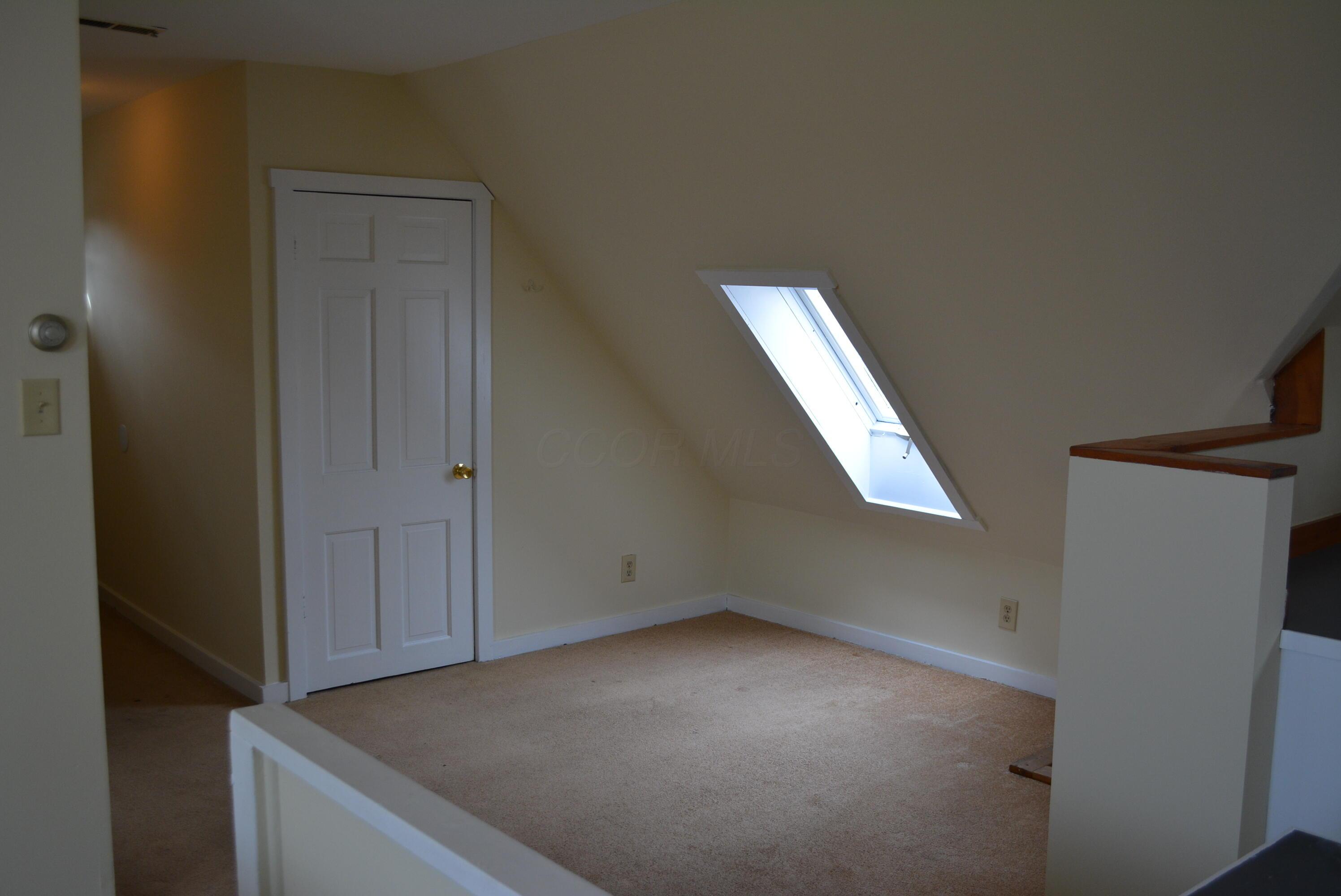Large Third Floor/Top Floor Two Bedroom. Open floor plan. Natural light throughout. Skylights in living room, dining room and bathroom. Open kitchen with refrigerator and range. Bedroom #1 ... large with walk-in closet and natural light. Bedroom #2 ... two closets and a sliding door to a balcony. Large bath with shower/tub combination. Walk-in storage closet off of dining area. Large basement with coin operation laundry. Parking on street with permit ($25 year).