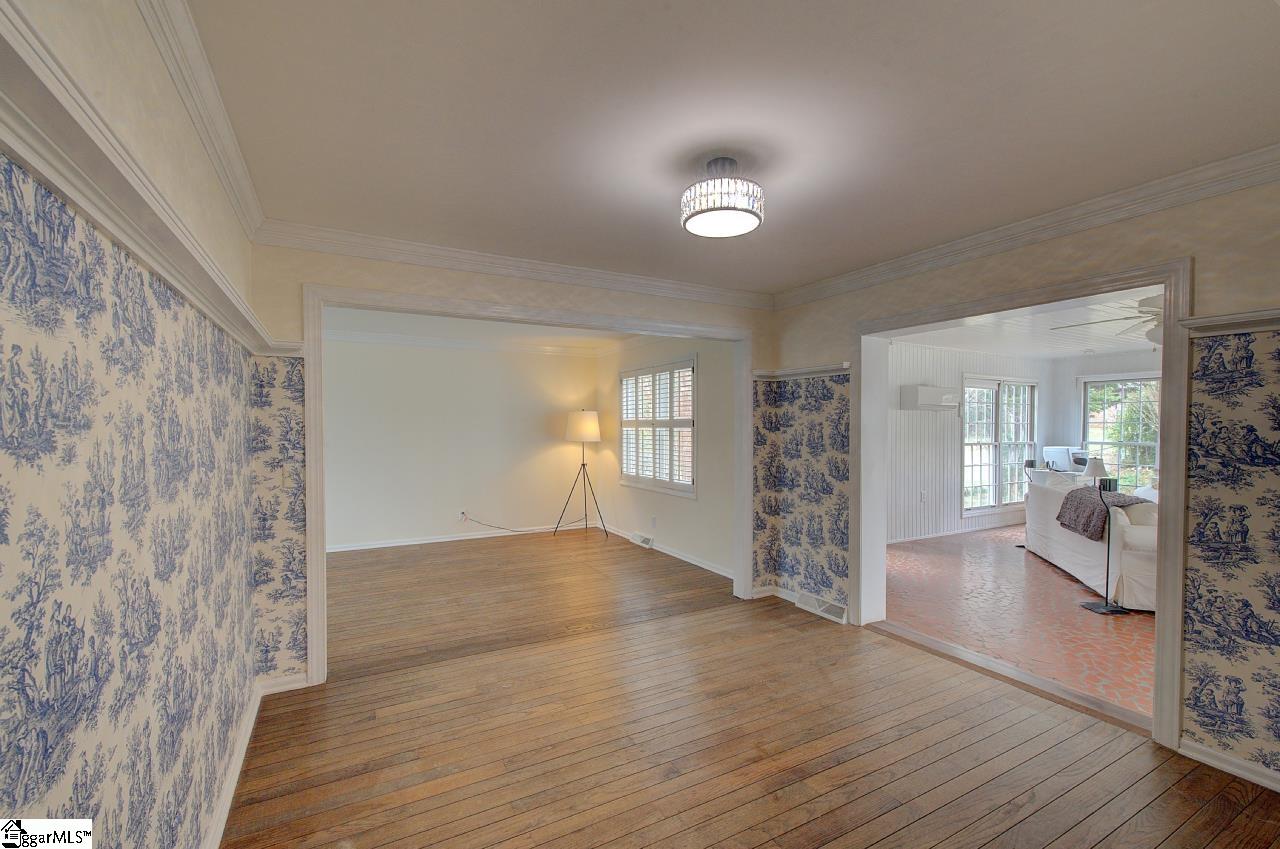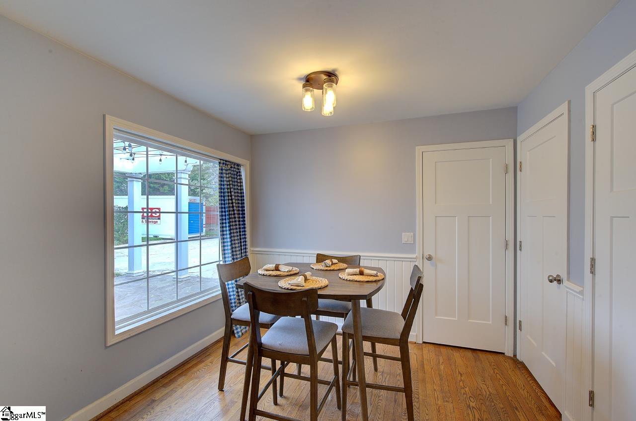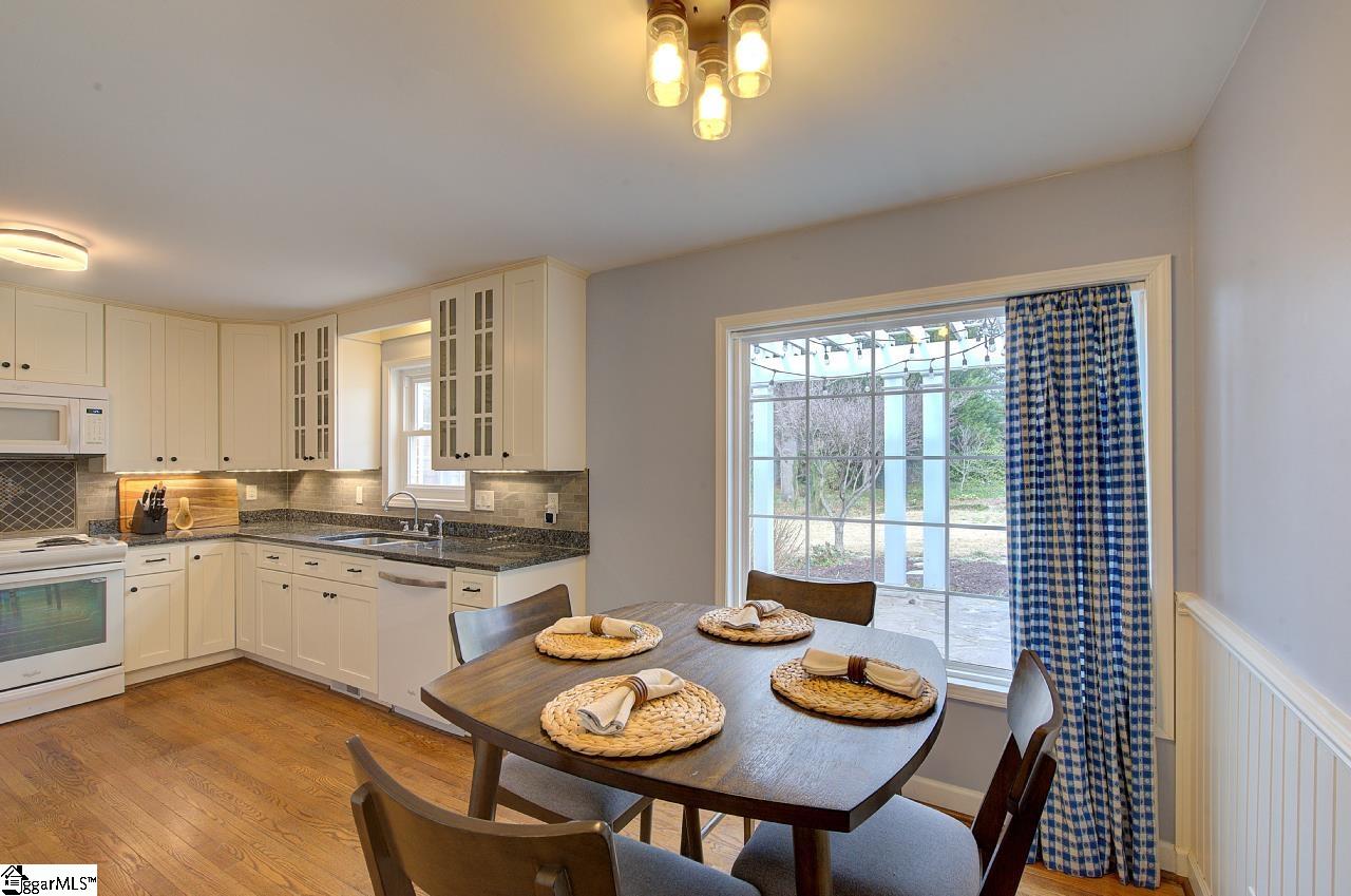 Beautiful traditional two-story home on Greenville's Eastside and only steps away from Eastside High School. Offers approximately 2,600 square feet with 4 bedrooms and 2.5 baths. Fresh new paint throughout and hardwood floors through most of the home create a warm and inviting feel. There is an attic fan but not warranted. Whole-house generator conveys with the sale of the home. The kitchen and bathrooms were updated approximately 8 years ago and feature granite countertops. A large, bright sunroom with a mini-split heating and cooling system provides wonderful additional living space year-round. The family room features a fireplace with gas logs, perfect for cozy evenings. The architectural roof was installed in 2017. The home also features gas heat and a tankless hot water heater The fenced backyard offers great outdoor space and includes a charming she shed ideal for hobbies, gardening and storage. Part of the garage has been converted into a large laundry room with a walk-in shower, offering additional functionality and flexible space. Conveniently located close to shopping, schools, churches, and the YMCA, and just 10-15 minutes to Downtown Greenville.