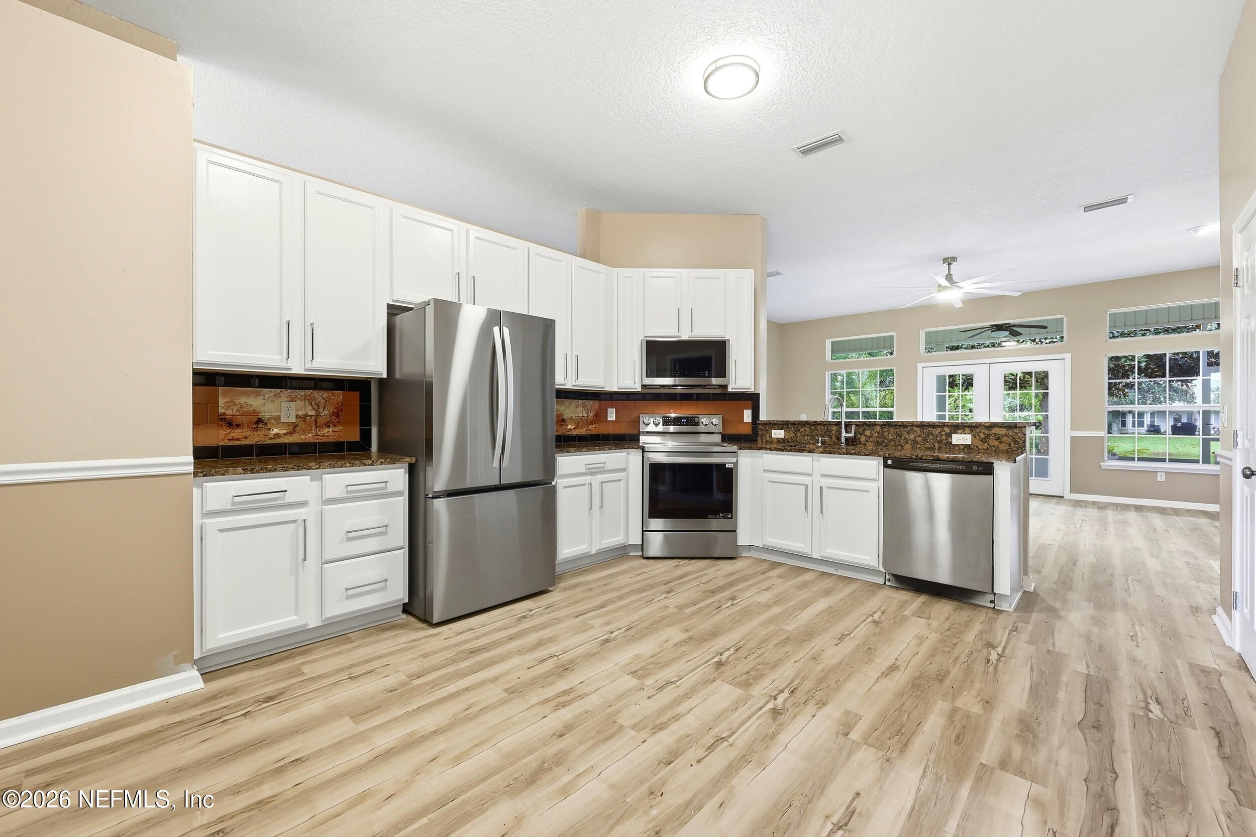 Beautiful Updated lakefront home in the Parkes neighborhood of Julington Creek Plantation! Home features peaceful lakefront living. Upgrades include newer roof (2019), brand-new luxury vinyl plank flooring, spacious kitchen with new SS appliances, and primary suite with freshly updated bathroom and walk-in closet. Home includes a formal dining room, office/den, and a large family room anchored by a cozy wood-burning fireplace perfect for those chilly Winter nights. Split-bedroom floor plan offers privacy for everyone. Upstairs, the 4th bedroom has its own private bath and walk-in closet, perfect for guests or a private retreat. Step outside to enjoy the serene backyard from the screened-in lanai, overlooking the tranquility of the pond. Home is on highest elevation of the entire neighborhood - high and dry. As part of Julington Creek Plantation, you'll have access to outstanding amenities, close to shopping and A+ Rated St Johns County schools.