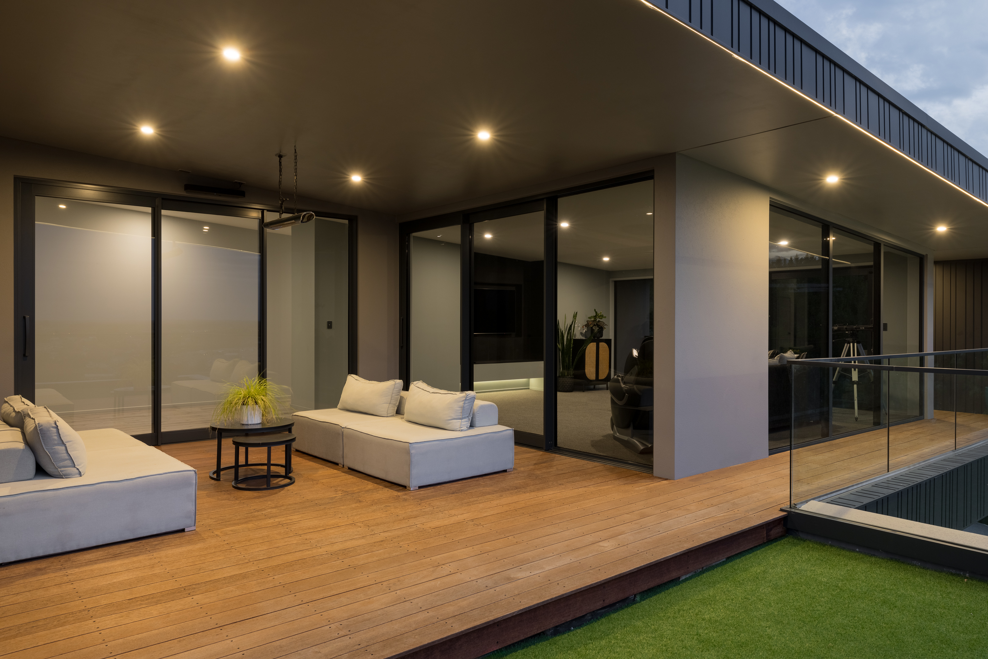 Extensive glazing and a largely open-plan configuration introduce natural light throughout the home while maintaining clear sightlines across the surrounding environment. The architecture is intentionally restrained, allowing the outlook and sense of space to take precedence, with interior volumes shaped to respond to both aspect and privacy.