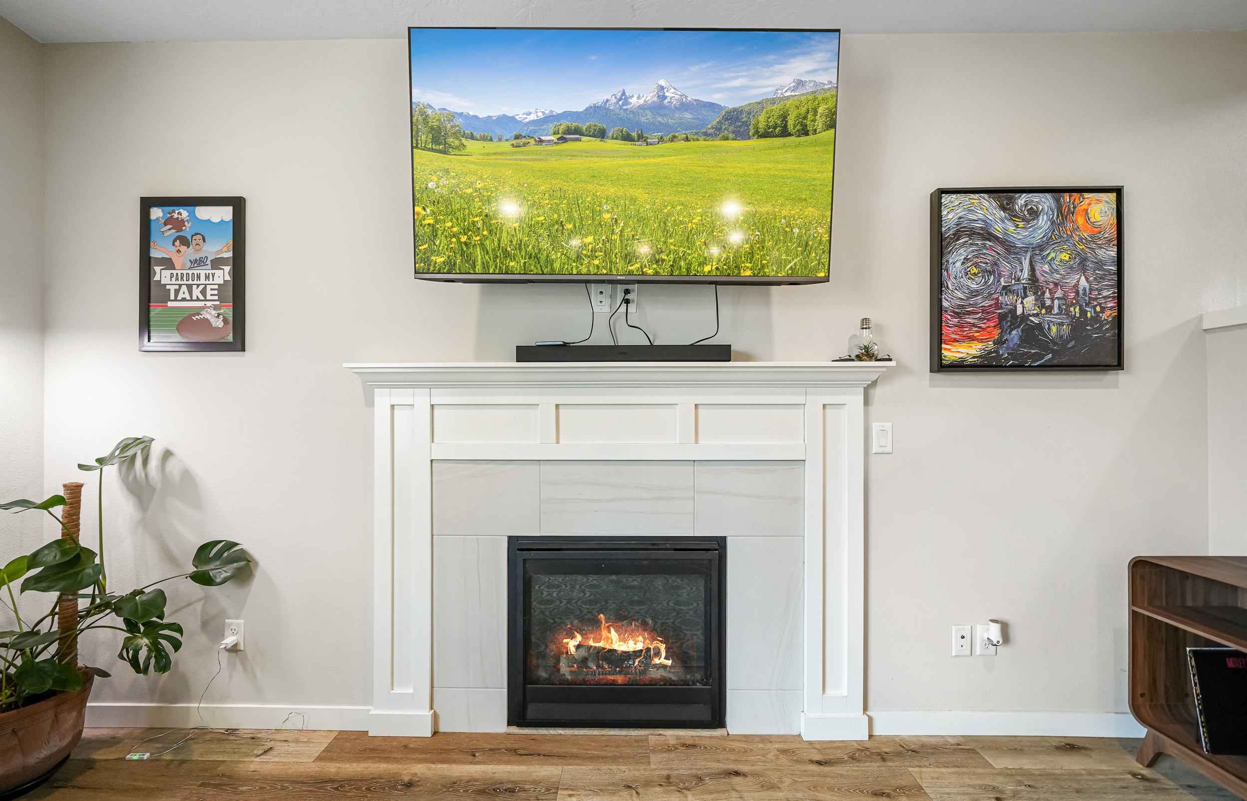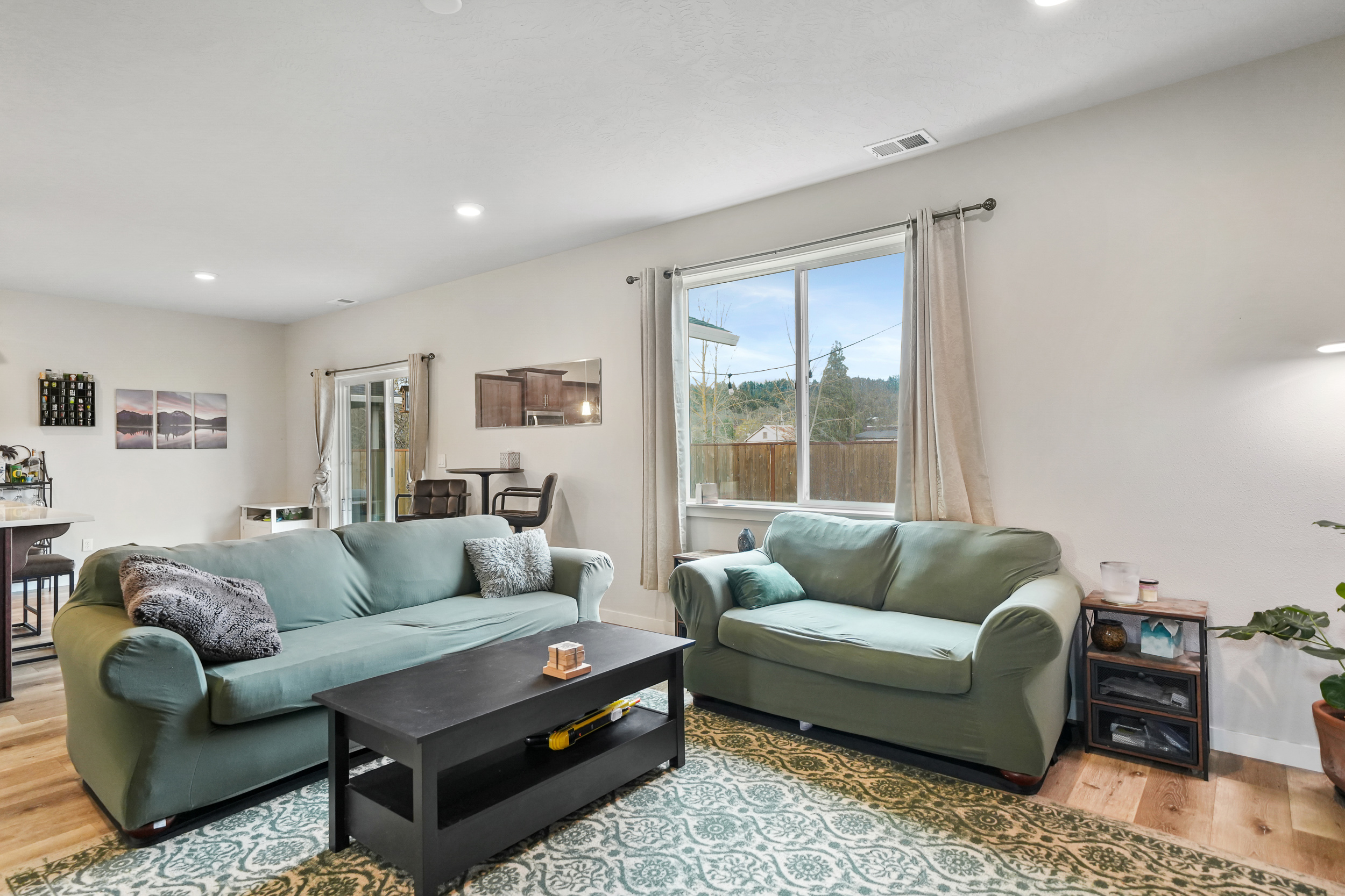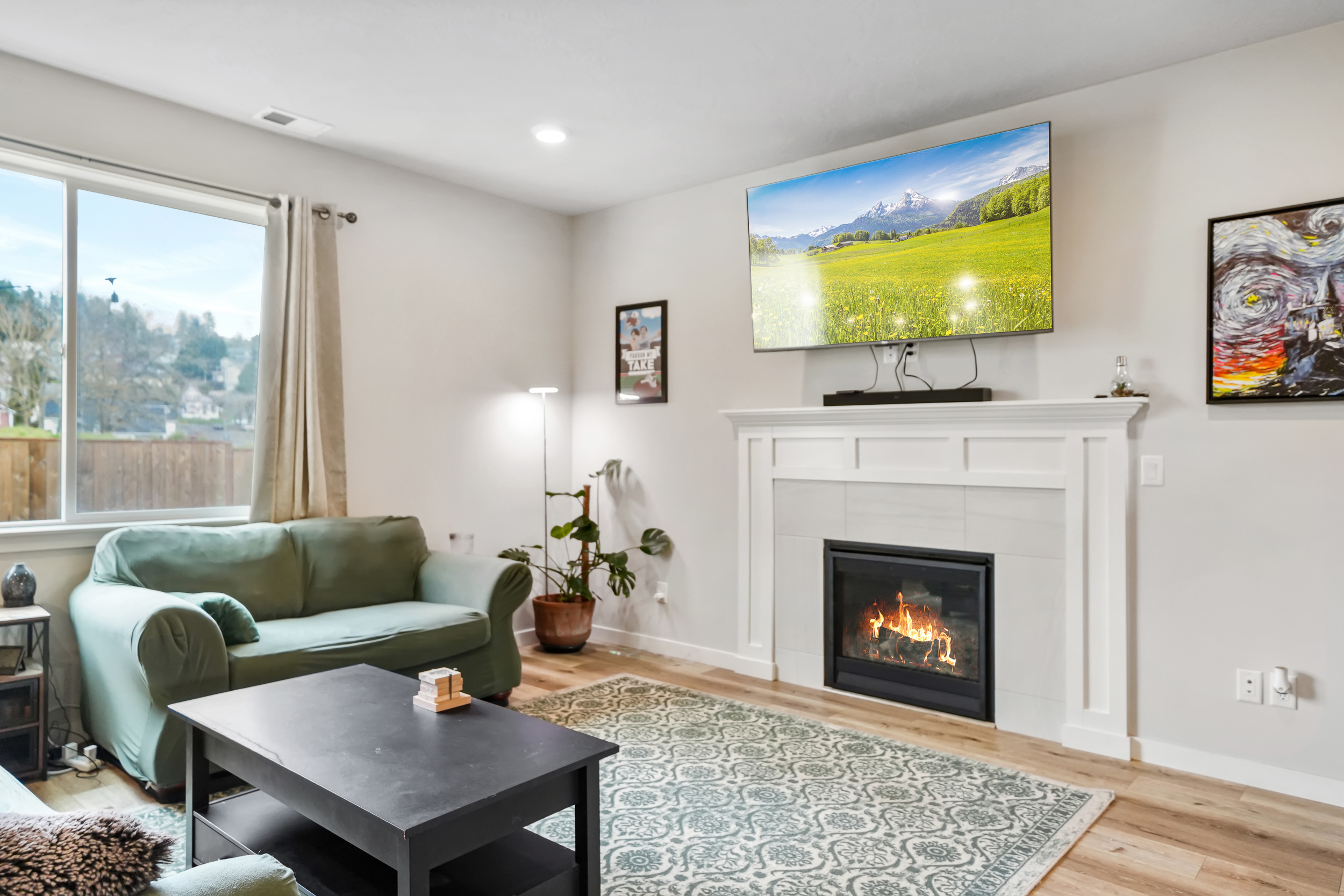Well-maintained home on a corner lot with a fully fenced backyard. Features an open floor plan, laminate flooring, wood-wrapped windows, and a living room with a gas fireplace. Kitchen offers quartz counters, stainless steel appliances, gas range, and craftsman-style cabinets. Includes a 95%-efficient gas furnace, A/C-ready setup, HardiePlank siding, and front yard landscaping with underground sprinklers. Seller related to listing agent.