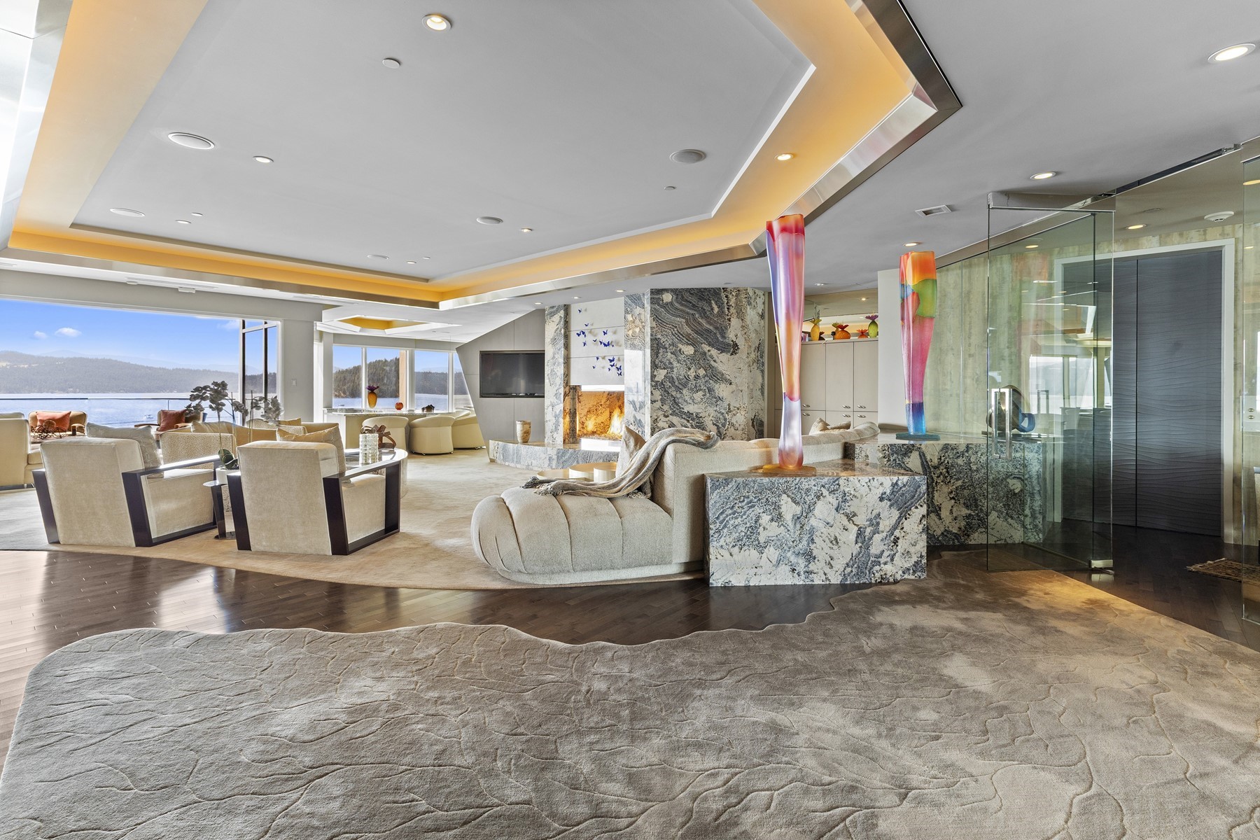 Experience the pinnacle of luxury lakefront living at The Terraces on Lake Coeur d'Alene. Offered fully furnished and on the market by the original owner, this extraordinary Guy Dreier-designed contemporary residence showcases iconic modern architecture and panoramic lake views from every room. Spanning 5,144 sq ft, this stunning home features 3 private bedroom suites, a dedicated media room, Chef-designed kitchen and sunken bar, and over 1,000 sq ft of expansive decking for seamless indoor-outdoor entertaining. Enjoy exclusive amenities including a 30' private boat slip and extraordinary concierge services that make daily life feel like a 5-star resort. Golf enthusiasts will appreciate the two lifetime golf memberships to the world-famous Coeur d'Alene Resort Golf Course -- home to the legendary Floating Green. This is a rare opportunity to own an incomparable waterfront and golf lifestyle property in one of Lake Coeur d'Alene's most coveted communities -- The Terraces.