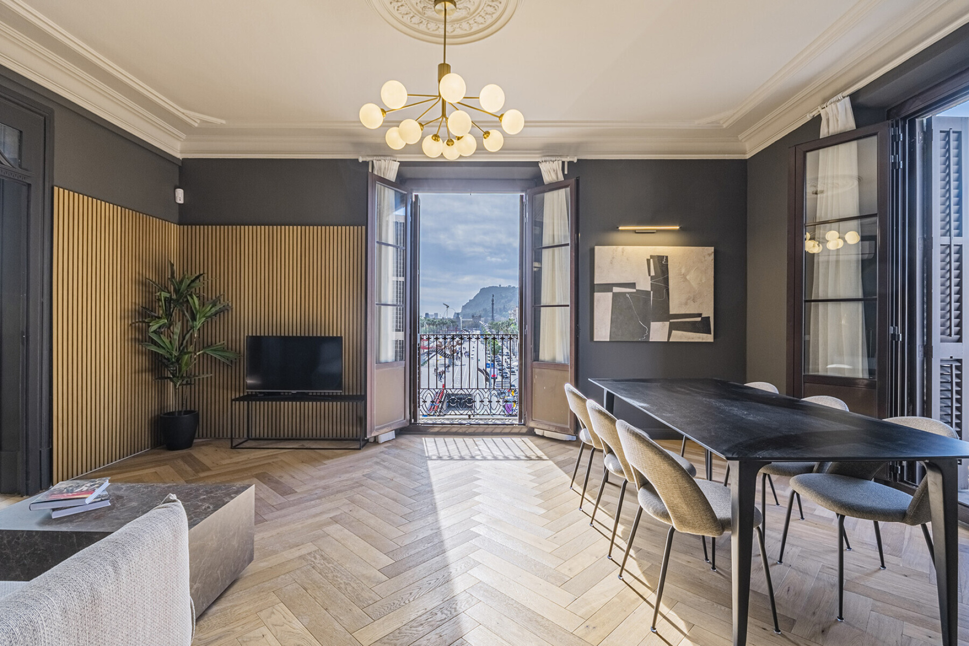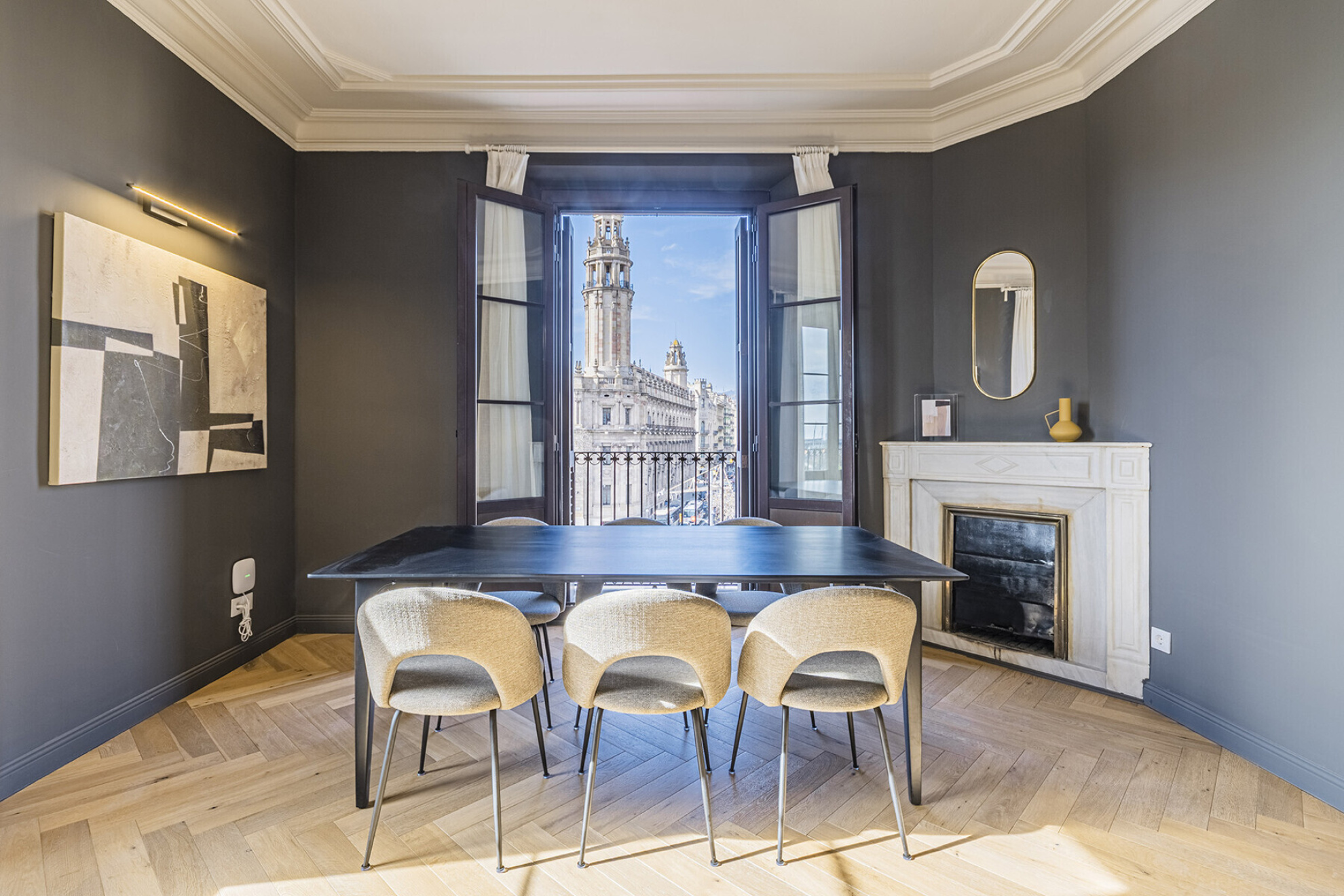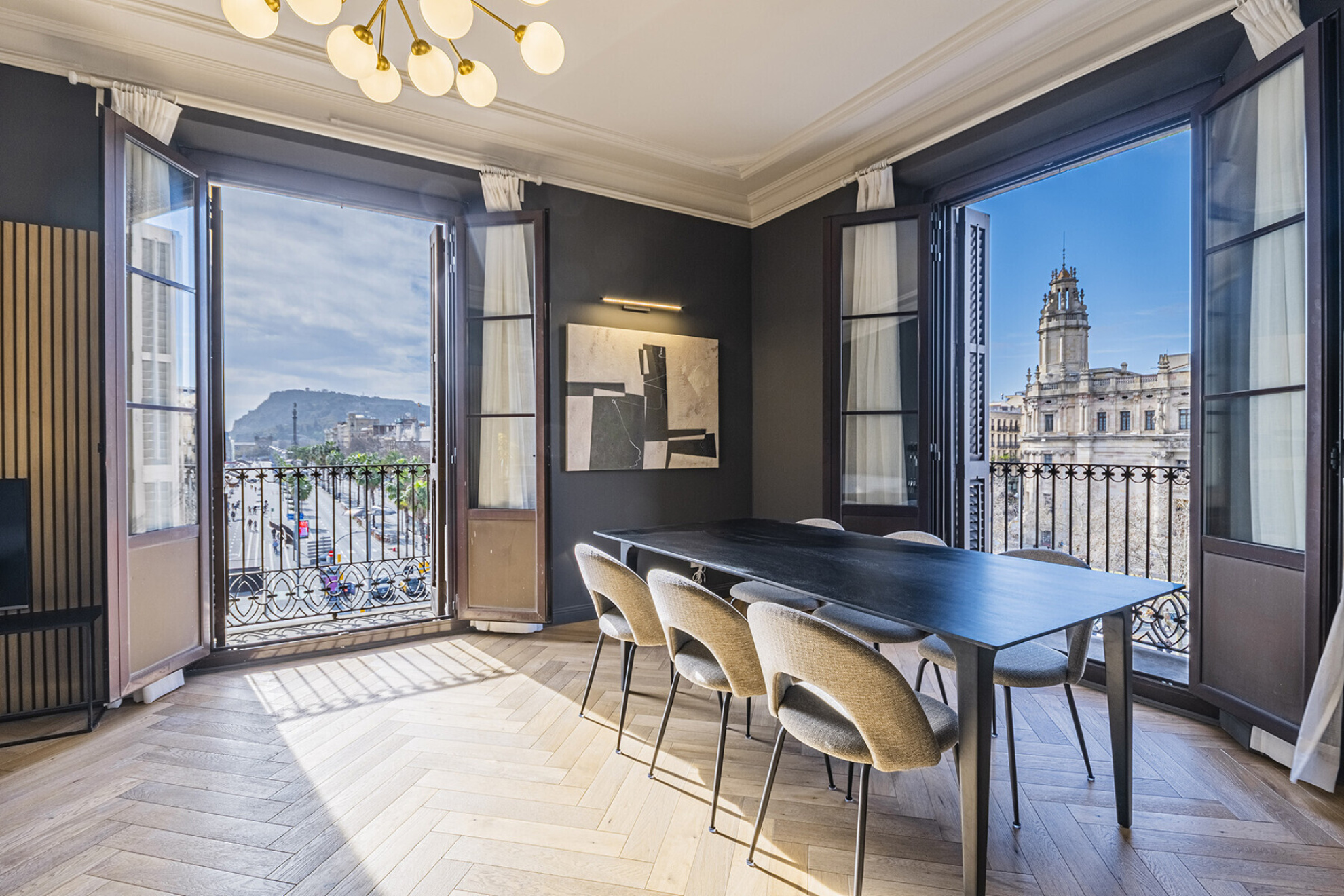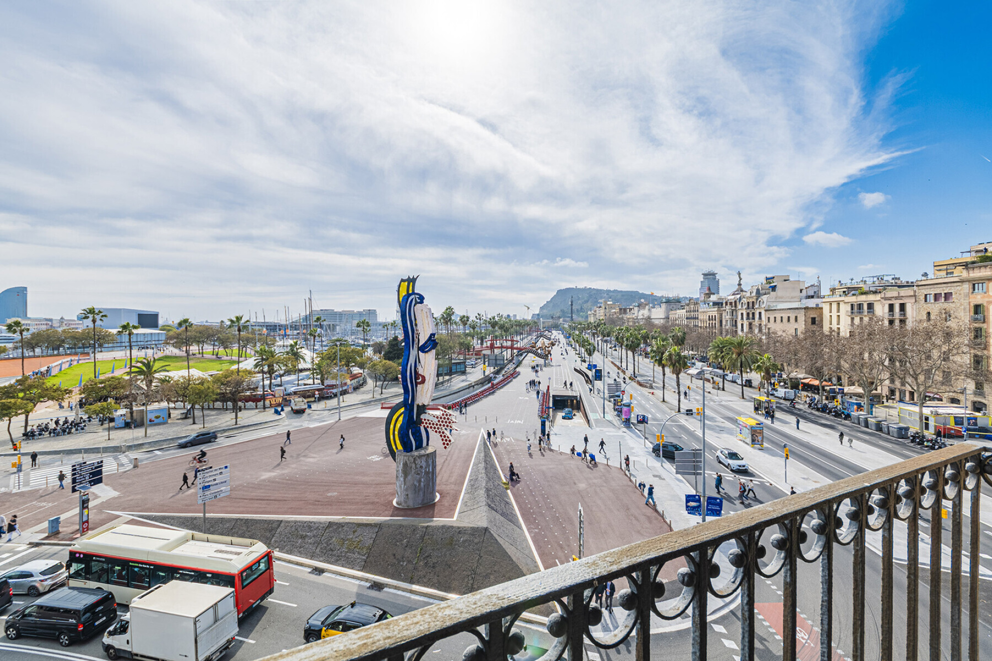 Beautiful corner apartment completely renovated of 92 m2 overlooking the Port Vell in the Born neighborhood. It has a sophisticated and bright living room with high ceilings with a window overlooking the Port Vell and another one overlooking Via Laietana. The kitchen is semi-open to a nice dining room with views of the port. It also has 2 spacious double bedrooms, 1 bathroom with shower and 1 toilet.The property has parquet floors, double glazed windows, heating system and air conditioning by aerothermal. It is located in a refurbished royal estate with elevator and concierge, large terrace with swimming pool, barbecue area, chill out and solarium, highlighting the incomparable and wonderful views of the Port Vell, La Ciutat Vella, Montjuic, Tibidabo. Sold furnished.