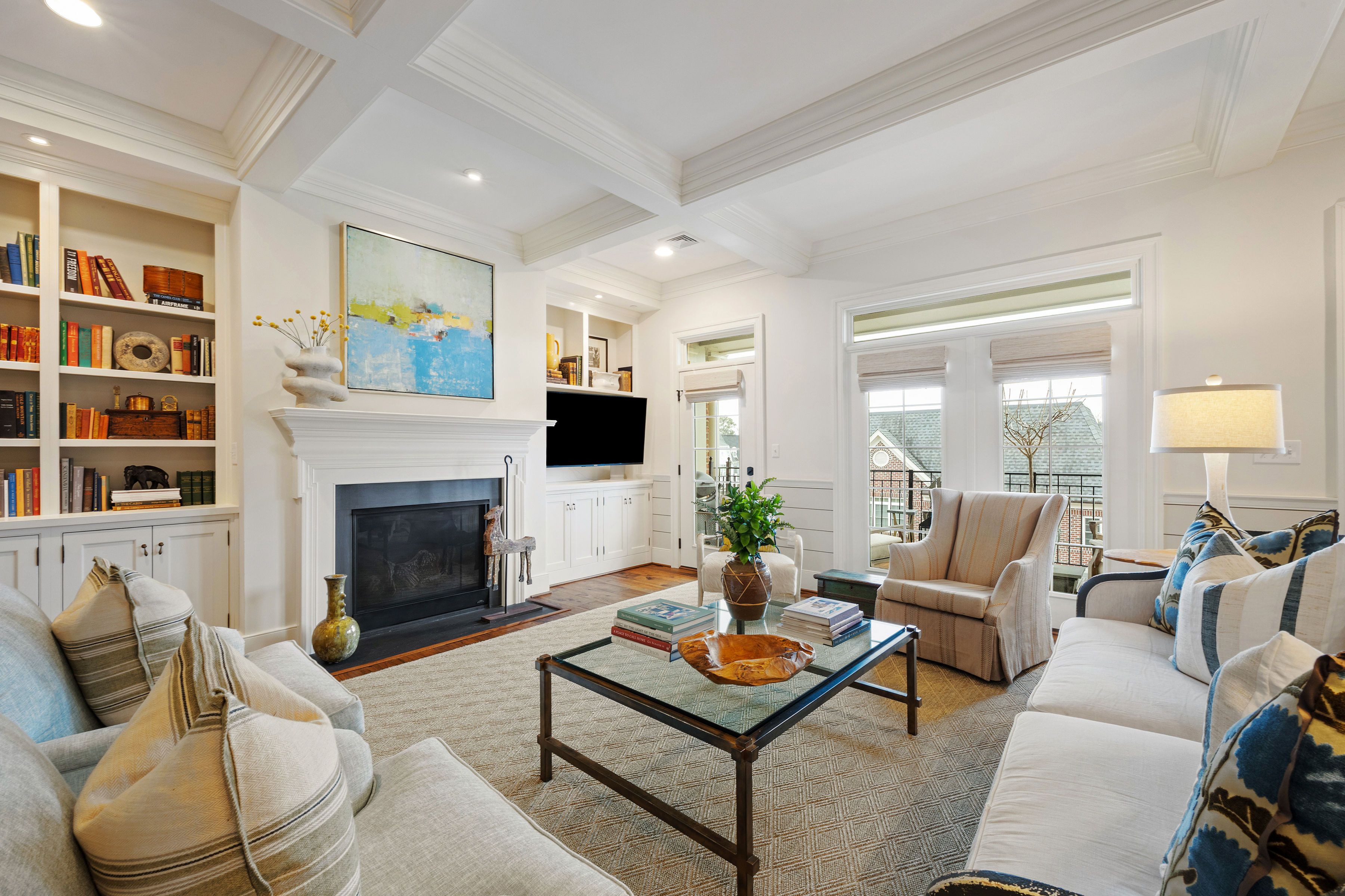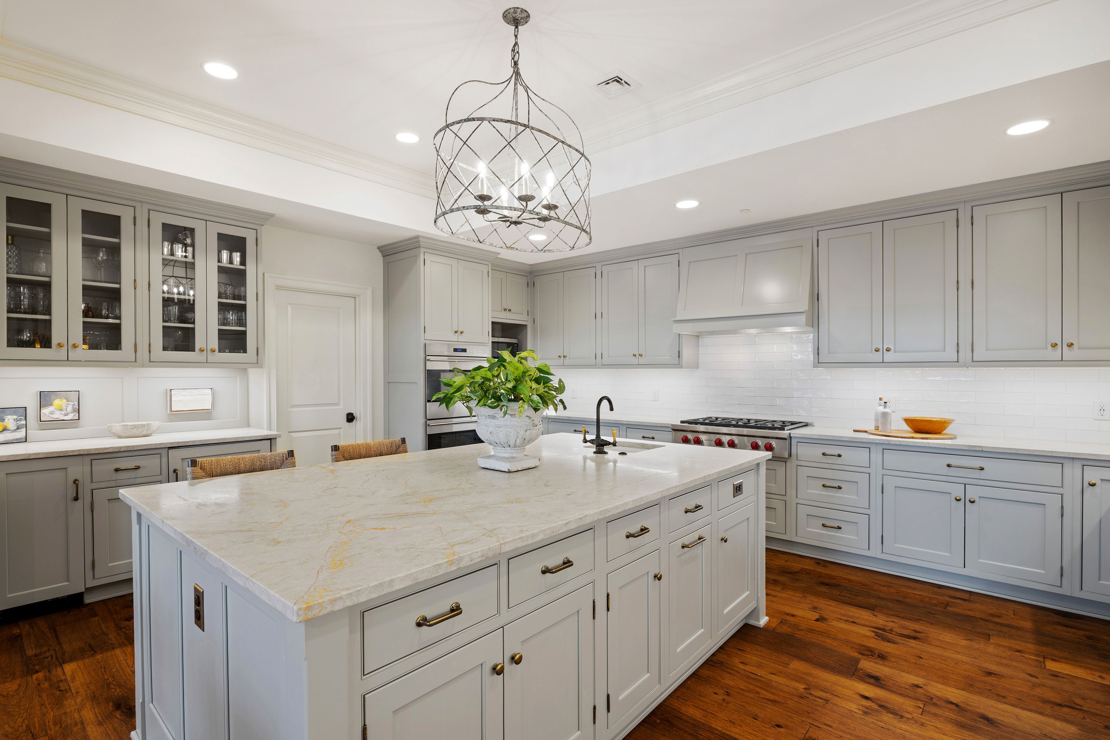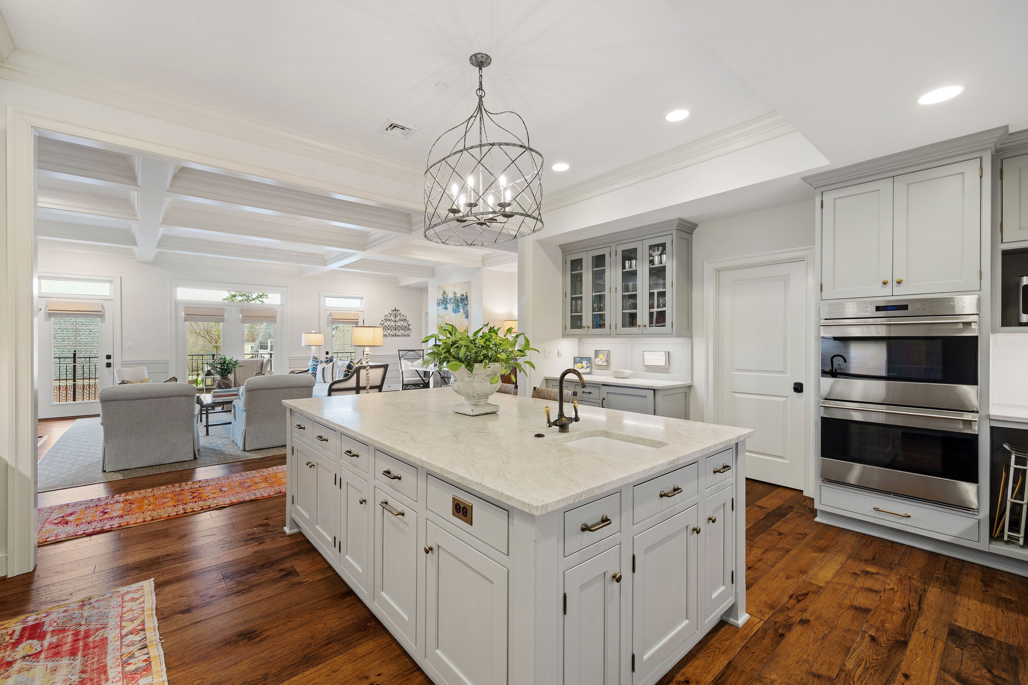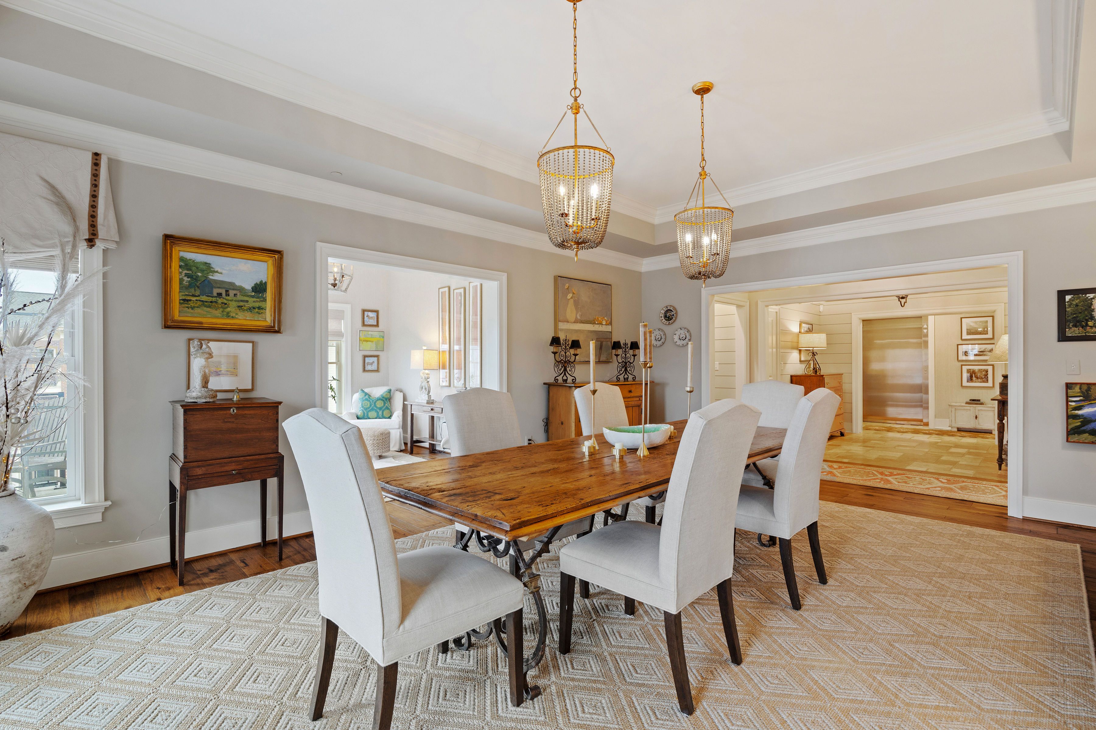 This stunning Monument Square penthouse was secured early in construction, allowing for extensive customization with high-end finishes and unique architectural details. Savor the ease of luxurious one-floor living in a thoughtfully designed layout with 3 bedrooms, 3 1/2 marble baths and sophisticated formal and informal living spaces. The elevator opens directly into this 4th level unit, providing secure, private access. Light-filled living areas feature 9'6" ceilings, random-width hickory floors, coffered ceilings, and multi-member crown molding throughout. A gorgeous chef’s kitchen features abundant Greenfield cabinetry, quartzite countertops, custom backsplash, and Sub-Zero and Wolf appliances. Enjoy panoramic views from a large covered porch and from two smaller balconies. Major bonuses include a private storage room and a private 2-car garage plus 2 assigned spaces in the common garage. Truly an exceptional opportunity with all the amenities of Monument Square living!