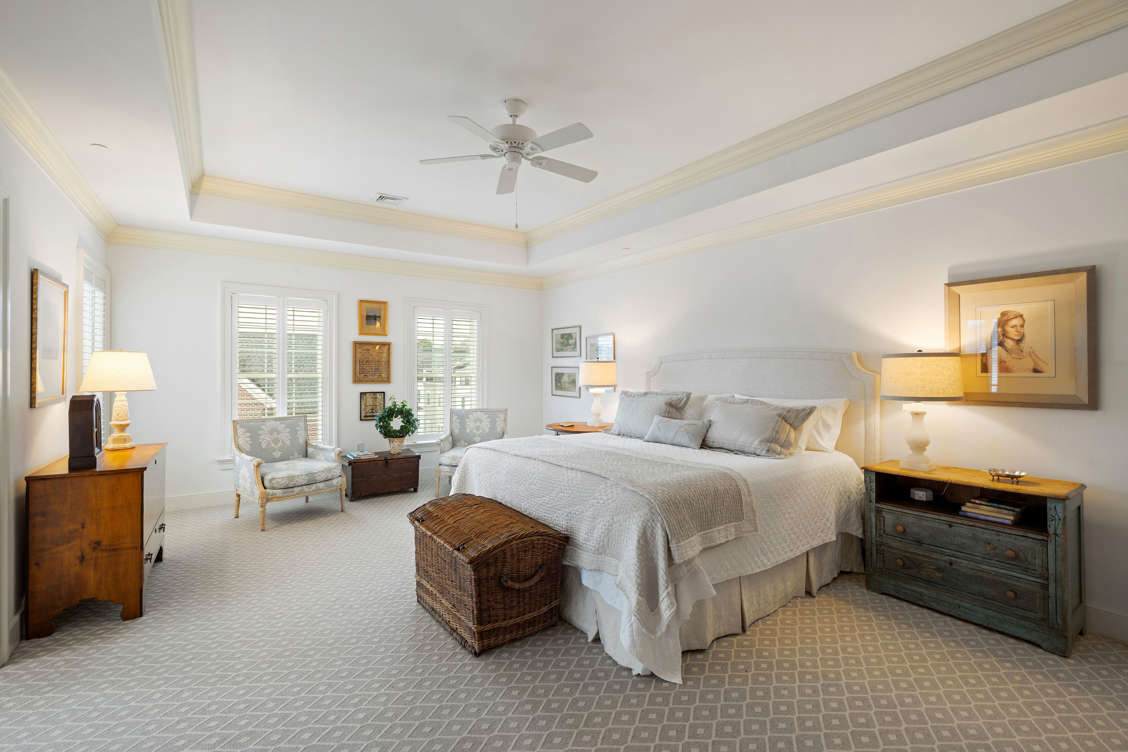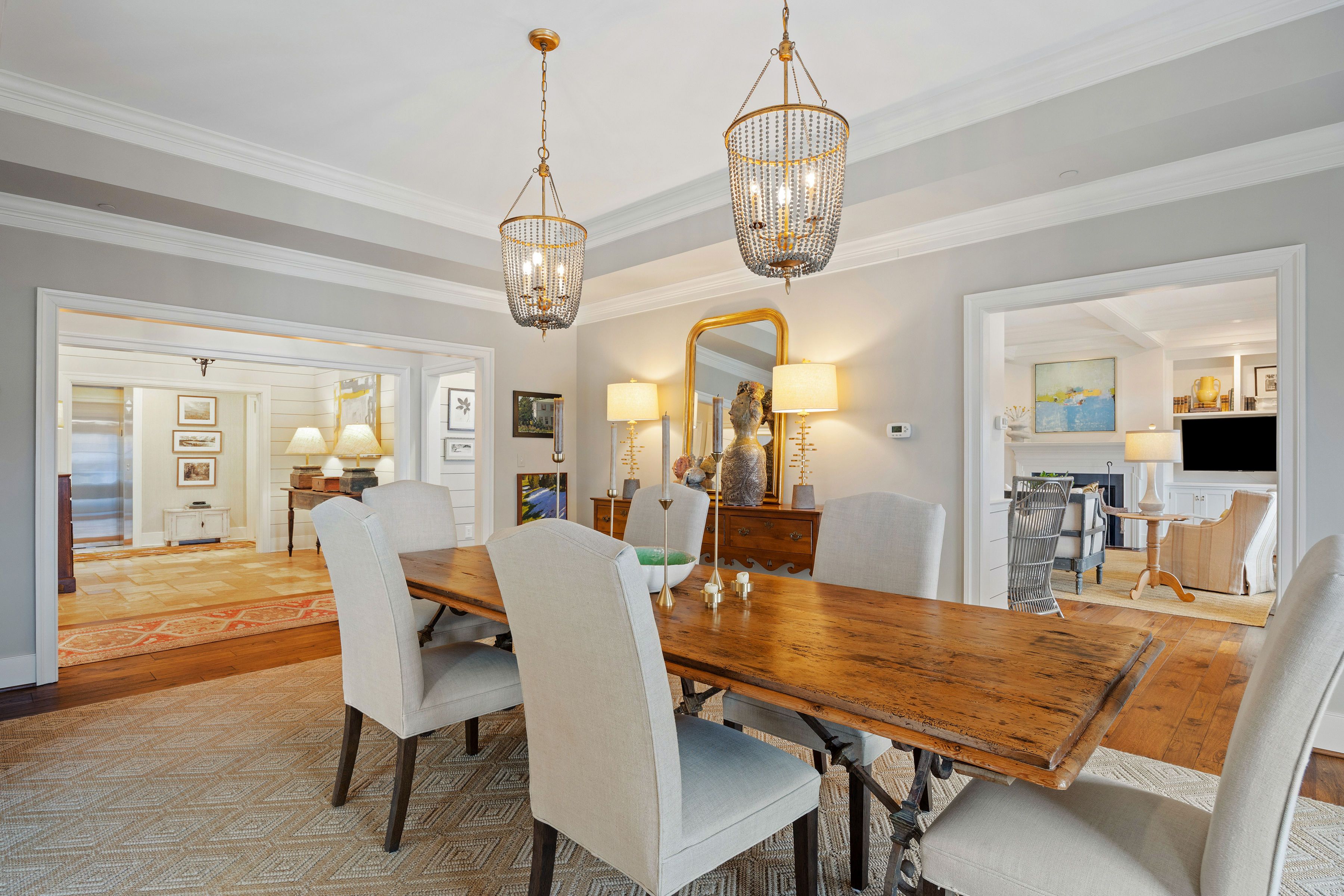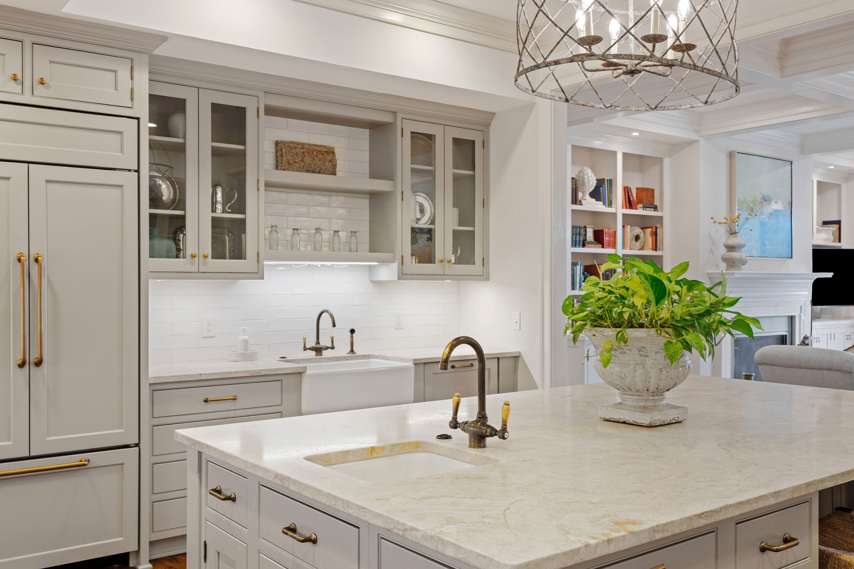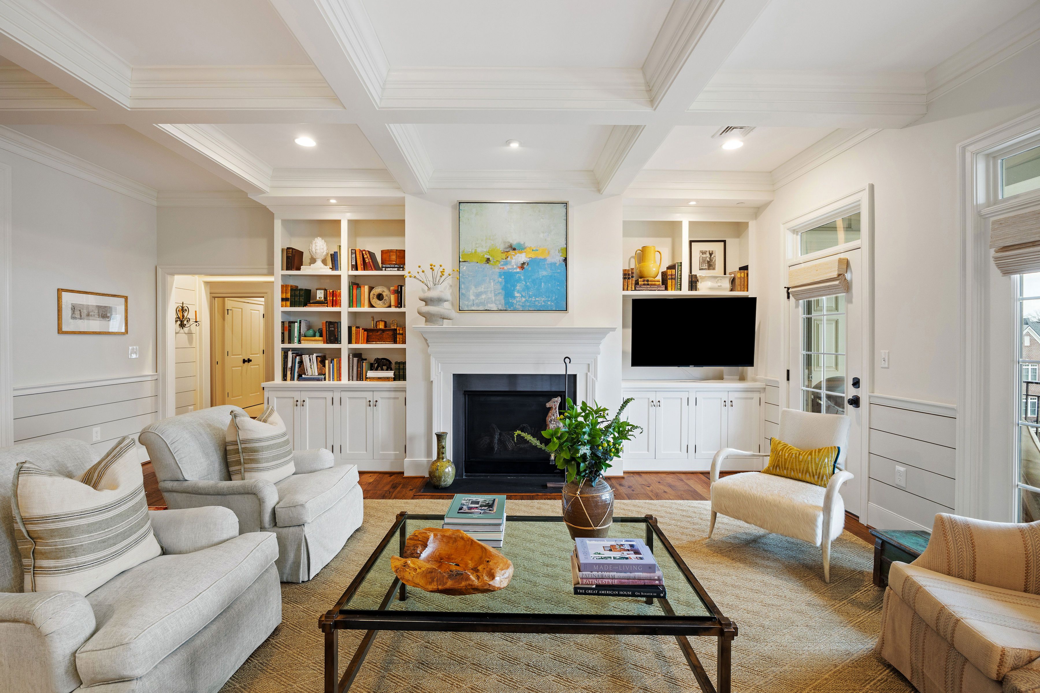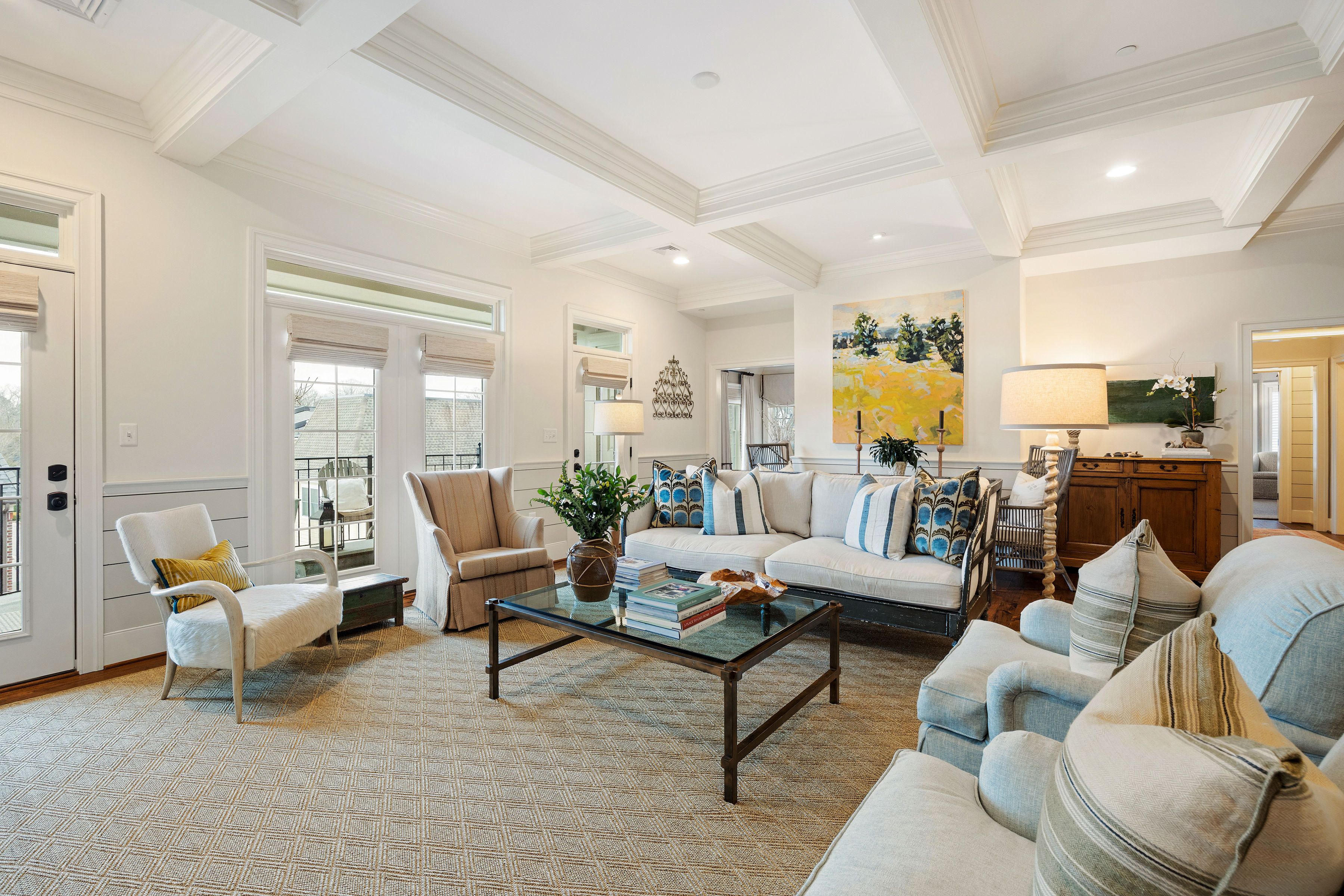 This stunning Monument Square penthouse was secured early in construction, allowing for extensive customization with high-end finishes and unique architectural details. Savor the ease of luxurious one-floor living in a thoughtfully designed layout with 3 bedrooms, 3 1/2 marble baths and sophisticated formal and informal living spaces. The elevator opens directly into this 4th level unit, providing secure, private access. Light-filled living areas feature 9'6" ceilings, random-width hickory floors, coffered ceilings, and multi-member crown molding throughout. A gorgeous chef’s kitchen features abundant Greenfield cabinetry, quartzite countertops, custom backsplash, and Sub-Zero and Wolf appliances. Enjoy panoramic views from a large covered porch and from two smaller balconies. Major bonuses include a private storage room and a private 2-car garage plus 2 assigned spaces in the common garage. Truly an exceptional opportunity with all the amenities of Monument Square living!