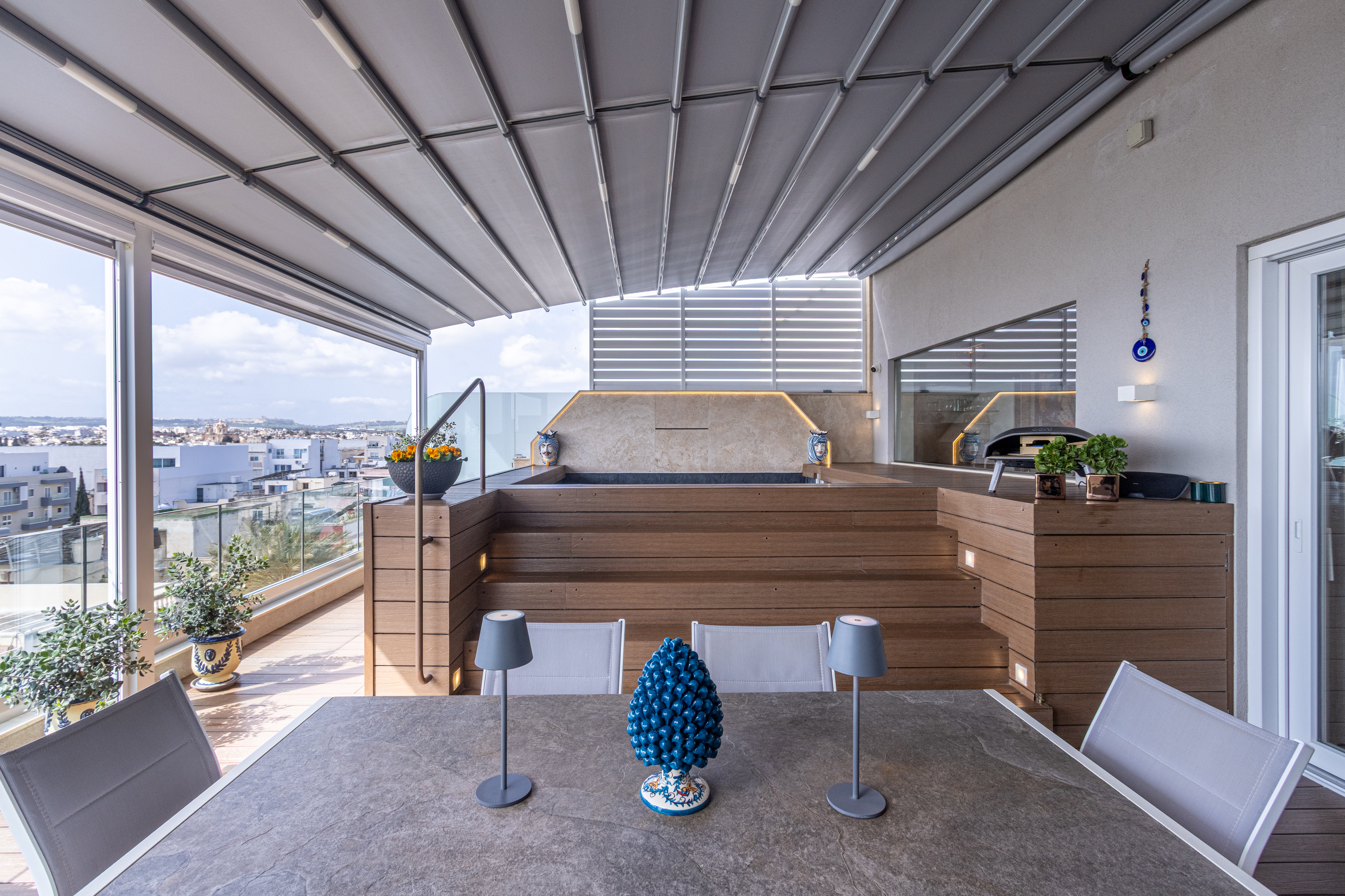 This luxurious penthouse in a quiet residential area in Iklin offers a stunning blend of comfort and modern sophistication. The property features two beautifully appointed bedrooms, including a spacious master suite complete with an ensuite bathroom and a walk-in wardrobe. Finished to exceptional standards, the penthouse is equipped with a range of premium features, including 16 solar panels, underfloor heating throughout, a fireplace, and an alarm system with CCTV cameras. Electronic pergolas further elevate the outdoor experience, offering both comfort and style. The outdoor area is equally impressive, boasting a spacious deck ideal for entertaining. Here, one can enjoy an outdoor dining area alongside a refreshing plunge pool with a striking waterfall feature, all while taking in beautiful open views of the surrounding area. Additional amenities include a VRF climate control system and a reverse osmosis water purification system, ensuring optimal comfort and convenience throughout the home. What truly sets this property apart is its exquisite, high end designer furniture, which is included in the sale. The penthouse also comes Freehold with the Airspace and a one car lock up garage, with the option to purchase an additional garage.