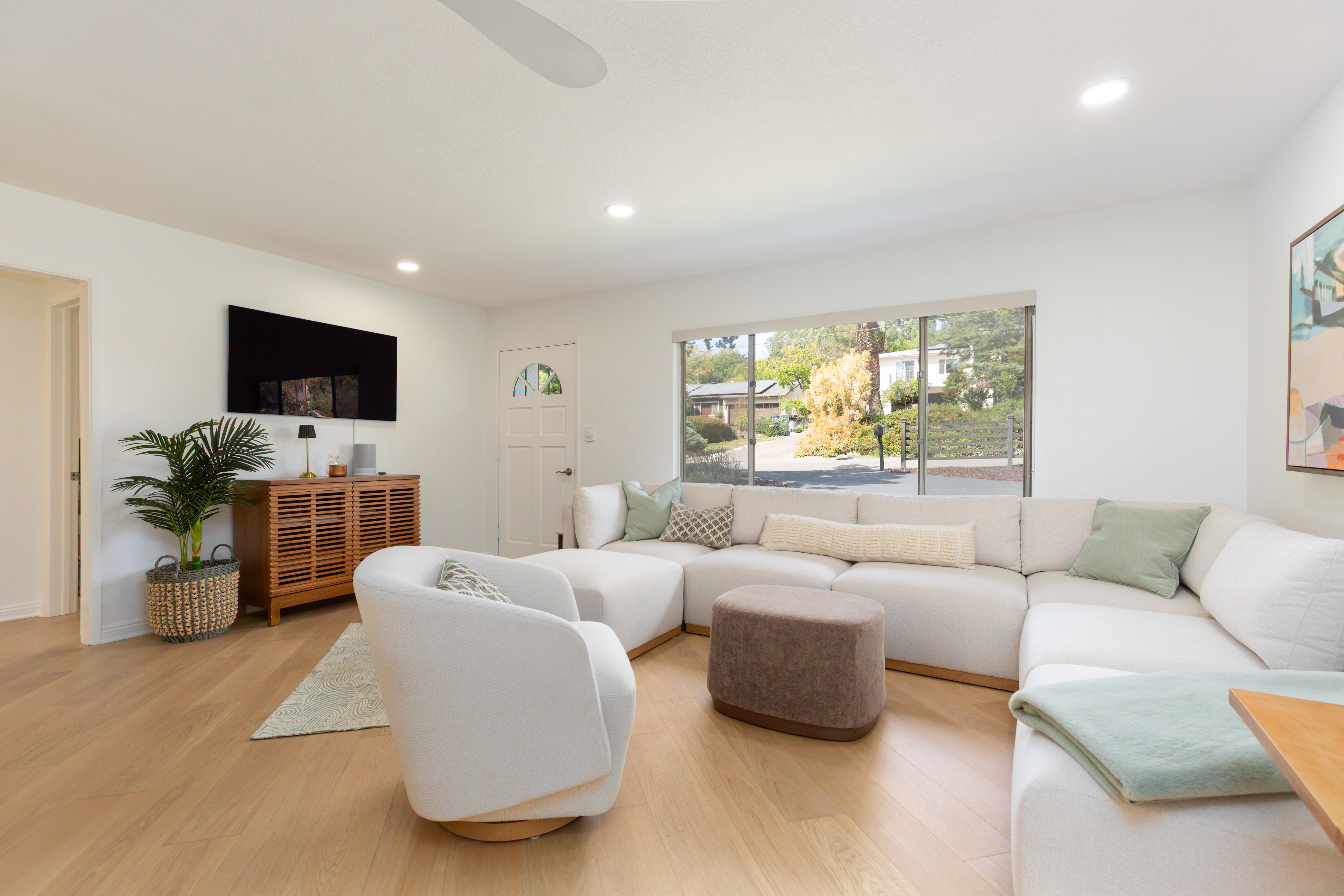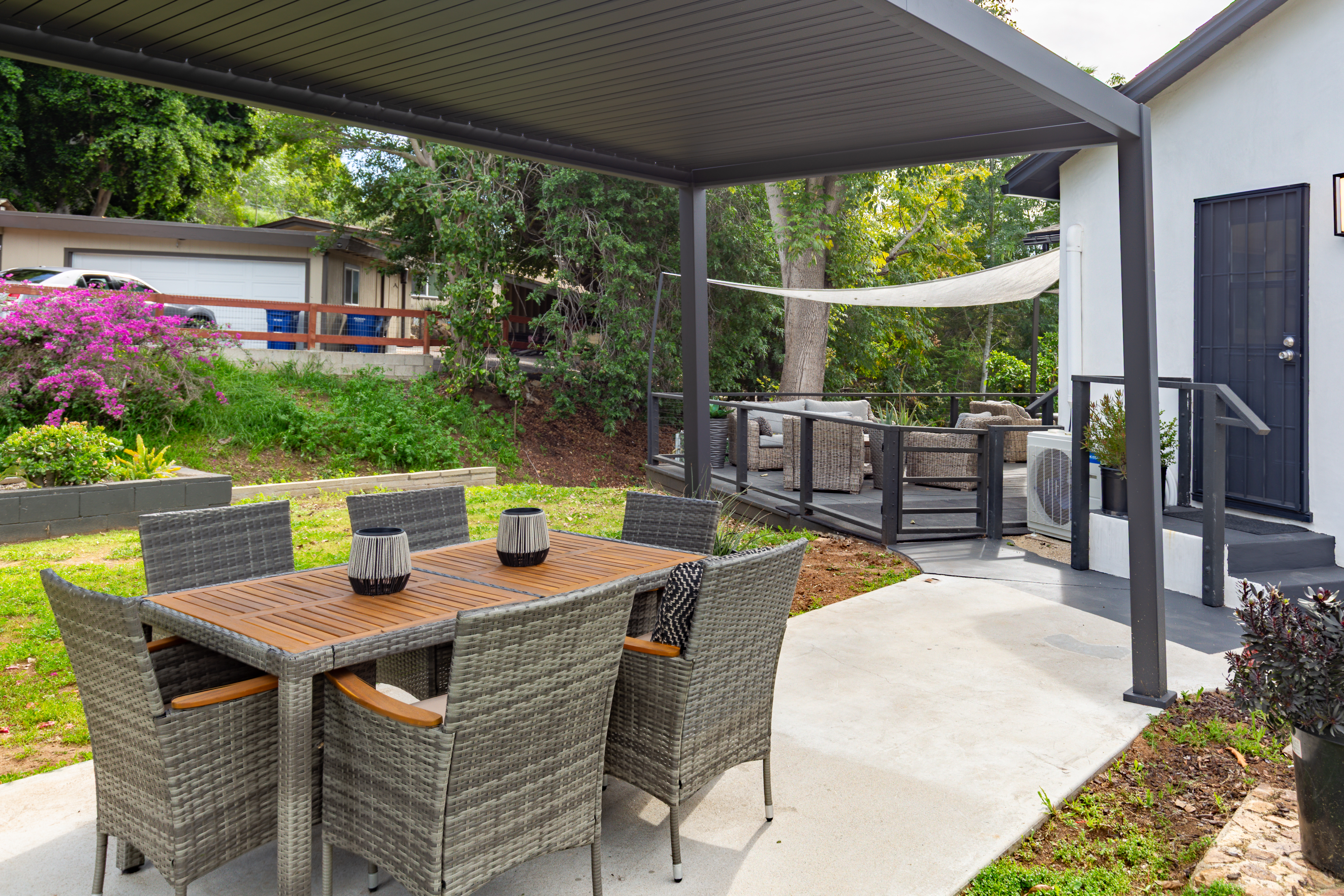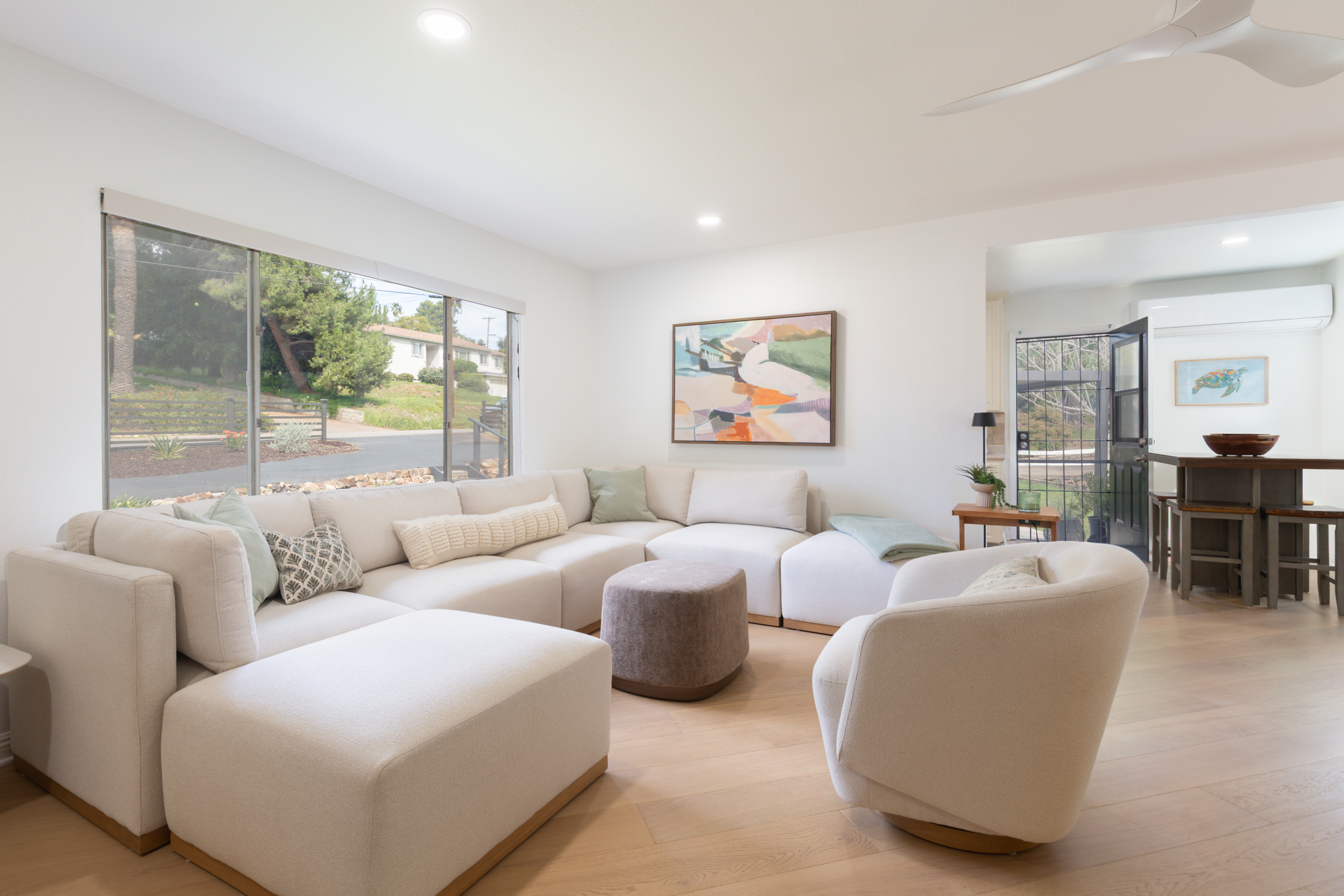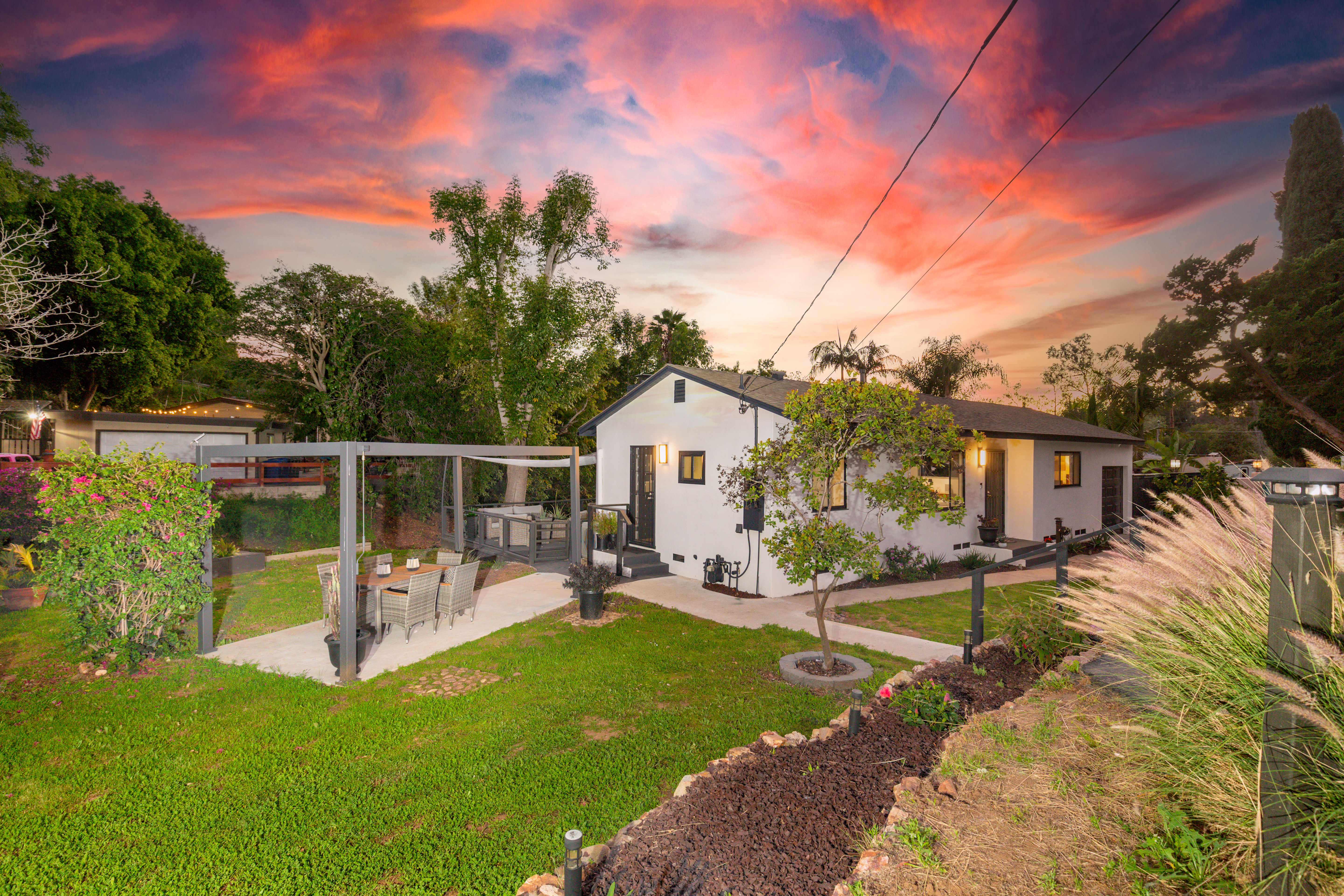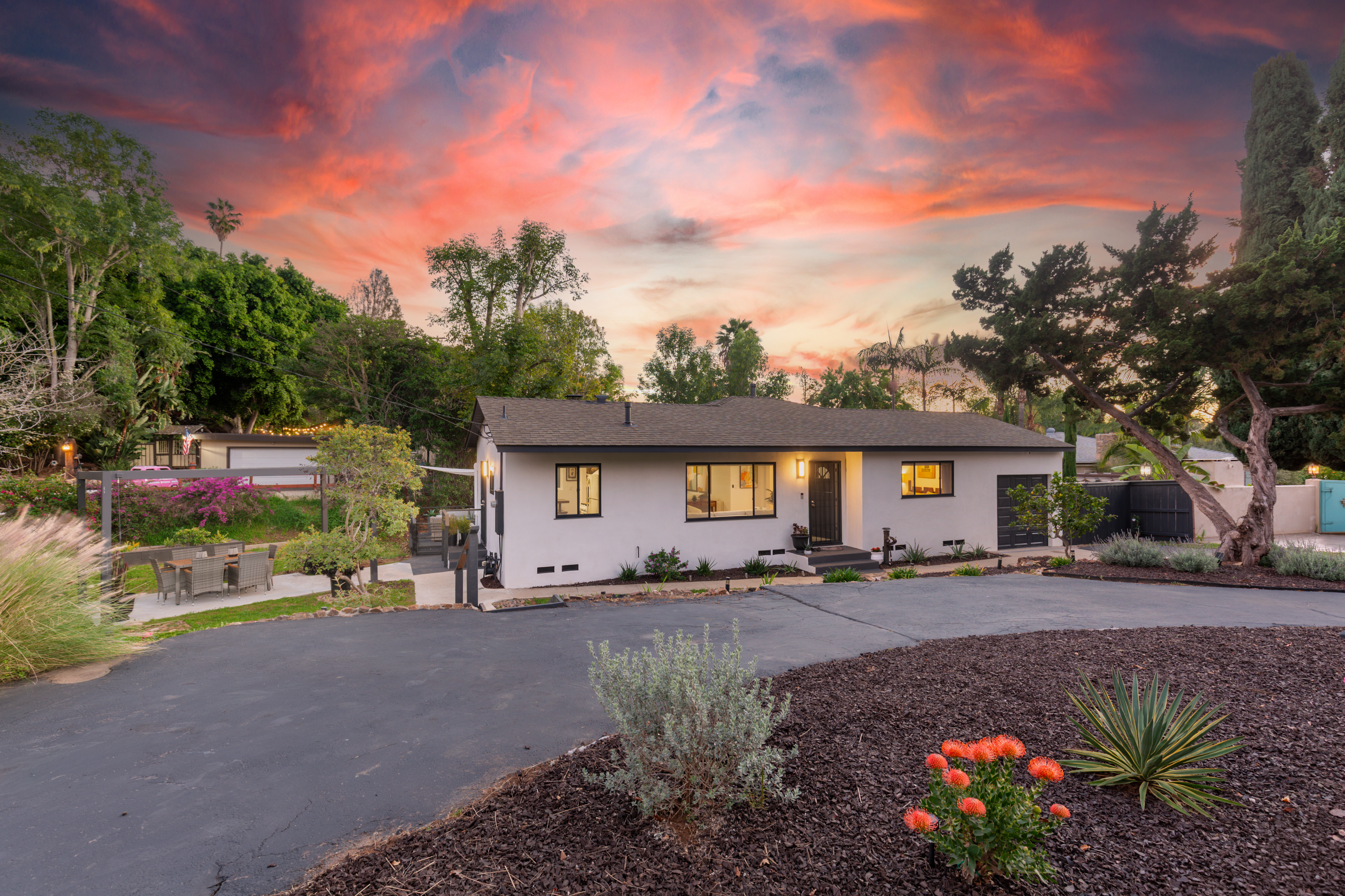 Sleek, stylish, and impeccably maintained, this beautifully renovated 2-bedroom Mt. Helix home is the hidden gem you’ve been searching for. Set on just over ¼ acre in a peaceful, park-like setting, 4550 Dickey Drive offers the prestige and serenity of Mt. Helix living in a rare single-level layout. Thoughtful premium upgrades create a warm, modern feel while preserving classic character. Highlights include: ¾" French Oak hardwood flooring, luxury polymer exterior stucco, Philips HUE smart lighting, a 24,000 BTU mini-split heating and cooling system, a whole-house fan, and solar-powered garden lighting. Outside, surrounded by mature trees and bordered by a seasonal stream, the setting feels like a private nature retreat. Enjoy quiet mornings on the spacious deck, host dinners beneath the new pergola, or gather fresh fruit from your own mini-orchard with lemon, orange, tangerine, apple, and apricot trees. This home has a prime location with amenities close by —just minutes to Highways 125, 8, and 94, Sharp Hospital, Grossmont Center and the shops and restaurants of La Mesa Village. Plus, Downtown San Diego, Mission Valley, the beaches, the airport, and local military bases are all within an easy 10–20 minute drive.