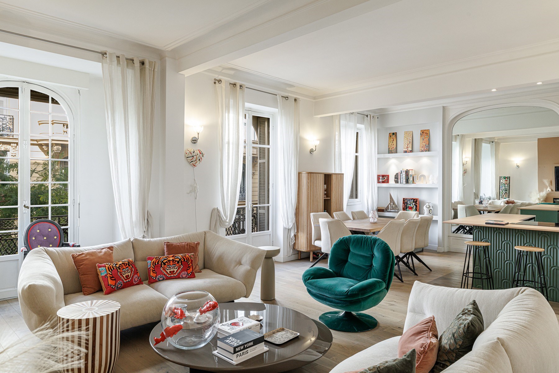Located in the Carré d’Or district of Nice, this 109 sqm apartment is situated on the first floor of a traditional Niçois building from the 1940s. The property includes a spacious living area with lounge, dining room and open fully equipped kitchen with central island. The night area features two bedrooms, two bathrooms and an independent study that could be converted into a third bedroom. The apartment benefits from high ceilings, wooden floors and large windows, providing natural light and character. It is ideally located close to the Promenade des Anglais, beaches, shops and restaurants. Côte d’Azur Sotheby’s International Realty For further information or to arrange a viewing, please contact Côte d’Azur Sotheby’s International Realty, your specialist in luxury real estate on the French Riviera.