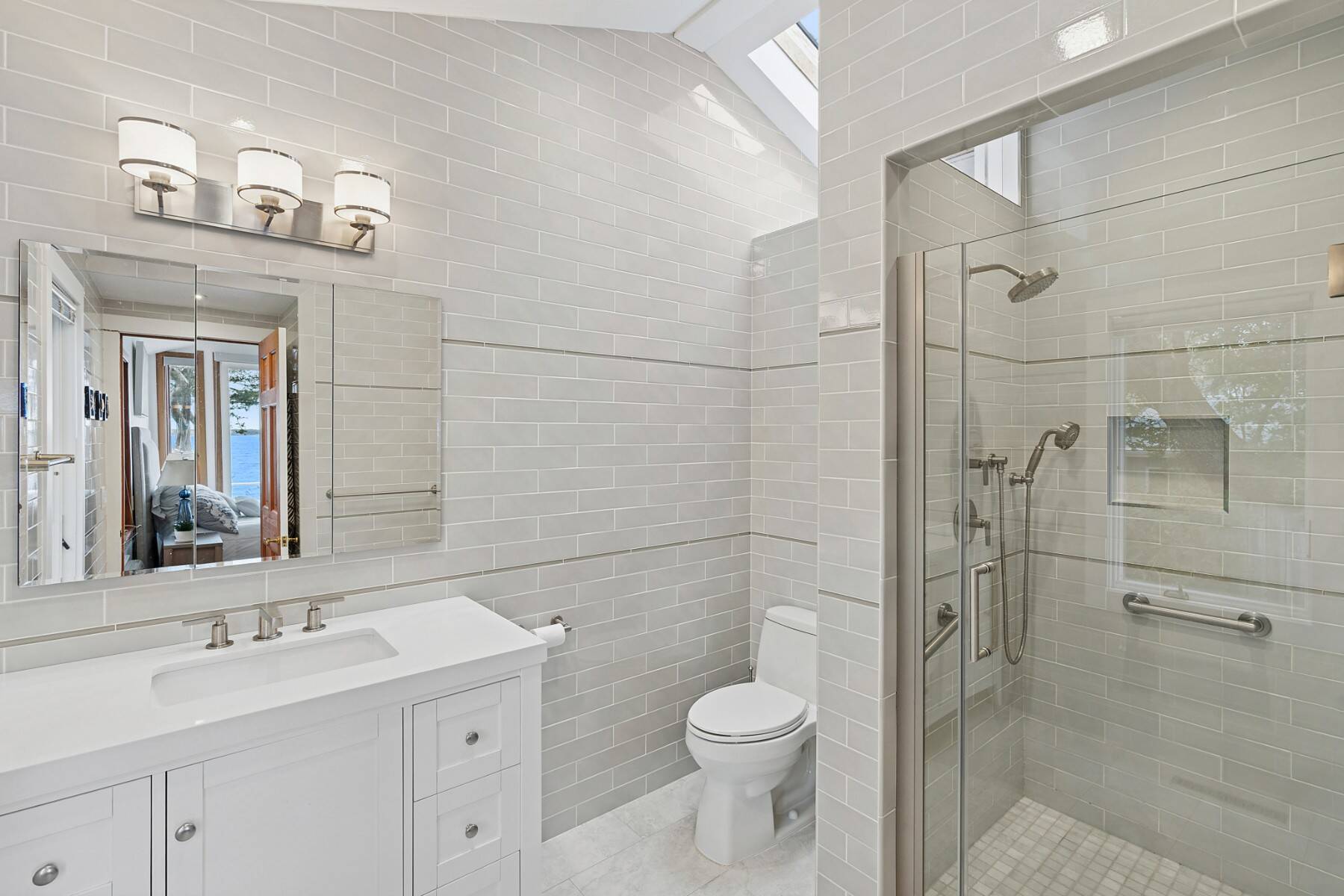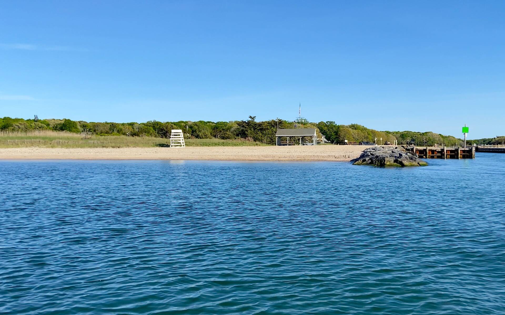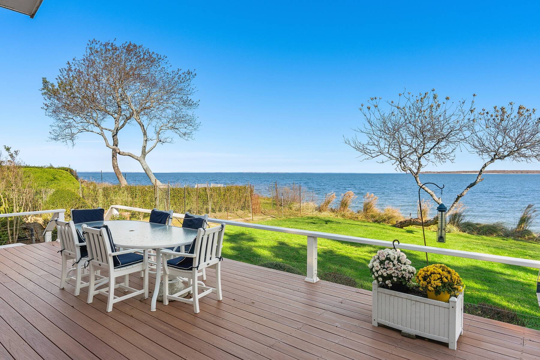 Experience sweeping water views and endless horizons from this beautifully maintained four-bedroom, three-bath beach house, privately sited on ±0.68 acres and perched 24 feet above Gardiners Bay. A welcoming foyer opens to a bright, open-concept interior with immediate, wide bay views through expansive glass walls that flood the home with natural light. The open layout features a fully equipped kitchen with stainless steel appliances, a spacious dining area, and a comfortable living room with a wood-burning fireplace-all oriented toward the water. The primary suite enjoys captivating bay views and a private en-suite bath, while three additional, well-proportioned guest bedrooms are thoughtfully positioned in separate wings for comfort and privacy. Outdoors, a generous waterside deck overlooks a rolling green lawn and a private white-sand bay beach. Enjoy brilliant morning sunrises and glowing sunset colors from the home's ideal eastern orientation over Gardiners Bay. Room for a pool, pool house, and potential for further expansion offer flexibility and long-term value. Located within the Clearwater Beach Association, residents enjoy access to a members-only lifeguarded beach and private marina. A truly special waterfront retreat on coveted Kings Point Road - ideal for those seeking the best of Hamptons waterfront living.