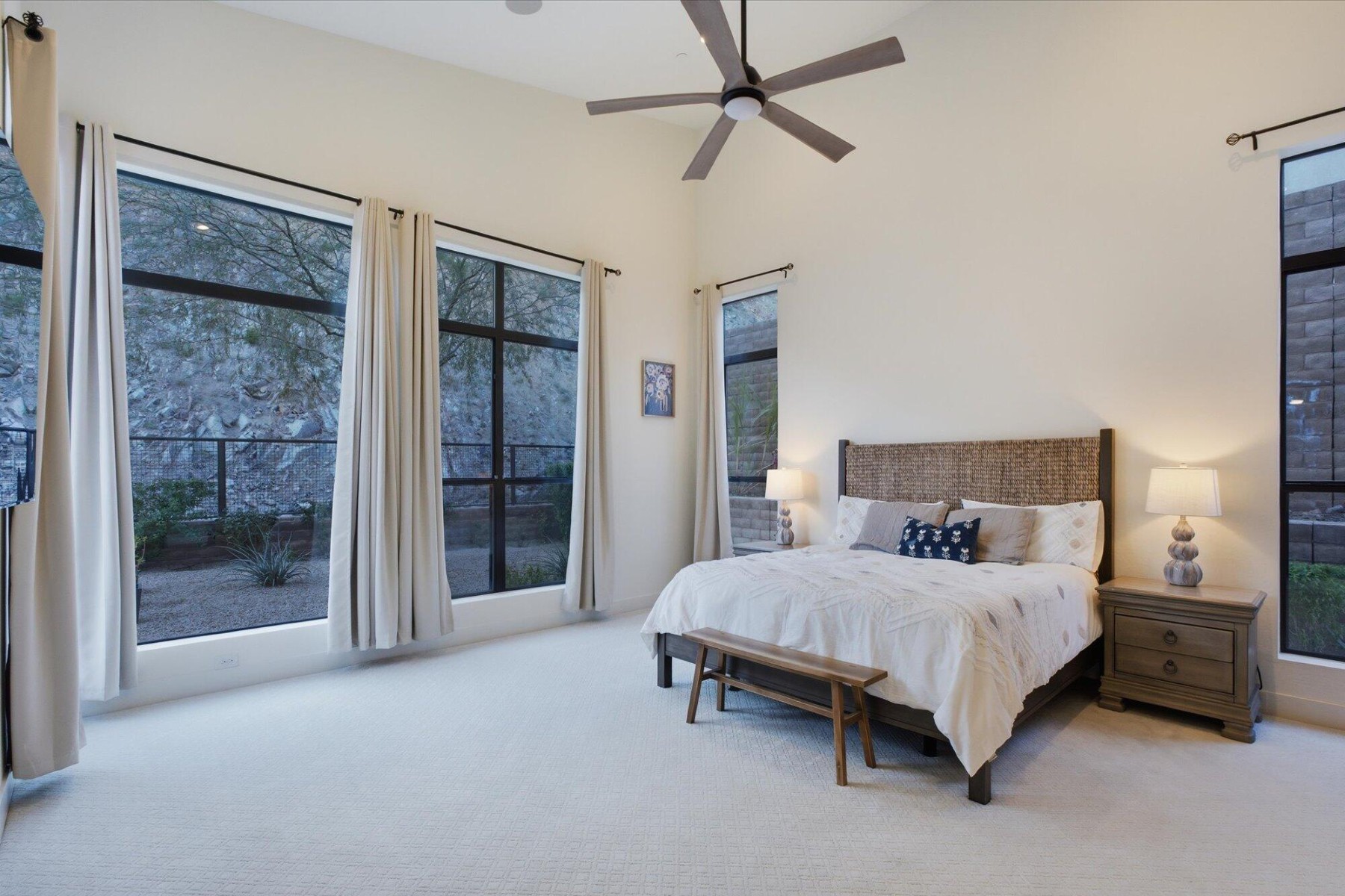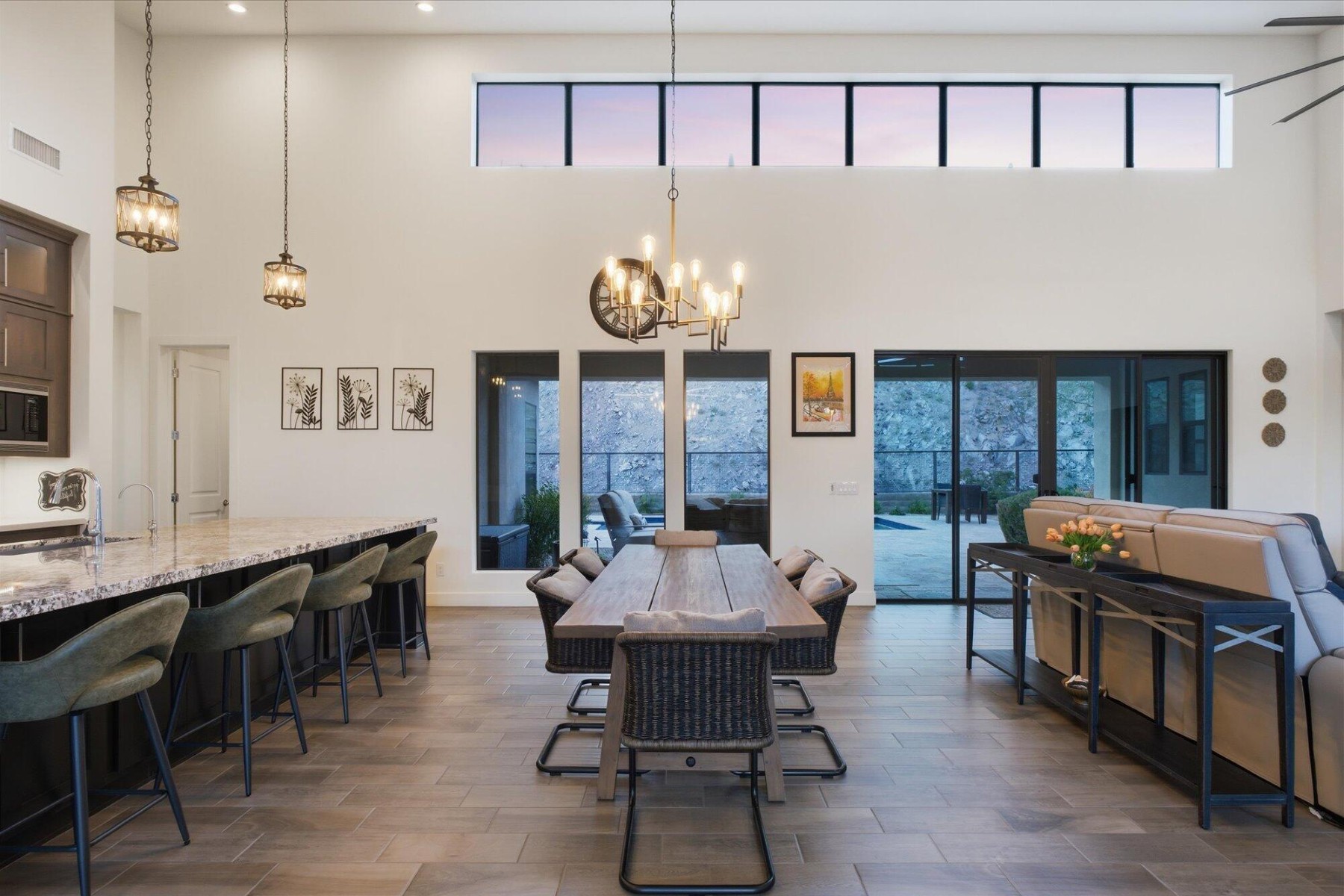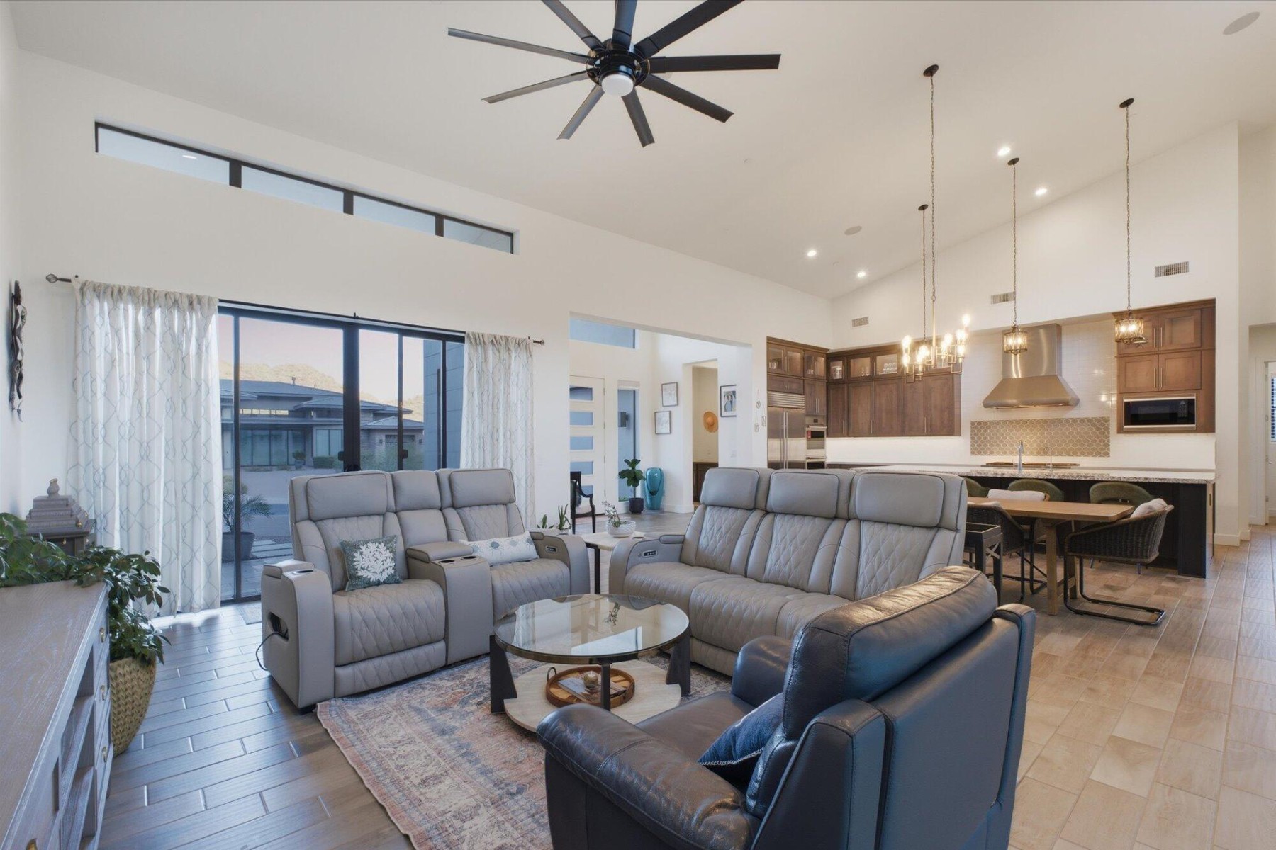 Exceptional east-facing, single-level residence featuring the highly sought-after Adelman floorplan on a wide, premium lot with unobstructed mountain views and no direct rear neighbors, offering exceptional privacy and natural sun protection. This 3-bedroom, 3.5-bath home with a dedicated office showcases tall ceilings, expansive windows, and seamless indoor-outdoor living. The designer kitchen includes Sub-Zero and Wolf appliances, a granite island, custom cabinetry, and walk-in pantry. Builder upgrades include whole-home audio, Control4 automation, and thoughtfully designed bathrooms. The private backyard offers a pool, heated spa, travertine hardscape, and expansive mountain views. Side-entry two-car garage plus separate one-car garage.