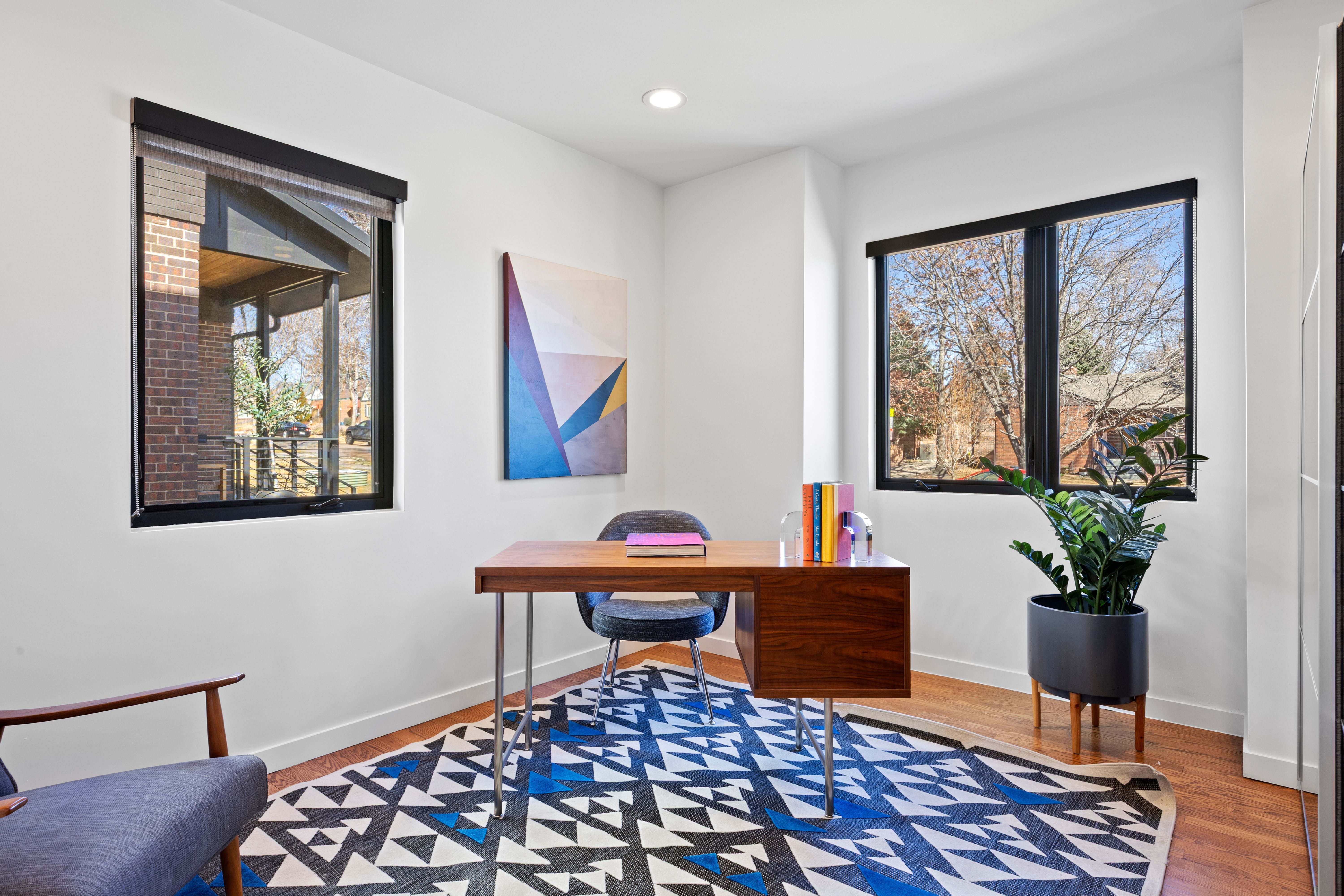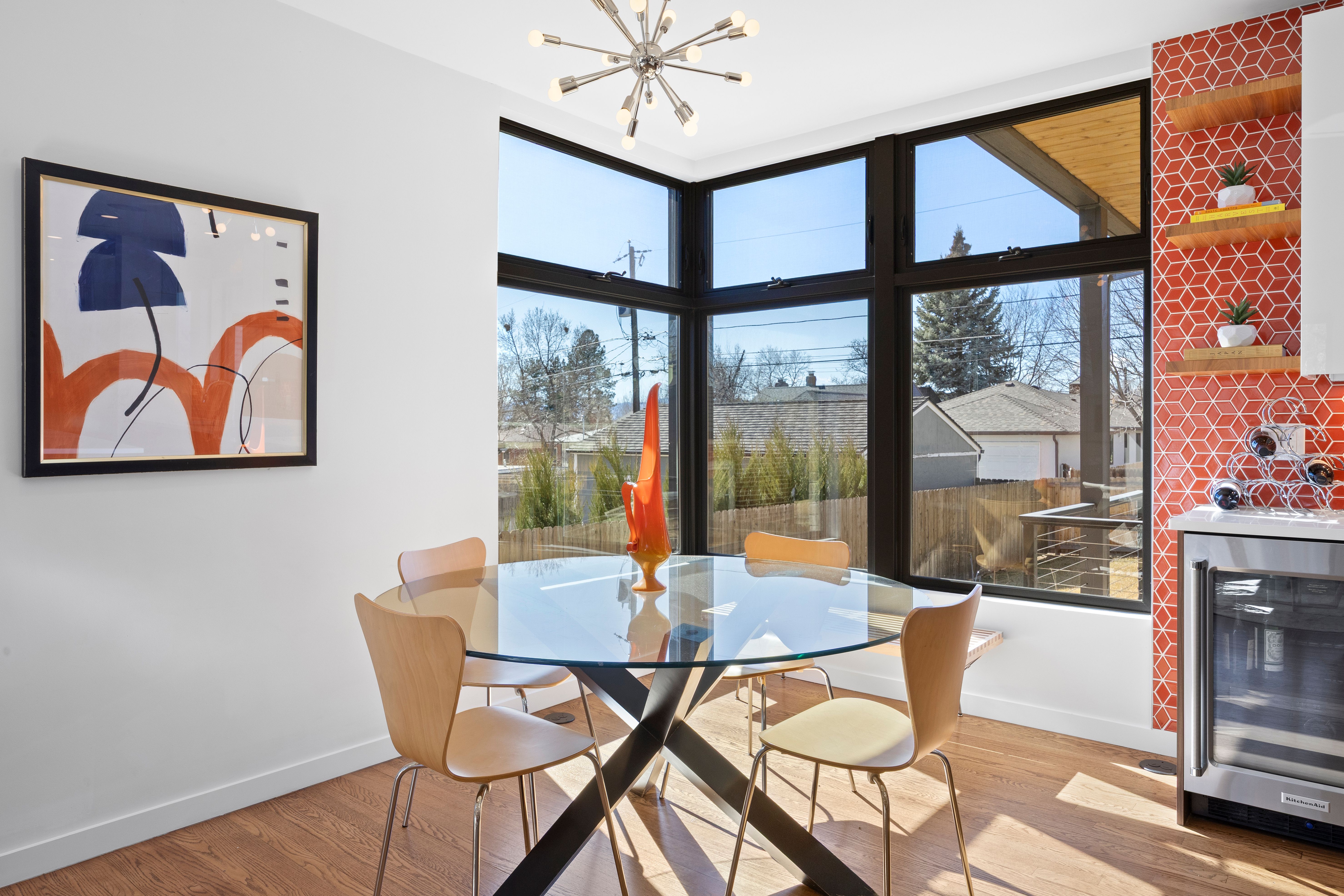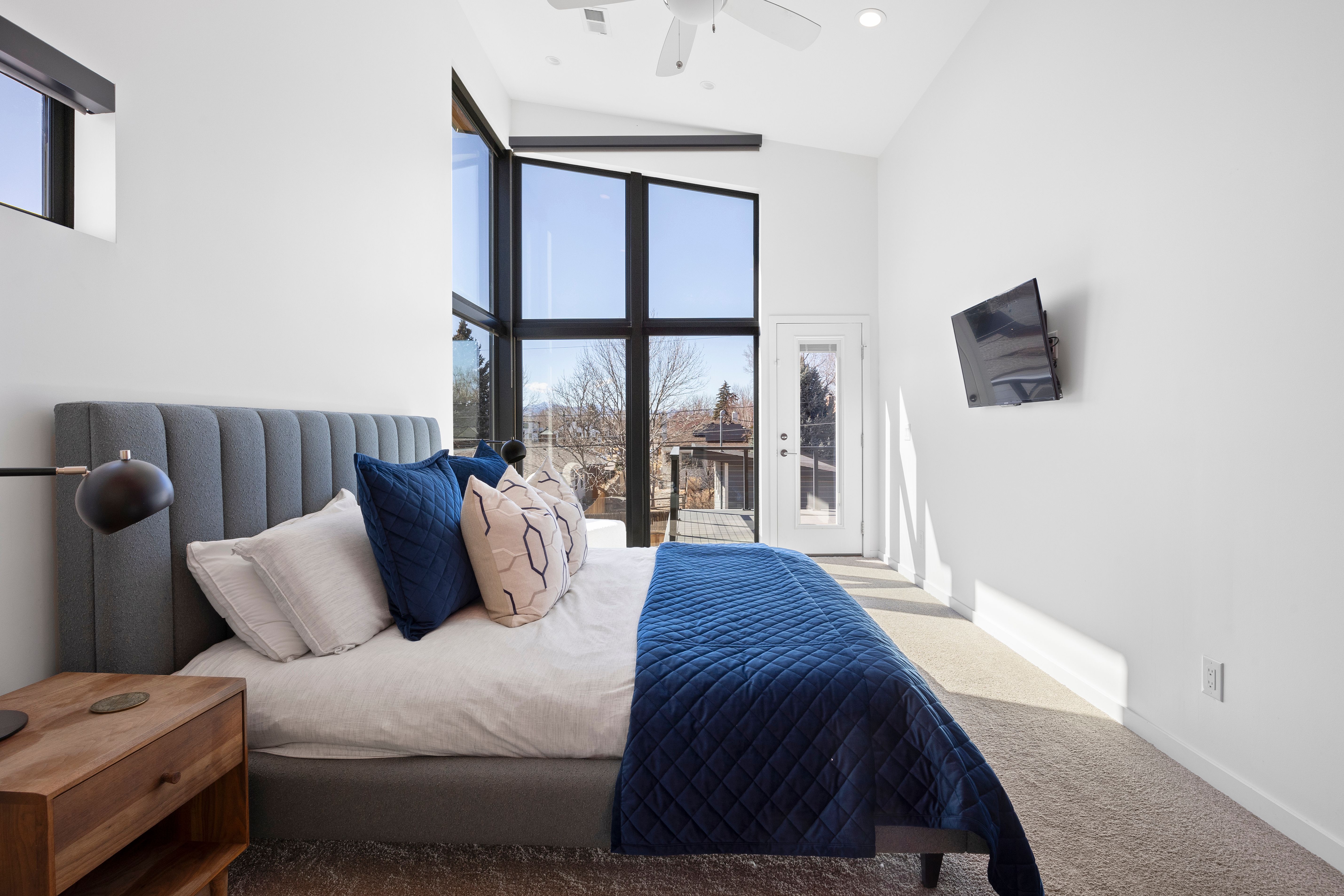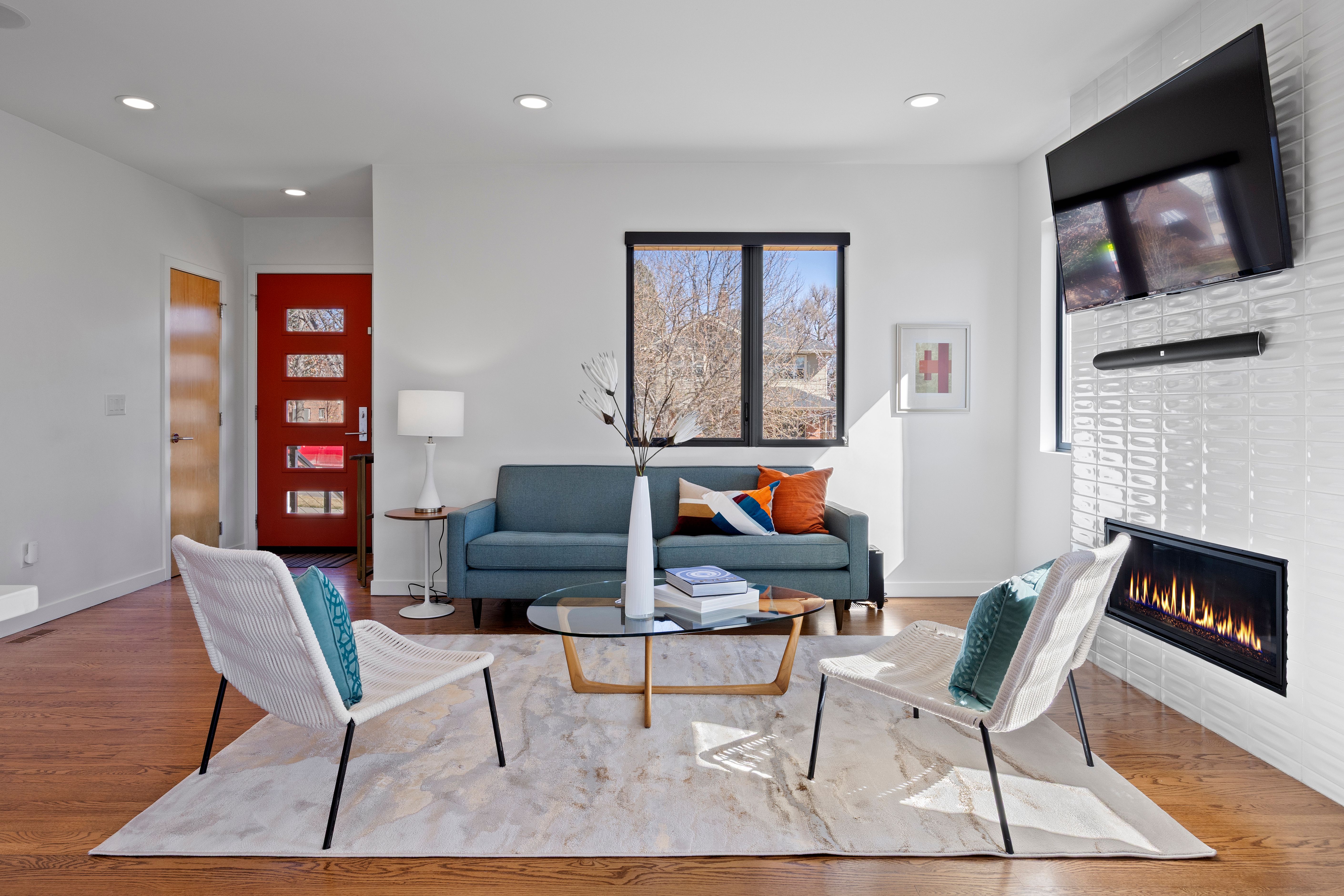 This architecturally refined 1939 residence, fully renovated in 2016, sits on a rare double lot just two blocks from Sloan’s Lake and captures beautiful western mountain views. Enjoy exceptional walkability to West Highlands and Highlands Square, with the vibrant 32nd Street corridor just moments away, offering boutique shopping, cafés, and acclaimed dining. The open-concept main level blends craftsmanship and functionality, anchored by a bright kitchen with custom cabinetry, quartz countertops, and stainless steel appliances. The adjoining living and dining areas are filled with natural light and centered around a gas fireplace, creating an inviting space ideal for both everyday living and entertaining. These spaces overlook the private backyard, enhancing the home’s indoor-outdoor connection. A main-floor bedroom or office and a full bathroom complete this level. The upper level features a private primary retreat with vaulted 12-foot ceilings, dramatic floor-to-ceiling windows, and a spacious deck showcasing stunning western mountain views and sunsets. The suite includes a large walk-in closet and a spa-like five-piece bath with a soaking tub and Euro-glass shower. This level also offers an additional bedroom suite with a full bath, oversized walk-in closet, and a convenient laundry room. The finished basement includes a spacious media/family room with surround sound, a conforming bedroom, and a full bathroom. Outside, a covered patio overlooks a newly fenced backyard with ample space for outdoor entertaining and activities. Outside, a spacious covered patio overlooks a newly fenced backyard with plenty of room for outdoor activities and entertaining. Completing the property is an oversized detached two-car garage. This thoughtfully renovated four-bedroom, four-bathroom home offers timeless character, modern comfort, and an exceptional Sloan’s Lake location.