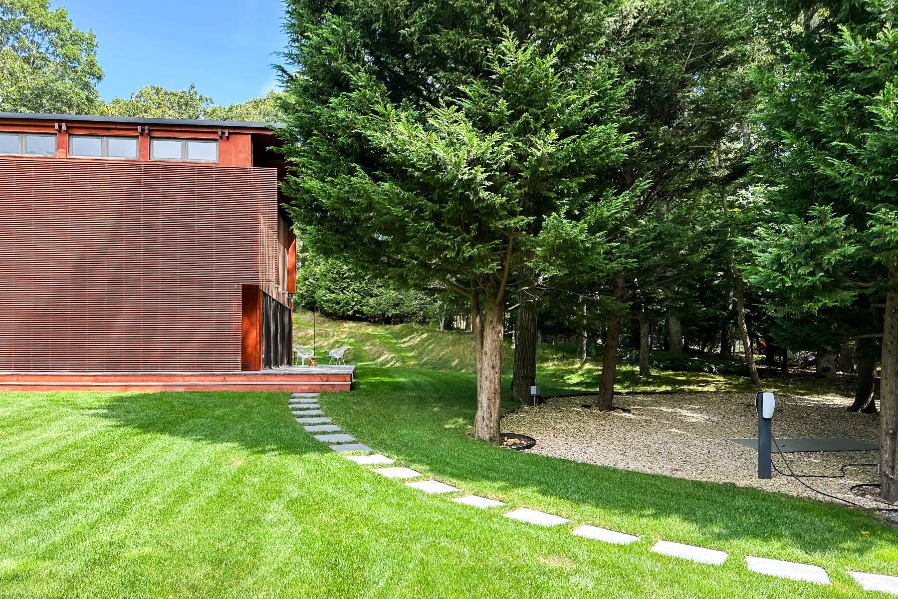 A rare offering in coveted Barnes Landing, this one-of-a-kind modern residence by the renowned Bates Masi + Architects is a masterclass in thoughtful design and coastal living. Set on 0.61 acres, the two-bedroom, two-bath home has an open floor plan, soaring ceilings, and exceptional craftsmanship throughout. Crisp modern lines and oversized windows blur the boundary between indoors and out, inviting natural light to pour in while framing the surrounding landscape as living art. Designed with simplicity and intention, the home offers effortless living just moments from the beach. Completely private, the sun filled grounds feature expansive lawn space and room for a pool, creating a serene retreat ideal for relaxation or entertaining. Located just two blocks from an incredible the bay beach this is a rare opportunity to own an architectural statement in one of the area's most desirable waterfront enclaves. A thoughtfully designed beach house of this caliber rarely comes to market - an exceptional opportunity not to be missed.