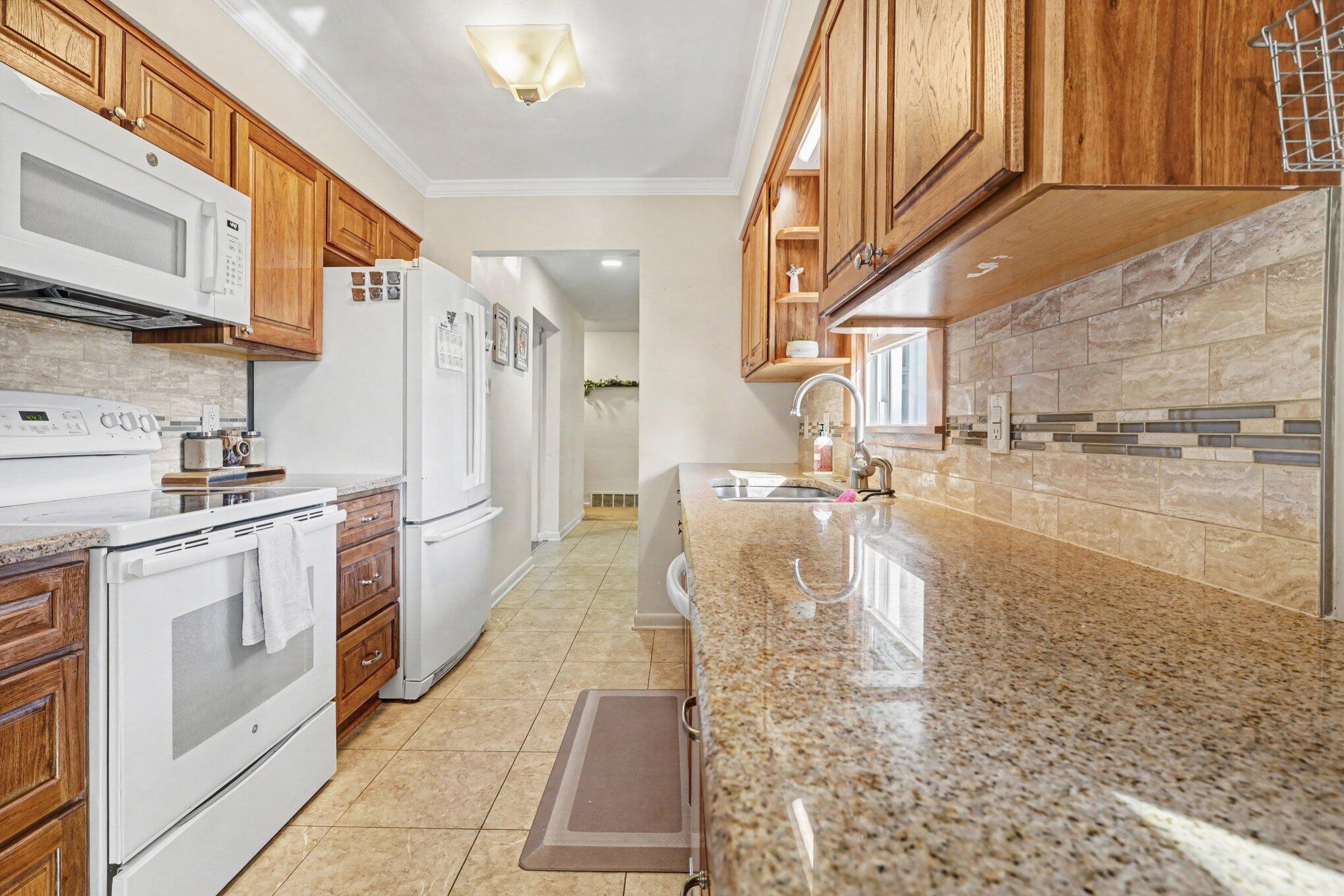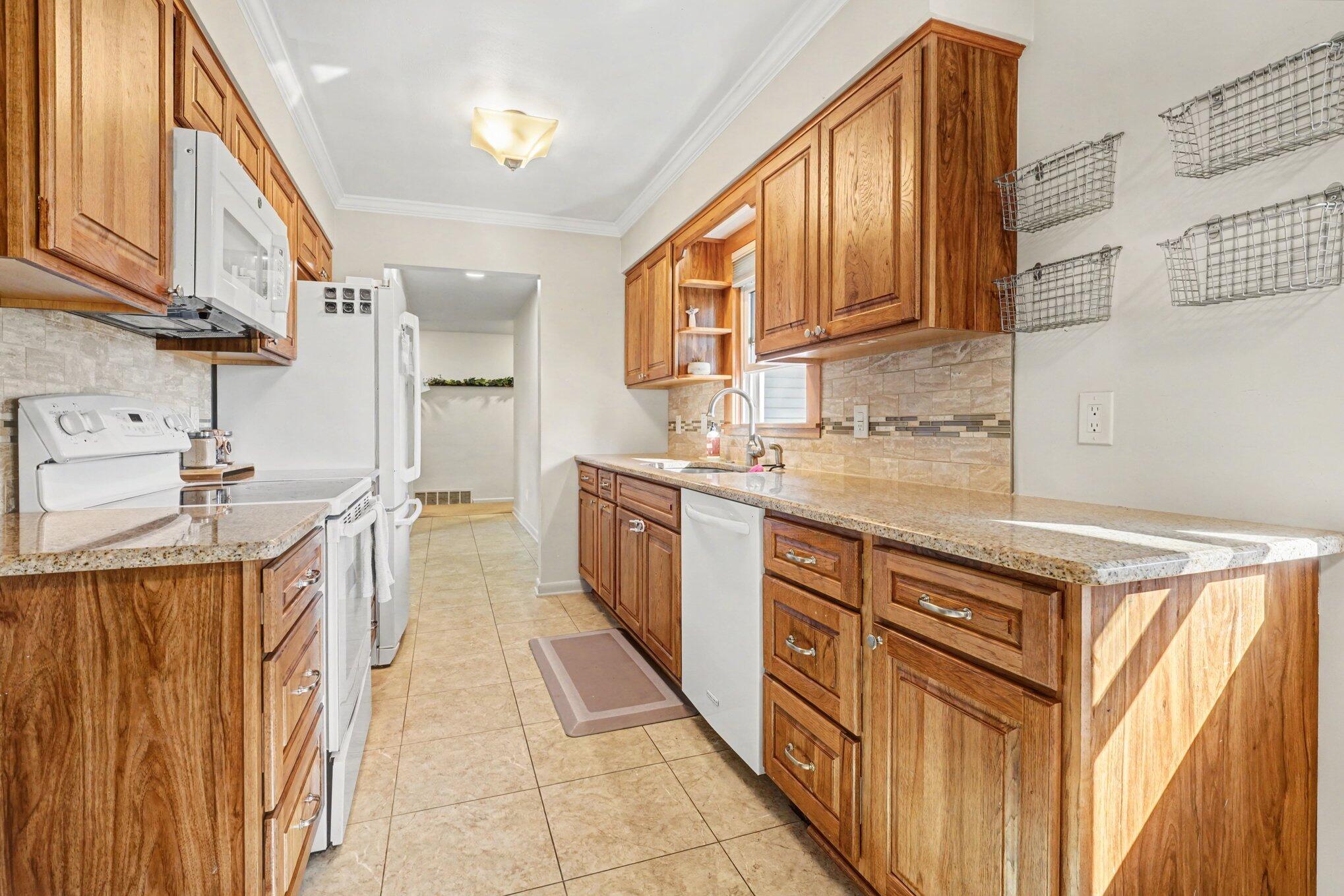 Welcome home to this beautifully cared for ranch style retreat in one of the areas most sought after neighborhoods. From the moment you step inside you'll appreciate the warm inviting layout and thoughtful updates throughout. The bright modern kitchen offers plenty of storage with Kraftmade cabinets and granite counter tops. The spacious primary suite provides a peaceful escape with double closets and a private bath. A second full bathroom has been stylishly remodeled with double vanities and a fresh contemporary feel. All three bedrooms offer comfort, space and abundant storage. Downstairs the cozy rec room with a fireplace is perfect for movie nights or quiet evenings in. The expansive basement also provides exceptional storage and room to grow. Outside enjoy your morning coffee or summer gatherings on the huge deck overlooking more than half an acre of beautifully landscaped yard. With an attached 2 car garage and included appliances this home is truly move in ready.