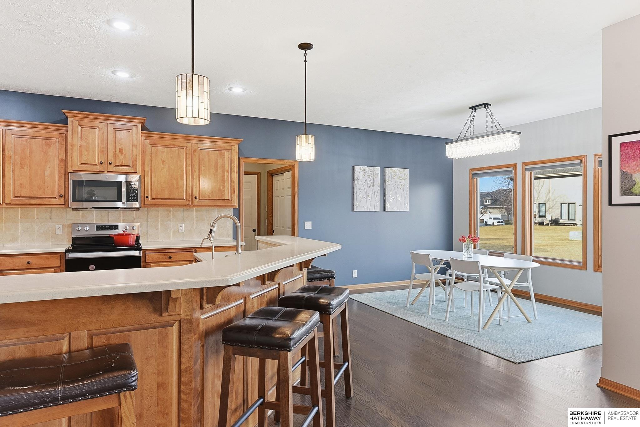 Spacious Elkhorn 2-story offering five bedrooms all above grade and a wonderful layout for everyday living. The main floor features an open kitchen with an eat-at breakfast bar, a plethora of cabinetry, and generous workspace, flowing seamlessly into the great room and informal dining area that overlooks the large, flat backyard - perfect for gatherings and outdoor enjoyment. A private main floor office with double doors provides an ideal space for working from home or a quiet study. Upstairs, the primary suite includes a large walk-in closet and private bath, with four additional bedrooms offering flexibility for family, guests, or hobbies. The unfinished basement provides a great opportunity to customize and create additional living space to suit your needs. Located in a desirable Elkhorn neighborhood close to schools, parks, and everyday conveniences, this home offers space, function, and the chance to make it your own. EV charger in garage included