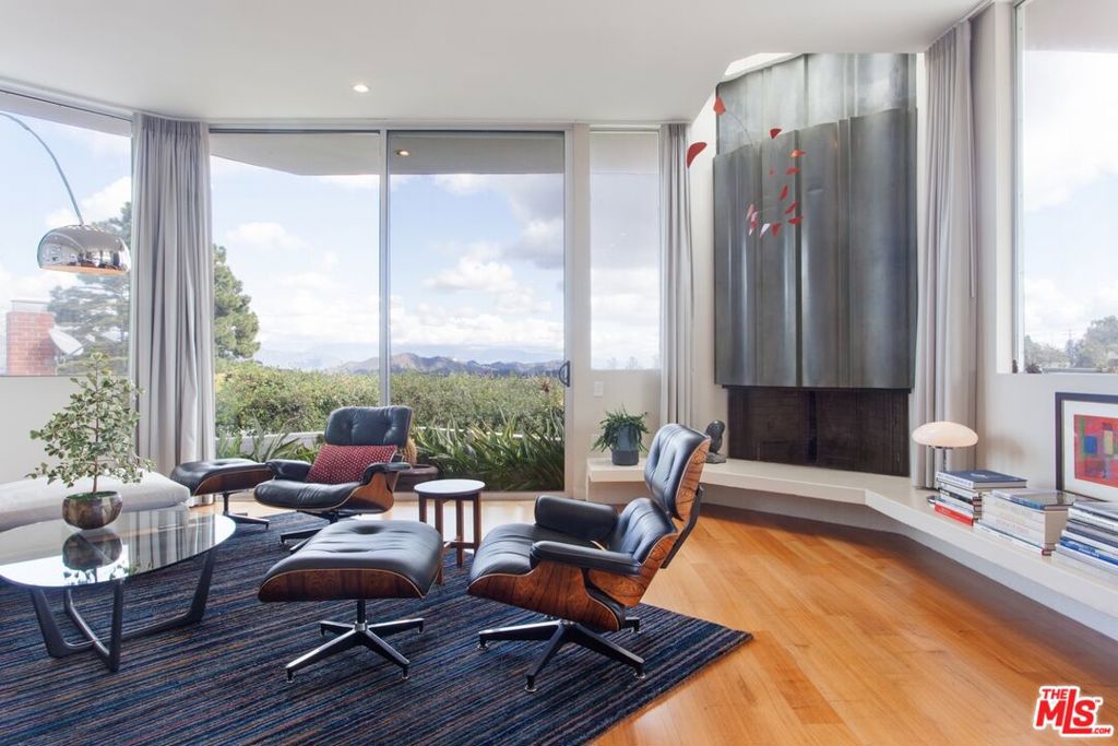 This fully furnished, sun drenched mid-century architectural home in Laurel Canyon is available for a seasonal lease beginning June 1. Originally designed by Kenneth Lind AIA, the house takes advantage of natural light and stunning views of the Hollywood sign and the San Gabriel Mountains beyond. A generous great room for relaxing and dining is adjacent to the cook's kitchen, featuring a breakfast island, high end appliances, and access to outdoor space. The den is furnished with seating for TV watching, a piano and a custom desk. The en-suite primary bedroom includes a California king bed, walk-in closet and laundry, while the 2nd bedroom is currently used as an office with a queen size sofa bed and second bathroom across the hall. A spacious terrace and deck area are ideal for al-fresco dining, lounging, and enjoying the sunshine. Use of the garage is not included, but street parking is available in front of the house. The property is located on a cul-de-sac street 15 minutes from the Sunset Strip, and offers easy access to West Hollywood, Beverly Hills and the San Fernando Valley.