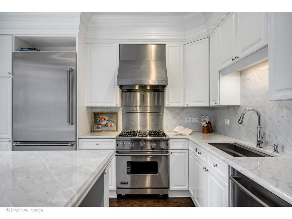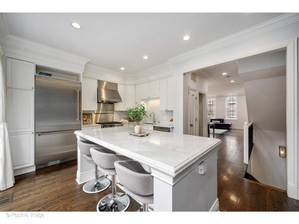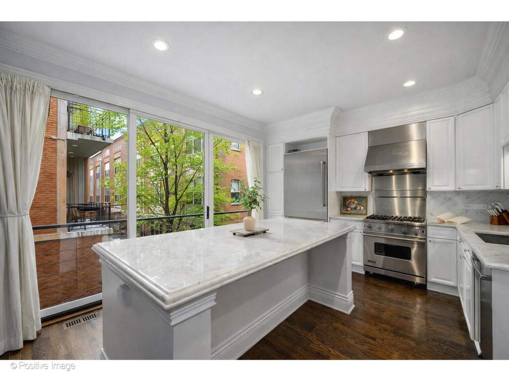 Quietly nestled within a private, gated community, this sophisticated townhome enjoys all the benefits of both serene neighborhood living as well as all the conveniences Chicago's vibrant West Loop has to offer. Recently renovated, this home is in pristine, ready-to-move-in condition and offers 4 bedrooms, 3.1 baths, an attached, heated, 2-car garage, and a private roof deck. Spectacular finishes include custom crown molding, baseboards and trim, solid core doors with Baldwin hardware, iron and wood railing, LED downlights and decorative lighting, a custom wool carpet runner, and refinished hardwood flooring. A front foyer finished with honed granite welcomes you home. The ground level enjoys heated flooring in three zones and features a bedroom/office with an ensuite full bath with new bathroom fixtures and a heated and fully insulated 2-car garage. Upstairs on the main level, an open floor plan allows the rooms to flow together seamlessly, creating the ideal space to entertain. Large windows usher in abundant natural light in the spacious living room, complete with a gas fireplace with honed granite slab. The living room opens into a large formal dining room. The chef's kitchen is a true showstopper. A wall of floor-to-ceiling windows with sliding doors creates a sun-filled space with white cabinetry and polished Carrara Marble counters with custom double thick edge detail on a center island with breakfast bar. A Kohler Prolific Workstation kitchen sink and top-of-the-line appliances including a 5 series Viking gas range and oven, Thermador refrigerator, and Bosch dishwasher complete this special kitchen. A well-appointed powder room is conveniently located just off the kitchen. Enjoy the rare luxury of a primary suite with its own dedicated floor. This tranquil and private space has a graciously sized bedroom with a built-in headboard for king size bed, wall to wall black out window treatments, a separate sitting room with gas fireplace outfitted in honed granite slab, and a professionally designed walk-in closet. The sumptuous ensuite bath offers Carrara Marble slab counter and bathtub surround, a jetted tub, a separate porcelain tiled shower with Carrara Marble tile floor and transition slab, and dual vanity. Sunny and bright, the top floor enjoys natural light from a skylight and houses two bedrooms, a full bath with Carrara Marble tile flooring and slab countertop, and a laundry room with side-by-side Maytag washer/dryer. Sliding glass doors open to the private deck - a serene space to relax, dine al fresco, or entertain outdoors. This West Loop home is ideally located within close proximity to the Fulton Market restaurant scene, shopping, gyms, Whole Foods, Mary Bartelme and Skinner parks, multiple bus and train lines, and easy expressway access. Skinner Elementary district + several daycares and preschools within walking distance. Welcome home!