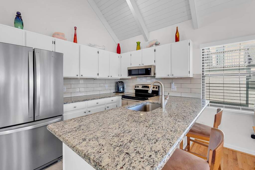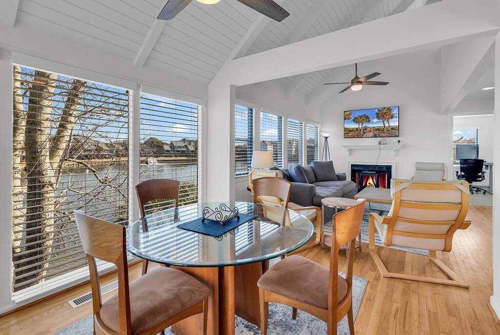 Welcome to coastal living at its best in this beautifully updated 3-bedroom, 3-bath homed located inside the highly desirable Litchfield By the Sea community. Designed to capture bother comfort and scenery, this home offers multiple outdoor living spaces and tranquil water views. Enjoy peaceful mornings overlooking Osprey Lake, where abundant birdlife creates a true Lowcountry backdrop, and take in ocean views from the top deck. The home features an enclosed screened porch on the bottom level and an enclosed sunroom upstairs, providing year-round spaces to relax and unwind. A screened porch off the primary bedroom adds another private retreat. Inside, the home shines with a remodeled kitchen, remodeled bathrooms with all new fixtures and ceiling fans throughout this villa and new flooring upstairs and in bedrooms. A thoughtful layout ideal for full-time living or a beach getaway. Additional highlights include ample storage on ground level, perfect for a golf cart, beach chairs and grills. With easy access to the beach and community pool just steps away, this home delivers the best of Litchfield living-natural beauty, coastal convenience, great restaurants close by, and relaxed elegance.