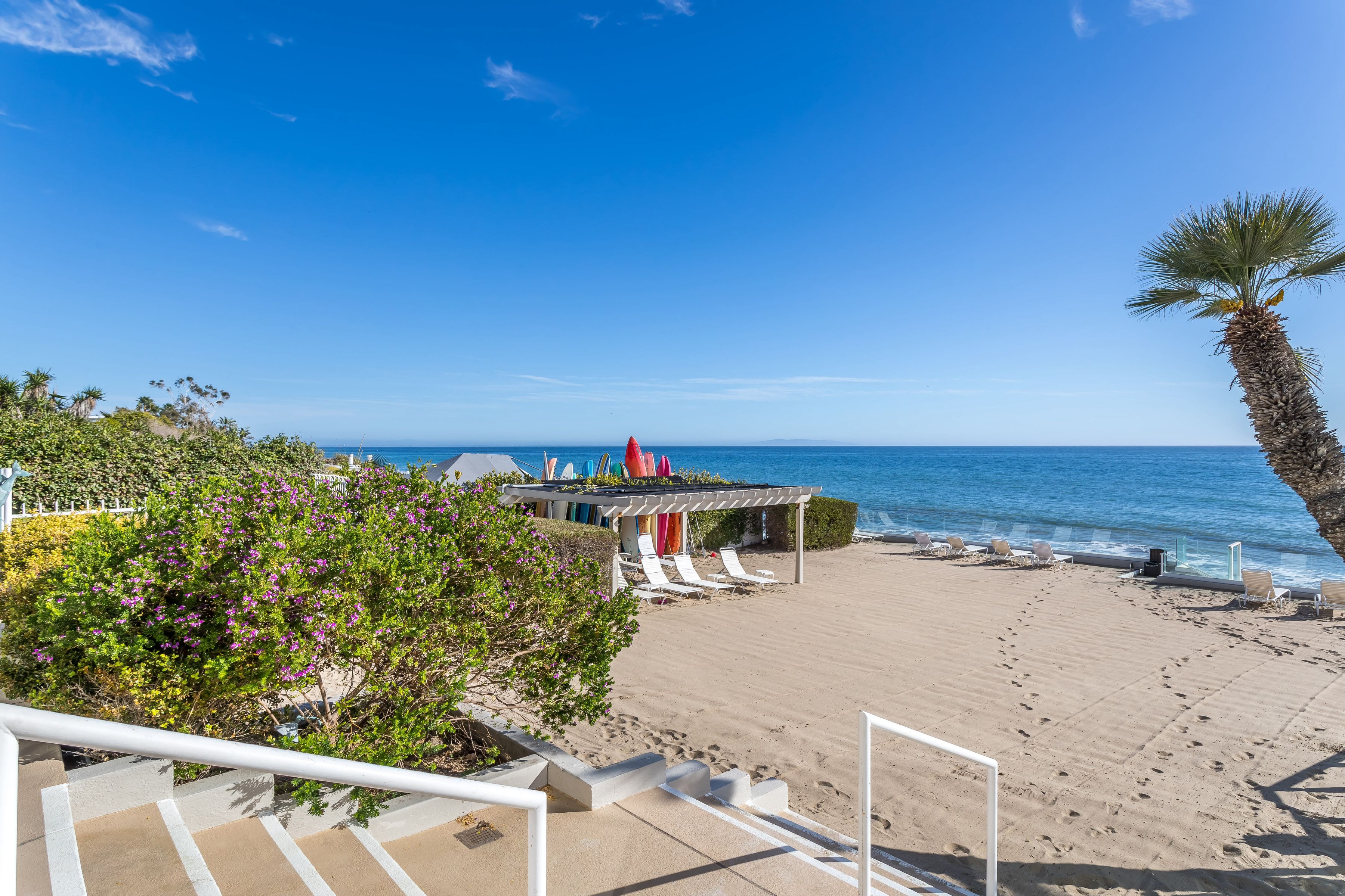Experience the best of Malibu beachfront living at the exclusive Malibu Outrigger, located directly on iconic Carbon Beach. This beautifully remodeled residence offers resort-style living with breathtaking ocean and whitewater views throughout. Designed with sleek modern finishes and an open, light-filled floor plan, this unit seamlessly blends indoor and outdoor coastal living. The expansive kitchen features abundant cabinetry and generous workspace, opening to the living area and private deck overlooking the pool, beach, and the Pacific Ocean. The spacious primary suite offers a spa-inspired bath with an open shower design and direct access to a sun-drenched patio. The perfect place to start your morning or unwind to the sound of the waves. Residents enjoy premier amenities including a sparkling oceanfront pool, spa, and an oversized beachfront patio with chaise lounges ideal for relaxing and taking in Malibu's unforgettable sunsets. Ideally located just minutes from Malibu's most sought-after destinations including Nobu, Soho House, and the iconic Malibu Pier, with easy access to scenic hiking trails, world-class surfing, and the vibrant Malibu lifestyle. A rare opportunity to enjoy true beachfront living on one of Malibu's most coveted stretches of sand.