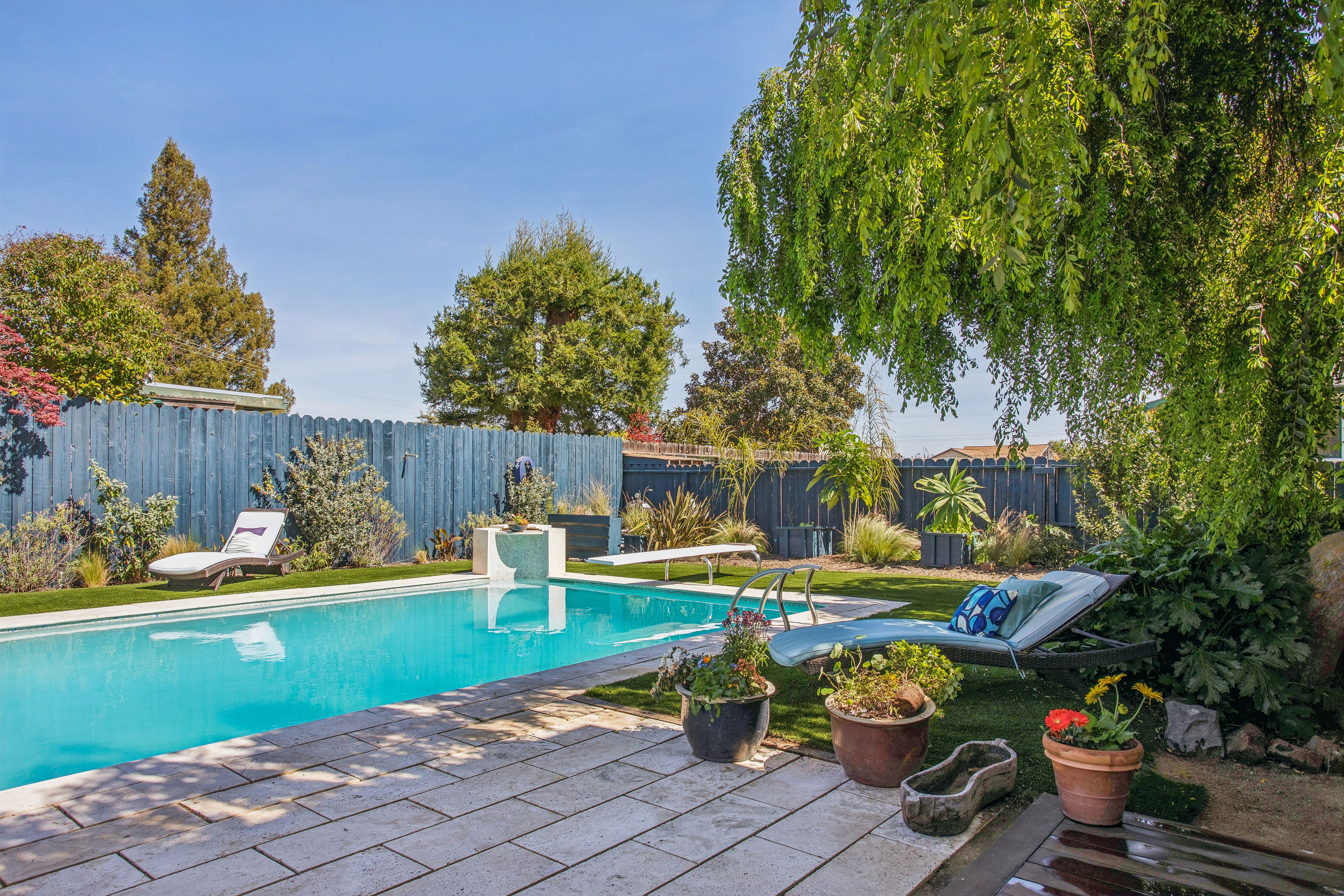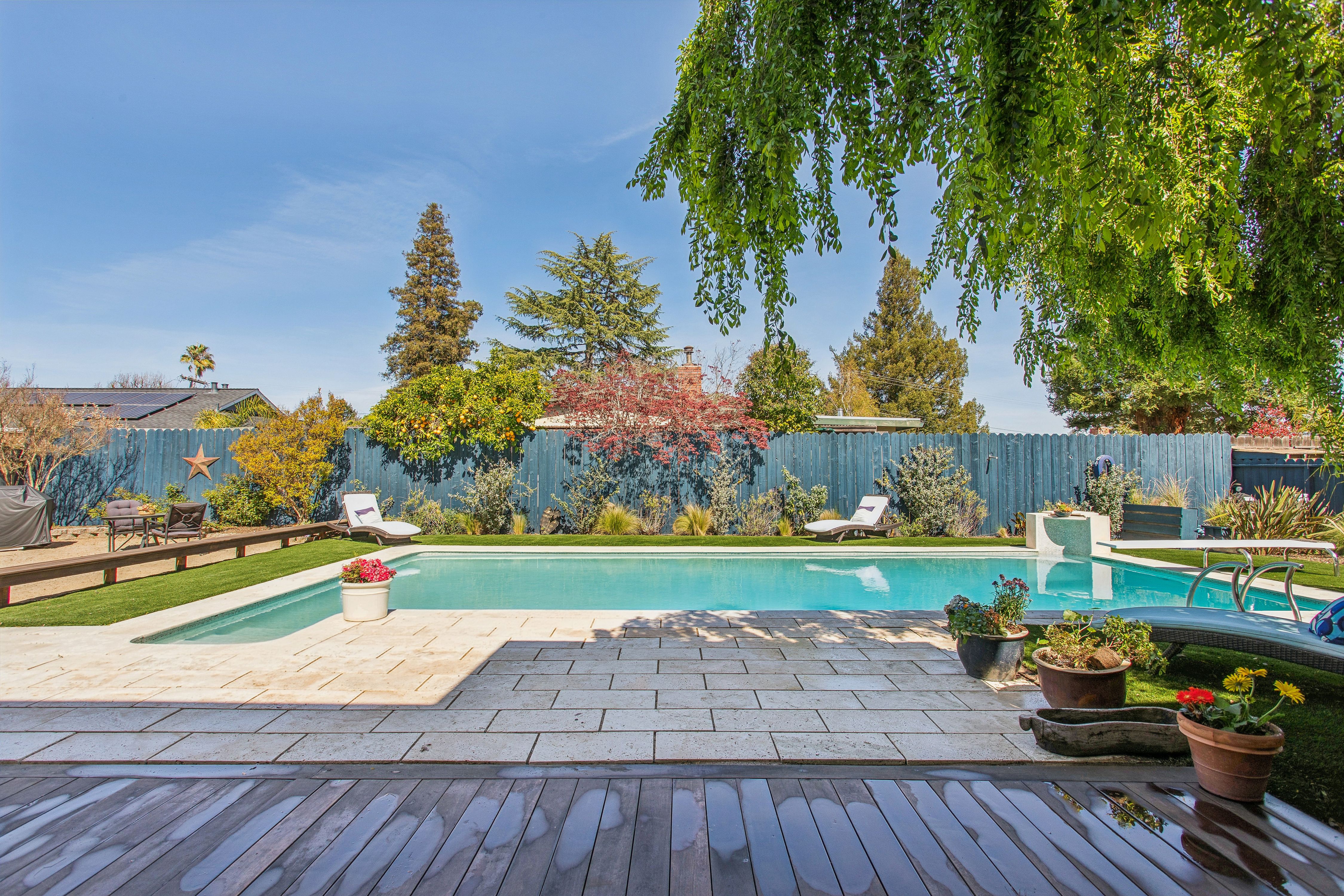 Beautifully remodeled home set back from the street on a lush, landscaped property designed for comfortable living and entertaining. This spacious residence offers four+ bedrooms and three full baths, including flexible living areas with a kitchen–family room combination and a dedicated craft room. The kitchen is the heart of the home with an impressive 6.8-foot x 5-foot center island, gas range, and abundant workspace.The grounds are a standout feature with lovely established gardens, including a thriving edible garden, and a wonderful pool creating a private outdoor retreat.Rare amenities include a 660 square foot workshop, ideal for contractors, auto enthusiasts, hobbyists, creatives, or home projects, plus two additional sheds—one for garden supplies and one for tools. Ample off-street parking for up to 10 vehicles provides exceptional flexibility for guests, recreational vehicles, or multi-car households. A versatile property offering space to garden, entertain, create, and relax—perfect for a wide range of lifestyles.