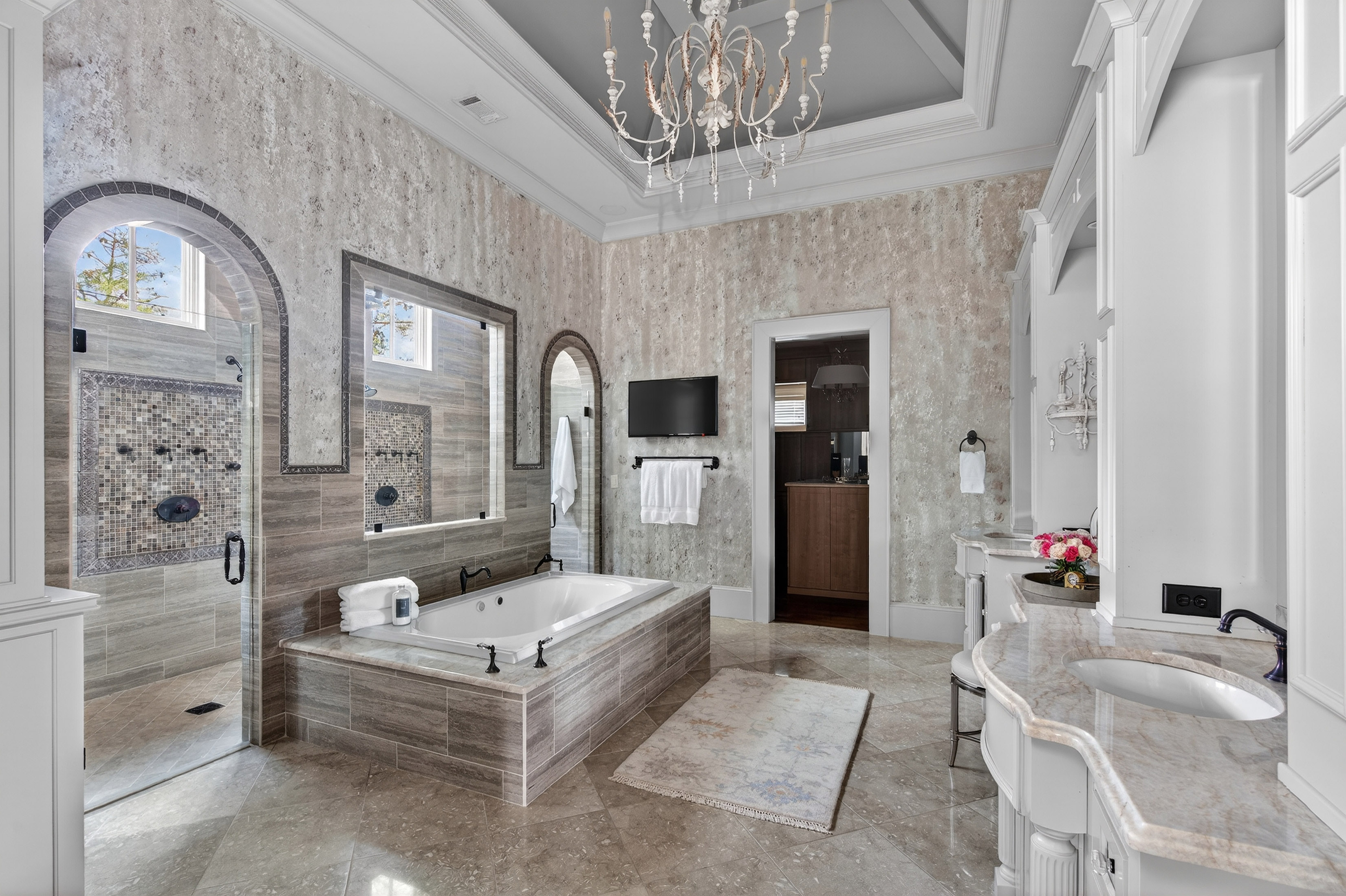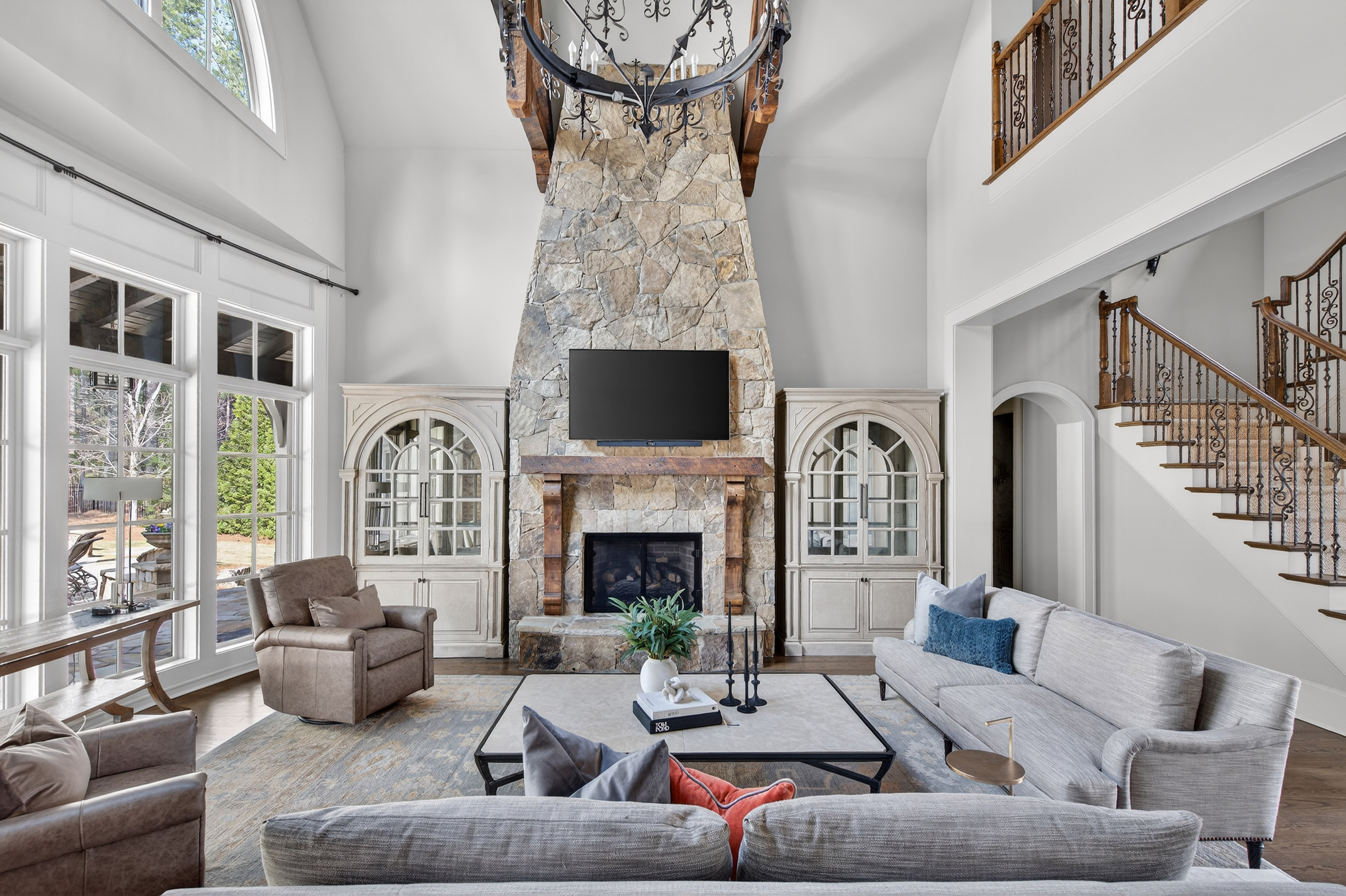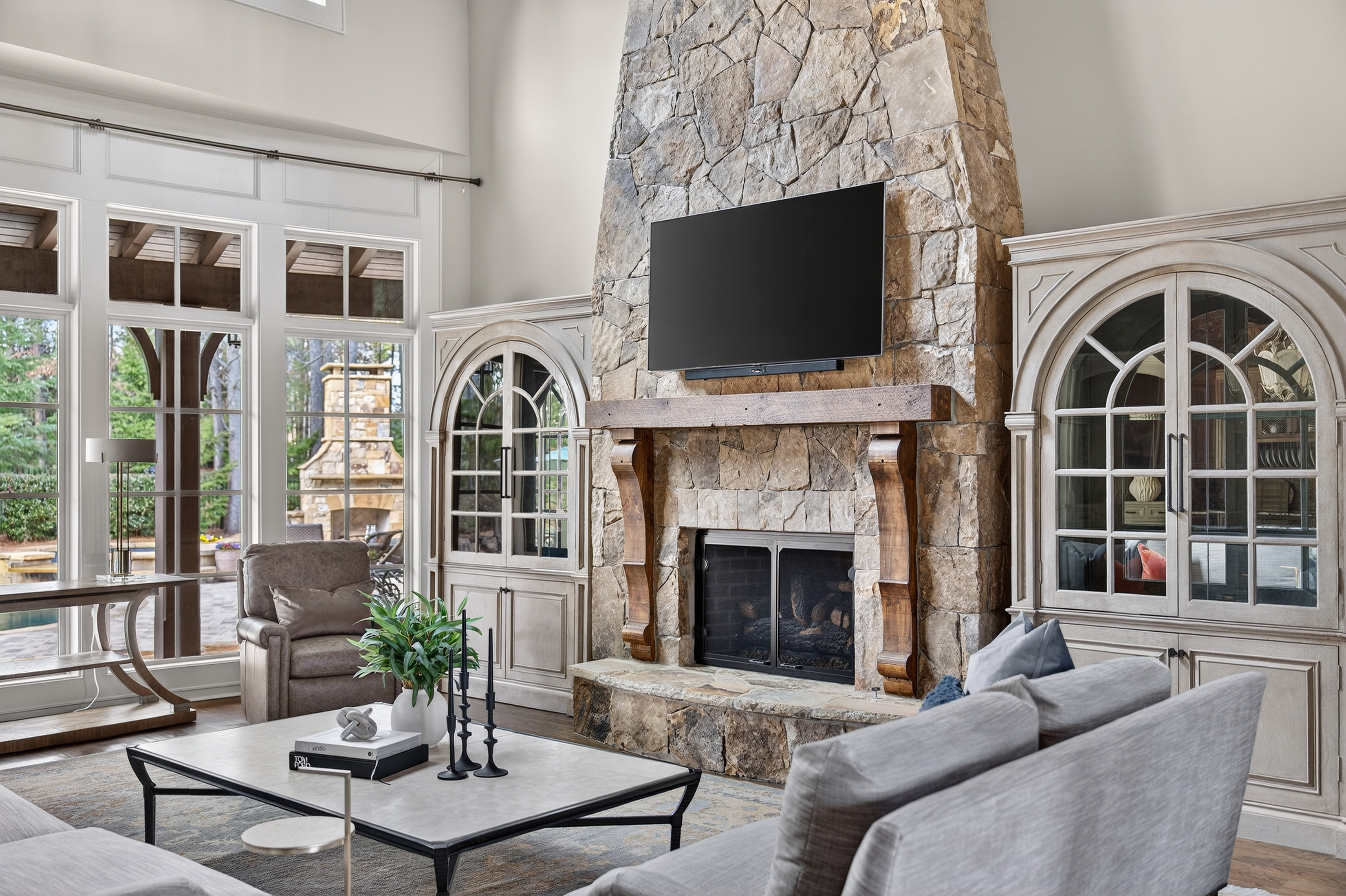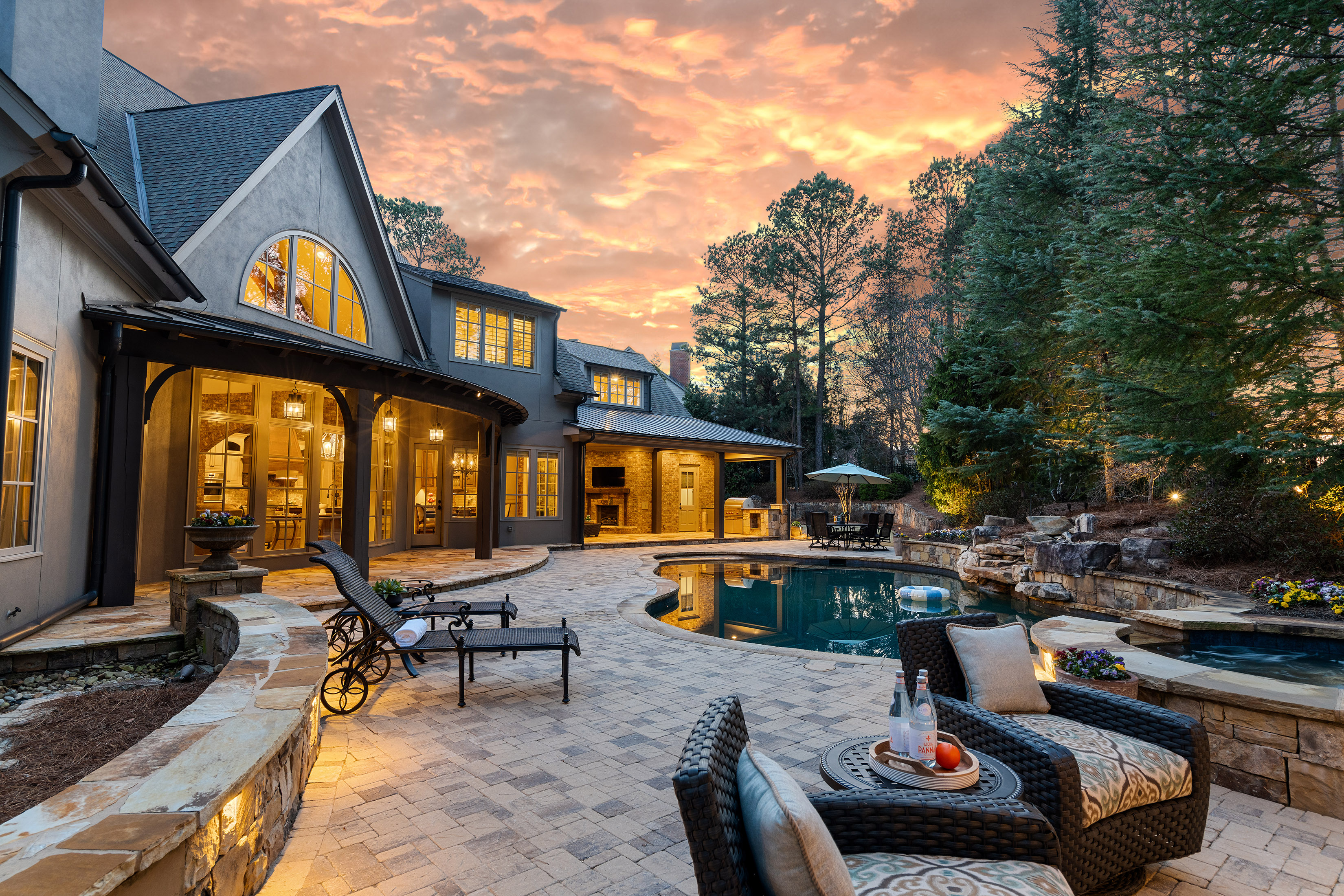 Live Tranquil — Experience the art of living at one of The River Club’s premier retreats—an extraordinary estate harmonizing timeless design, comfort, and discretion. Intentionally sited on the sixth tee and surrounded by lush landscape, this residence offers sweeping views and unparalleled privacy, inviting countless days of leisure by the resort-style pool. Inside, sophistication meets serenity. The fireside primary suite, located on the main level, features a striking compass window framing direct pool views and automated blackout shades for seamless comfort. The spa-inspired primary bath features heated floors, custom vanities, jetted tub, pass-through shower with rain and body sprays, dual shower heads, and a luxurious dressing lounge with custom cabinetry, mirrored storage, and central accessories island. At the heart of the home, the chef’s kitchen impresses with a six-burner Wolf range, integrated Sub-Zero refrigeration, custom crafted hood, post-tongue and groove ceiling, soft-close cabinetry, and panoramic views of the living and outdoor spaces. Entertain with ease from the adjacent service bar, complete with wine captain, ice maker, and abundant stemware storage. Your everyday entry reveals thoughtful design touches: custom locker storage, a main-level laundry, informal office, and one of two main floor half baths. Upstairs, four spacious ensuites with custom closets and continued hardwood flooring provide comfort and privacy—along with a secondary laundry for ultimate convenience. The terrace level expands the lifestyle possibilities with media and games room, home fitness center, guest suite, and full-service lounge with integrated appliances and wine cellar. There’s even room to expand for a future golf simulator or wellness studio. Three additional storage rooms, a whole-home generator, water purification system and security ensure effortless peace of mind. Designed for those who appreciate both luxury and function, this home embodies the finest River Club living—where every detail is intentional and every moment feels like a luxury retreat.