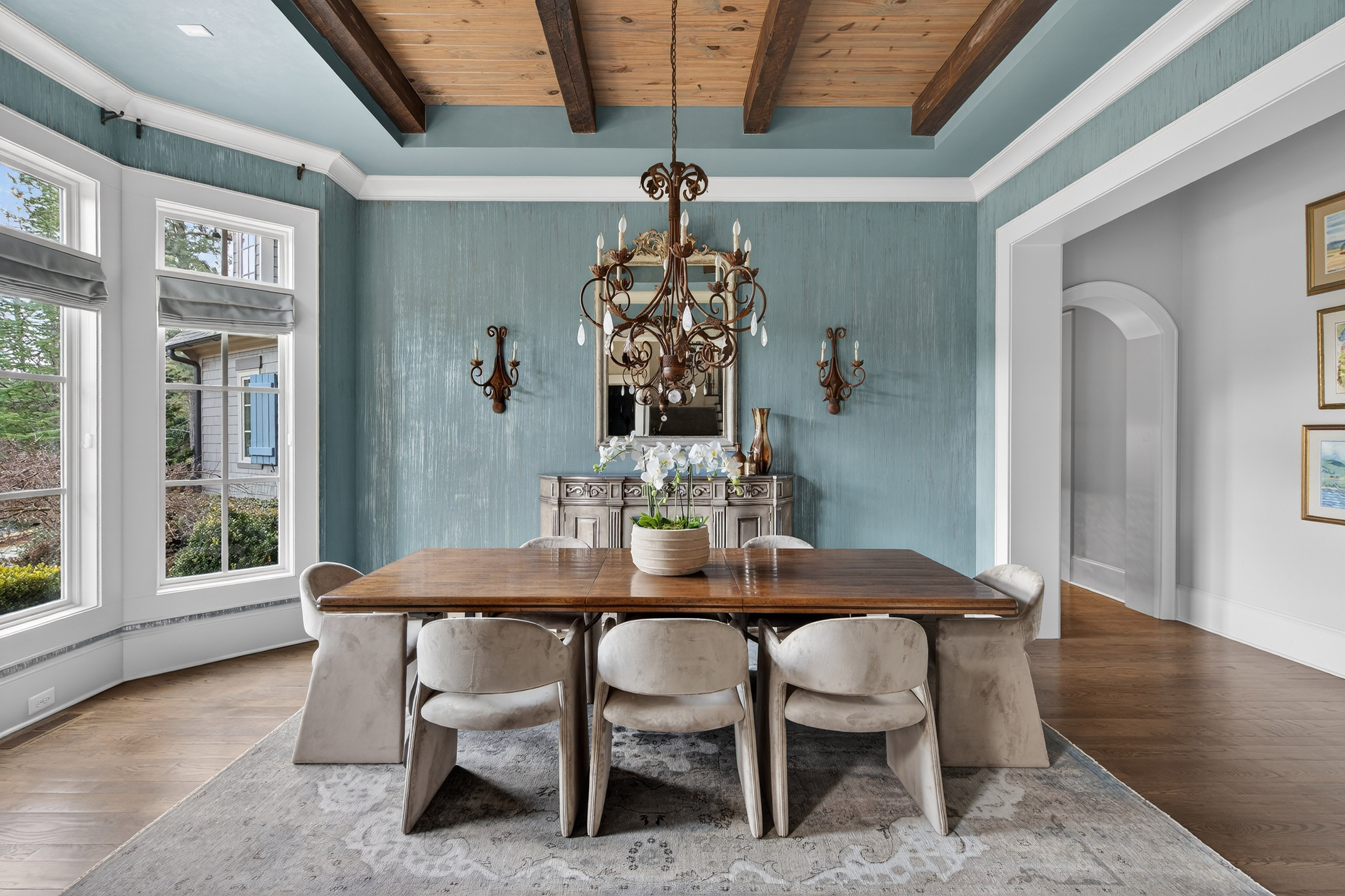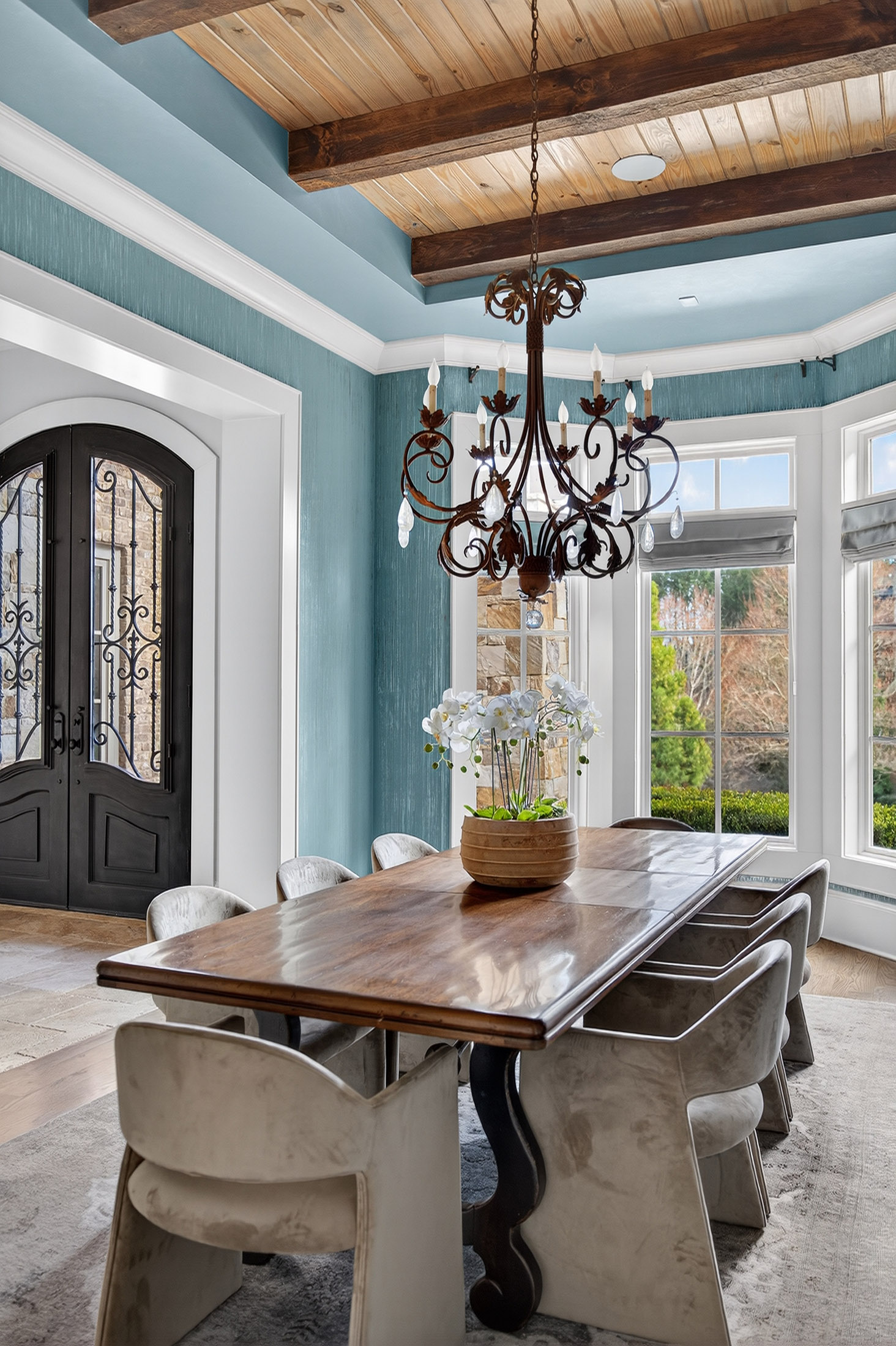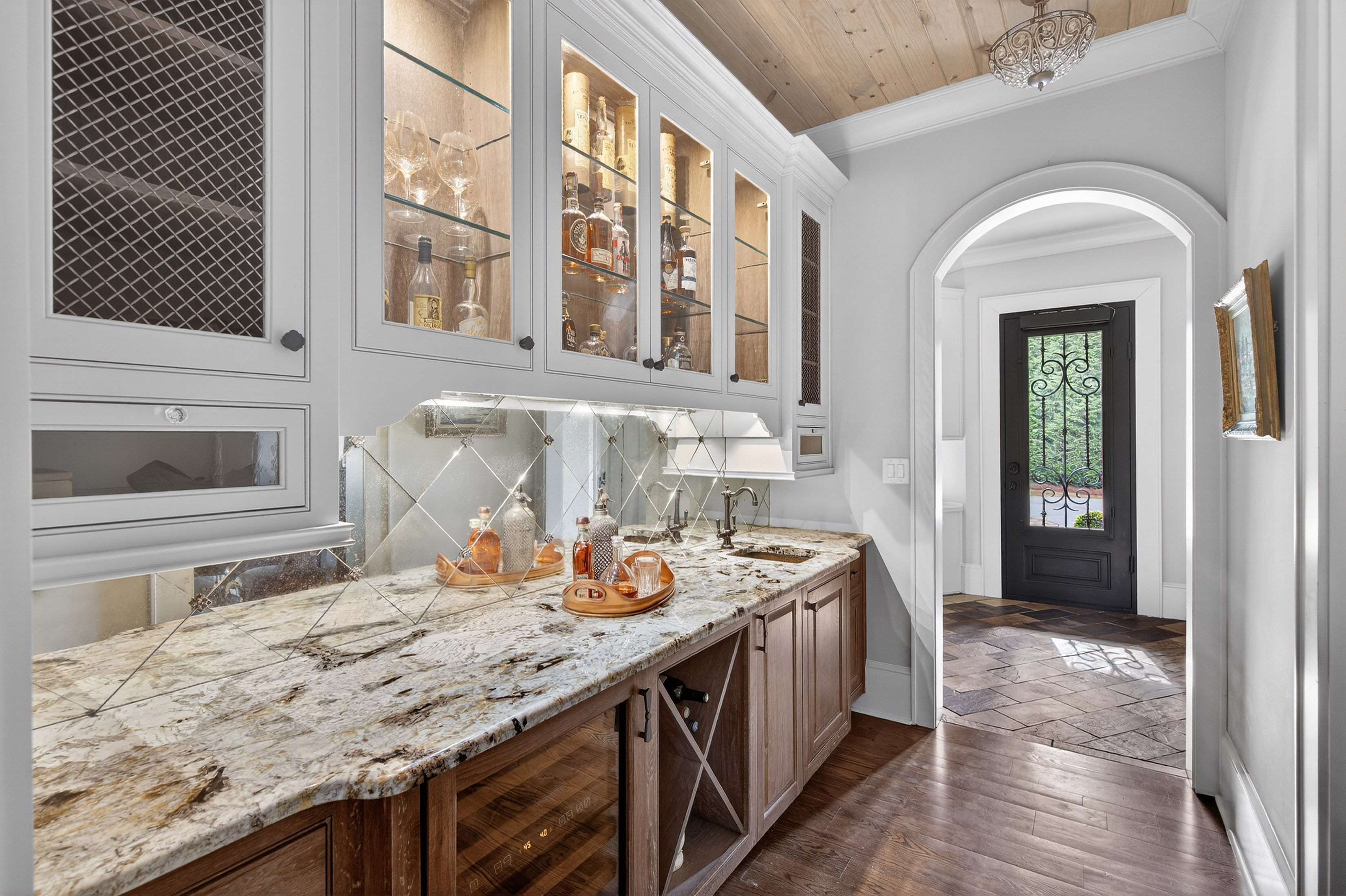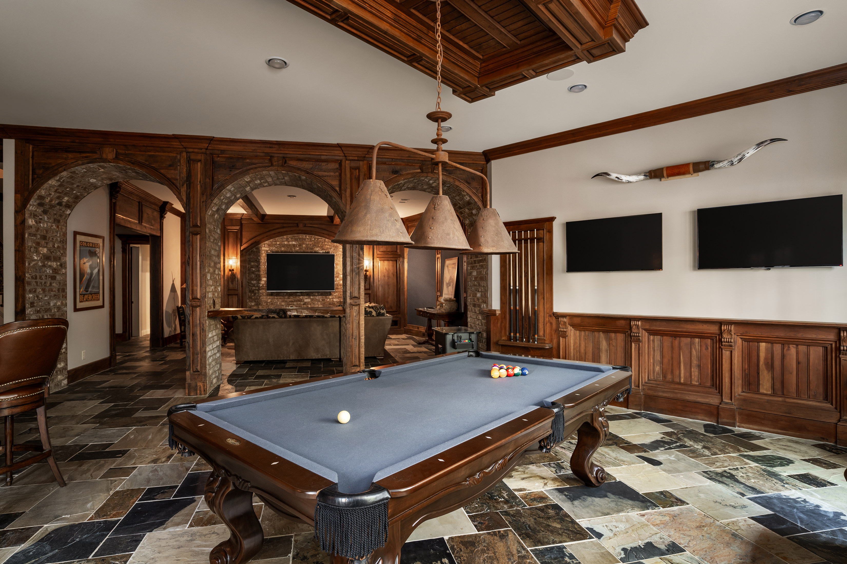 Live Tranquil — Experience the art of living at one of The River Club’s premier retreats—an extraordinary estate harmonizing timeless design, comfort, and discretion. Intentionally sited on the sixth tee and surrounded by lush landscape, this residence offers sweeping views and unparalleled privacy, inviting countless days of leisure by the resort-style pool. Inside, sophistication meets serenity. The fireside primary suite, located on the main level, features a striking compass window framing direct pool views and automated blackout shades for seamless comfort. The spa-inspired primary bath features heated floors, custom vanities, jetted tub, pass-through shower with rain and body sprays, dual shower heads, and a luxurious dressing lounge with custom cabinetry, mirrored storage, and central accessories island. At the heart of the home, the chef’s kitchen impresses with a six-burner Wolf range, integrated Sub-Zero refrigeration, custom crafted hood, post-tongue and groove ceiling, soft-close cabinetry, and panoramic views of the living and outdoor spaces. Entertain with ease from the adjacent service bar, complete with wine captain, ice maker, and abundant stemware storage. Your everyday entry reveals thoughtful design touches: custom locker storage, a main-level laundry, informal office, and one of two main floor half baths. Upstairs, four spacious ensuites with custom closets and continued hardwood flooring provide comfort and privacy—along with a secondary laundry for ultimate convenience. The terrace level expands the lifestyle possibilities with media and games room, home fitness center, guest suite, and full-service lounge with integrated appliances and wine cellar. There’s even room to expand for a future golf simulator or wellness studio. Three additional storage rooms, a whole-home generator, water purification system and security ensure effortless peace of mind. Designed for those who appreciate both luxury and function, this home embodies the finest River Club living—where every detail is intentional and every moment feels like a luxury retreat.