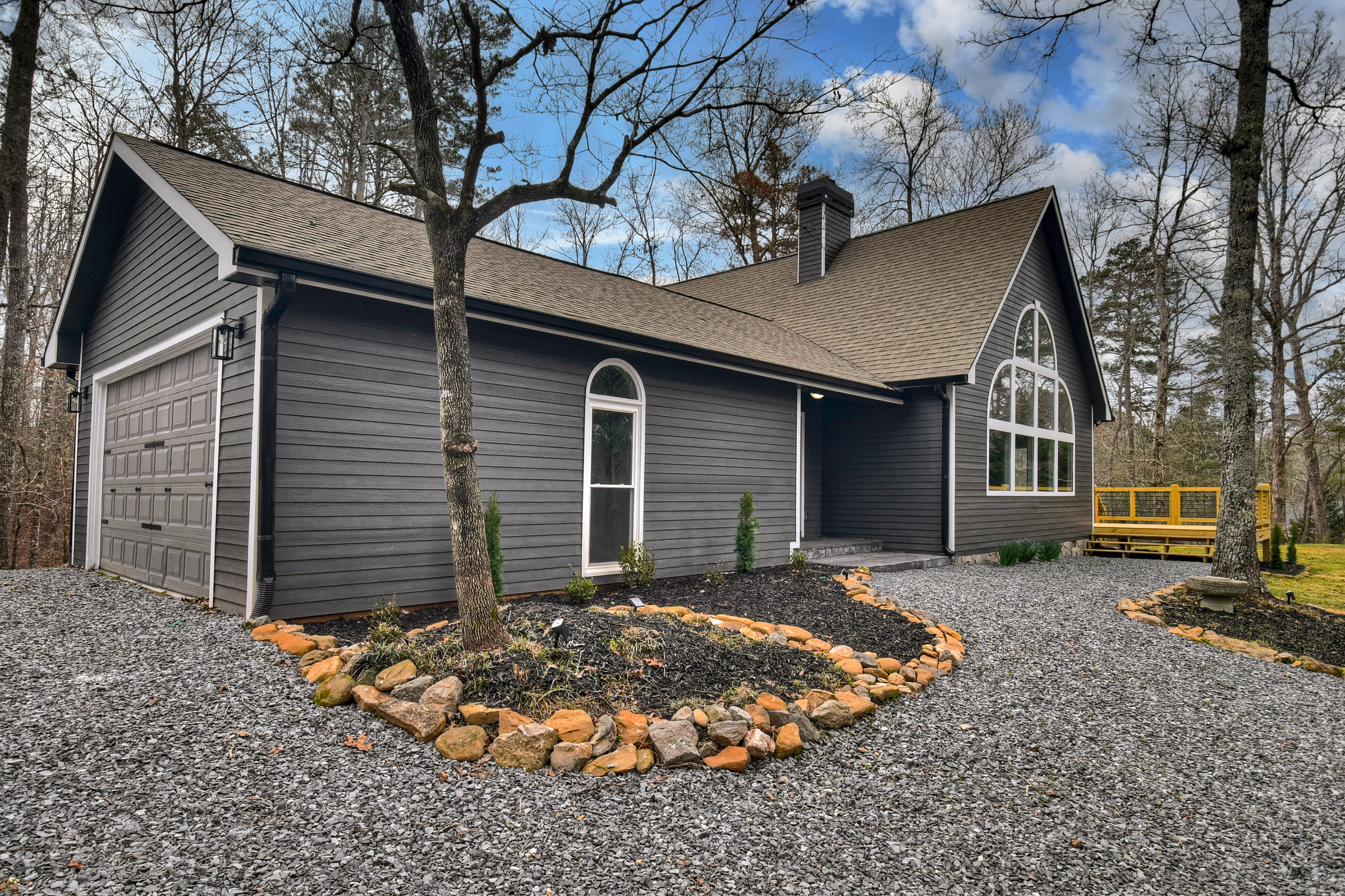 Welcome to 772 Heritage Way, a beautifully renovated Craftsman retreat nestled in the heart of the North Georgia Mountains. Located within the gated **High River community—yet not subject to the HOA unless a buyer chooses to opt in—**this 2 bedroom, 2.5 bath home offers the perfect blend of privacy, flexibility, and refined mountain living. The interior has been fully renovated from top to bottom and features soaring wood cathedral ceilings, a striking stone fireplace, and a gourmet kitchen that opens seamlessly into the main living space. The true highlight of the home is the dramatic chalet wall of windows, filling the interior with natural light and framing peaceful views of the surrounding treetop canopy while opening to a sprawling wraparound entertaining deck designed for indoor-outdoor mountain living. A spacious main-level bedroom suite provides convenience, while the upper-level suite offers additional privacy for guests. Complete with a powder bath on the main level and an attached two-car garage, this warm and inviting mountain home is ideal as a full-time residence, weekend retreat, or investment property.