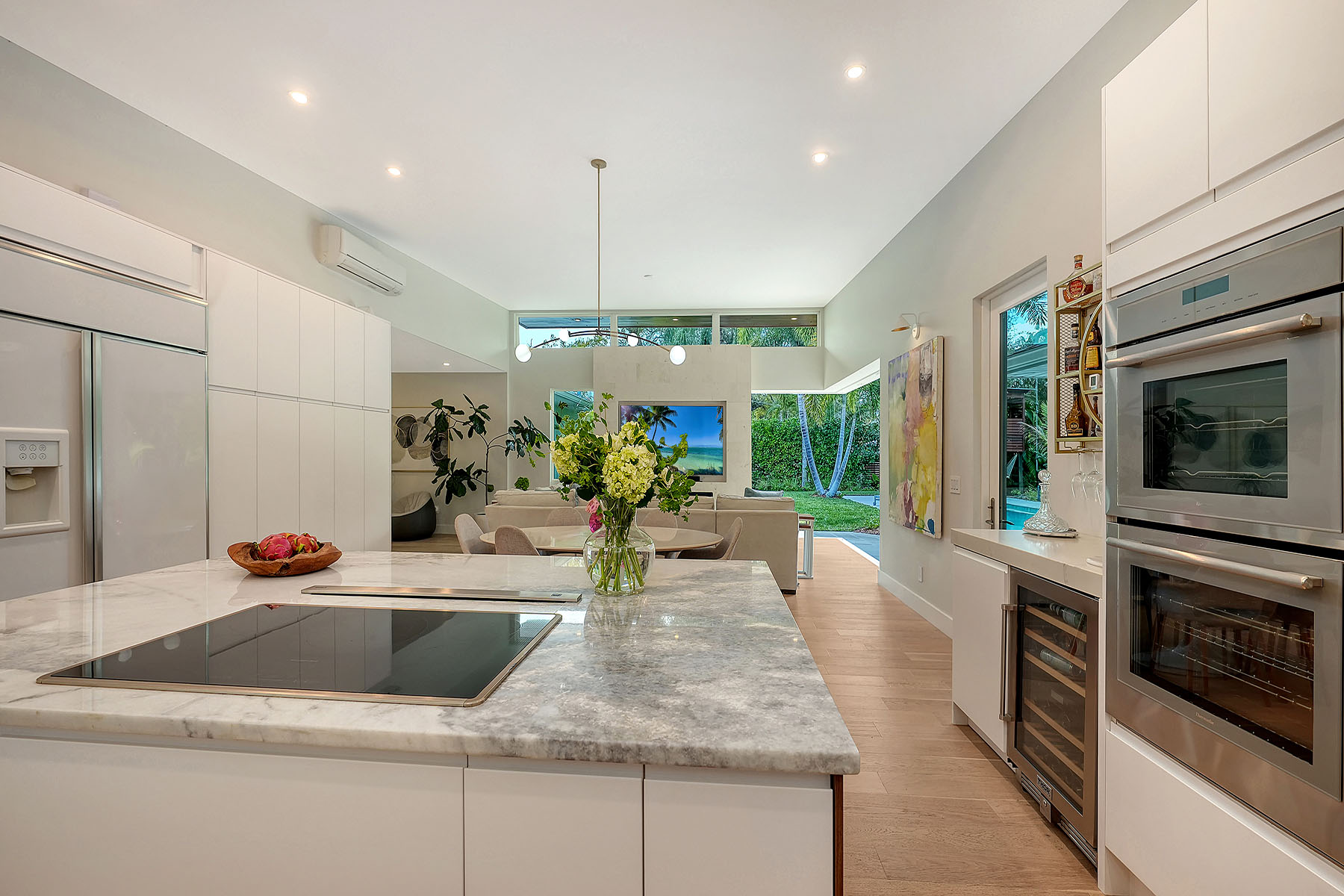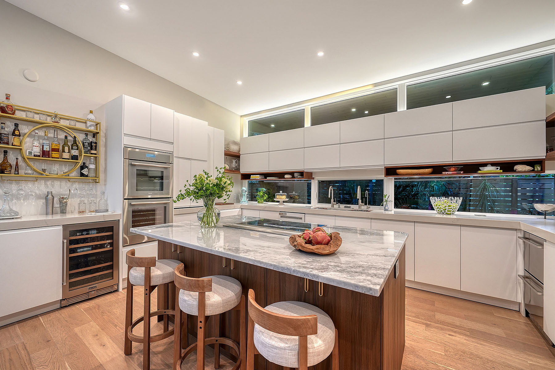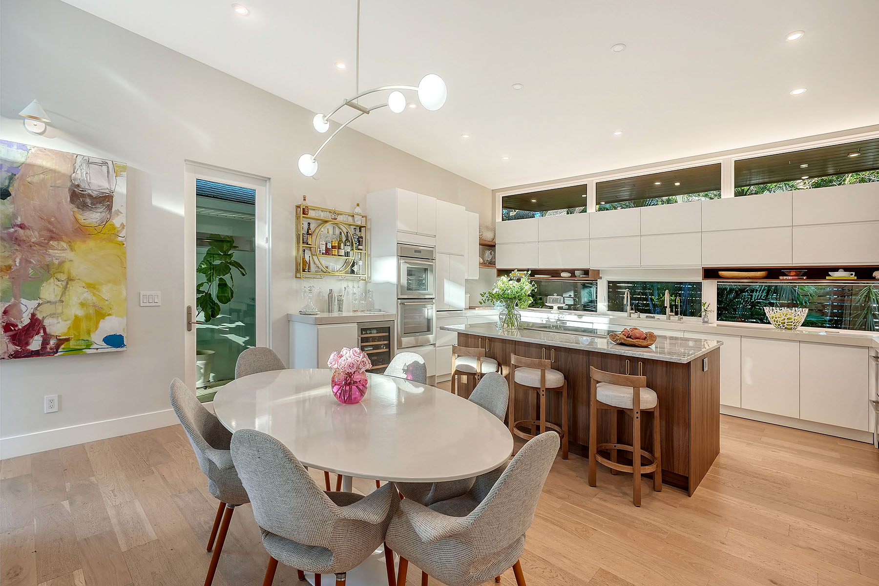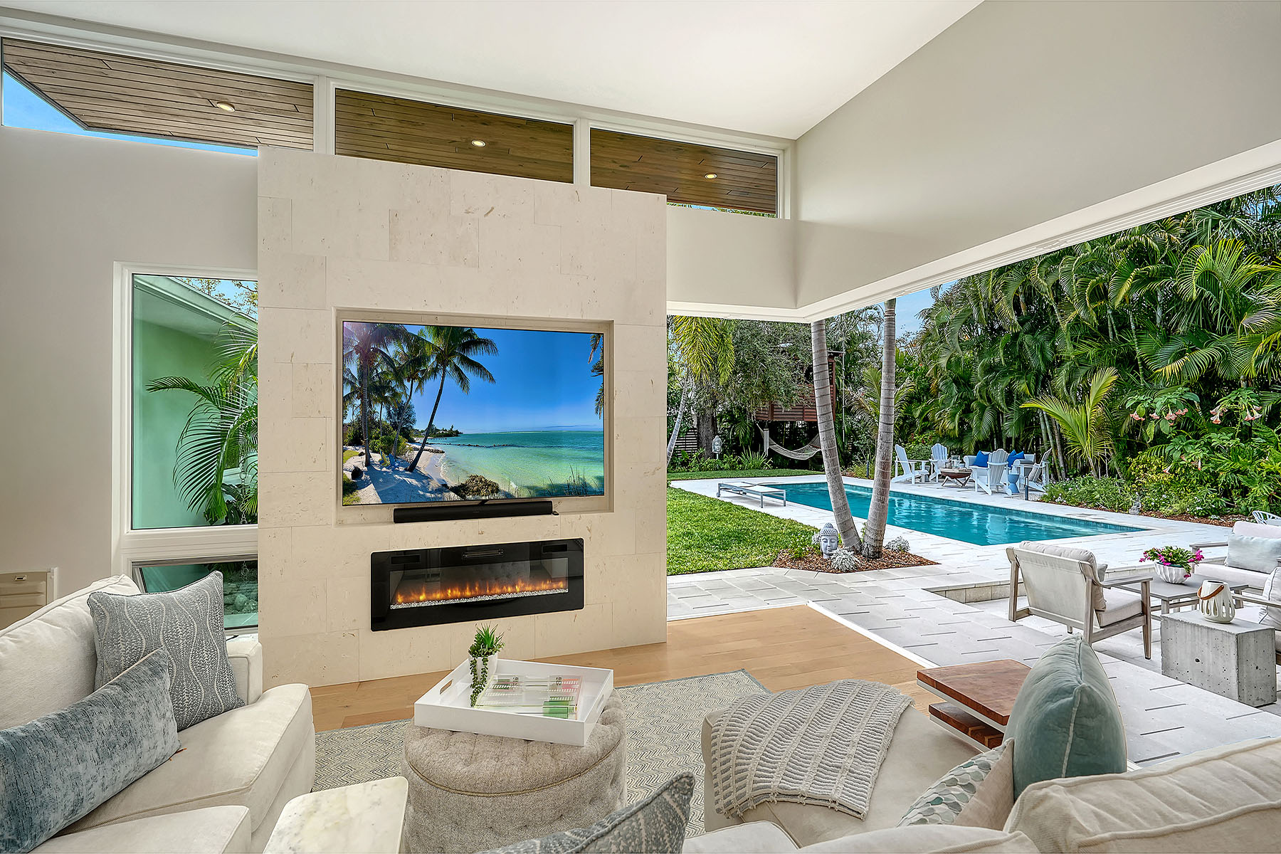 If you've been searching for a Sarasota West of Trail oasis, quiet, private, accessible and beautifully updated, this McClellan Park residence brings together the features discerning West of Trail buyers value most, a large .34-acre lot, a fully renovated home with a 2024 addition, a detached guest house, a heated saltwater pool and energy independence, all on a private dead-end street minutes from the best of Sarasota. Originally built with timeless character, this in-city sanctuary has undergone a comprehensive back-to-studs renovation and is up to Florida building code, with an official effective build date of 2013. A classic foundation, refined with modern upgrades and standards. The main home spans 3,100 square feet with three bedrooms and three baths, fully customized with all details valued by today's buyers. Bonus rooms include an office/den, plus a sitting room in the primary suite. The striking 2024 addition, designed by Jimmy Thornton, features an open-concept great room, dining and kitchen with zero-corner, fully pocketing sliding glass doors, a dramatic architectural detail that opens the living space completely to the pool and outdoor areas. The kitchen is a showpiece. It features high ceiling, super-organized European cabinetry with illuminated interiors, high-profile quartz and marble countertops, a glass window backsplash, and clerestory windows. Custom walnut open shelving adds artistic flair. Appliance garages, interior drawers, a workstation sink with two faucets and an oversize eat-in island add high-end functionality. The outdoors is incredibly lush and functional for an in-town location. Outdoor living rooms, fruit trees, trellises, native flowers and an expansive food garden, plus a treehouse for charm and fun. A heated saltwater pool anchors the backyard, while the detached guest house adds flexibility for recreation, home office, studio or guests.
