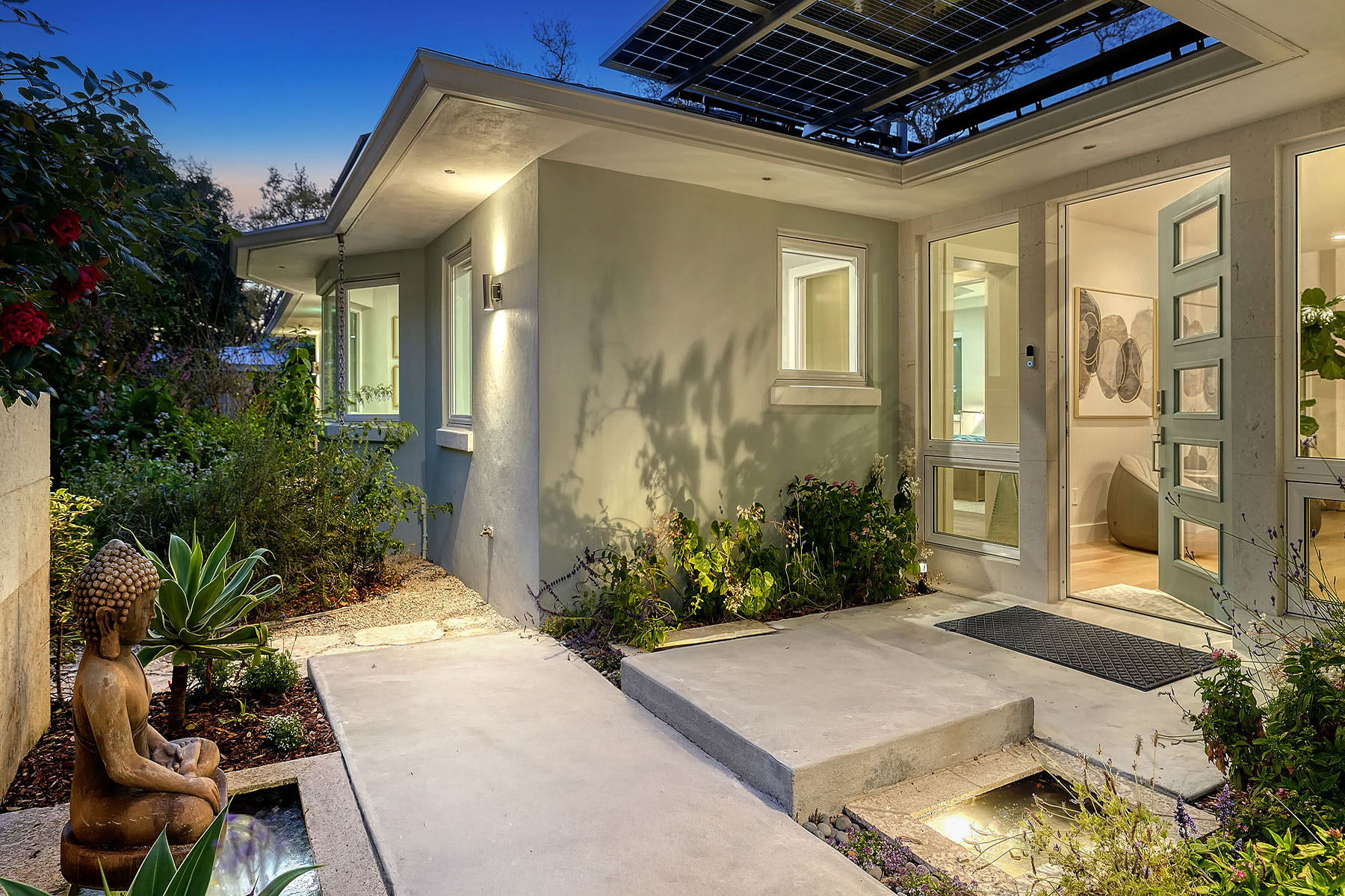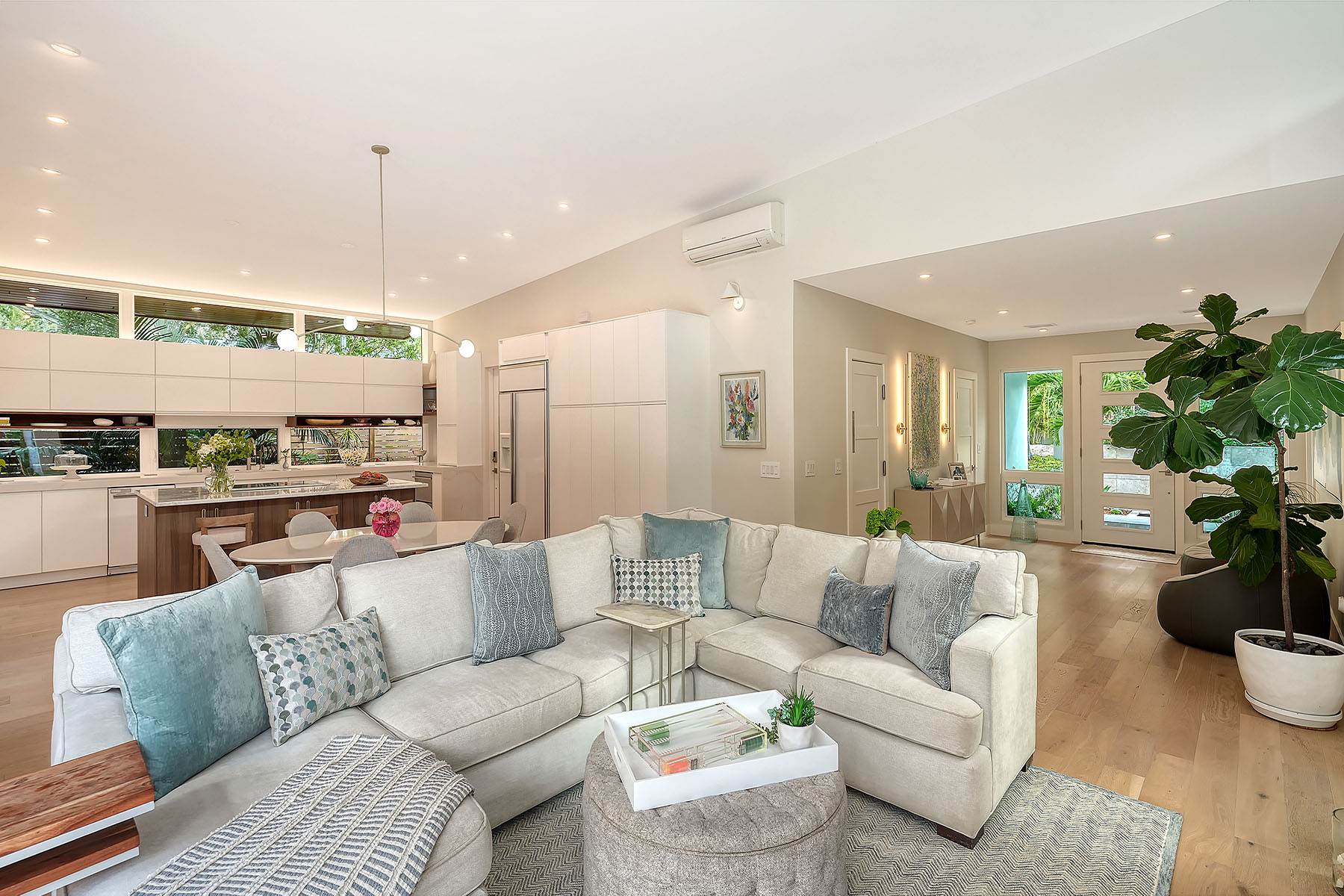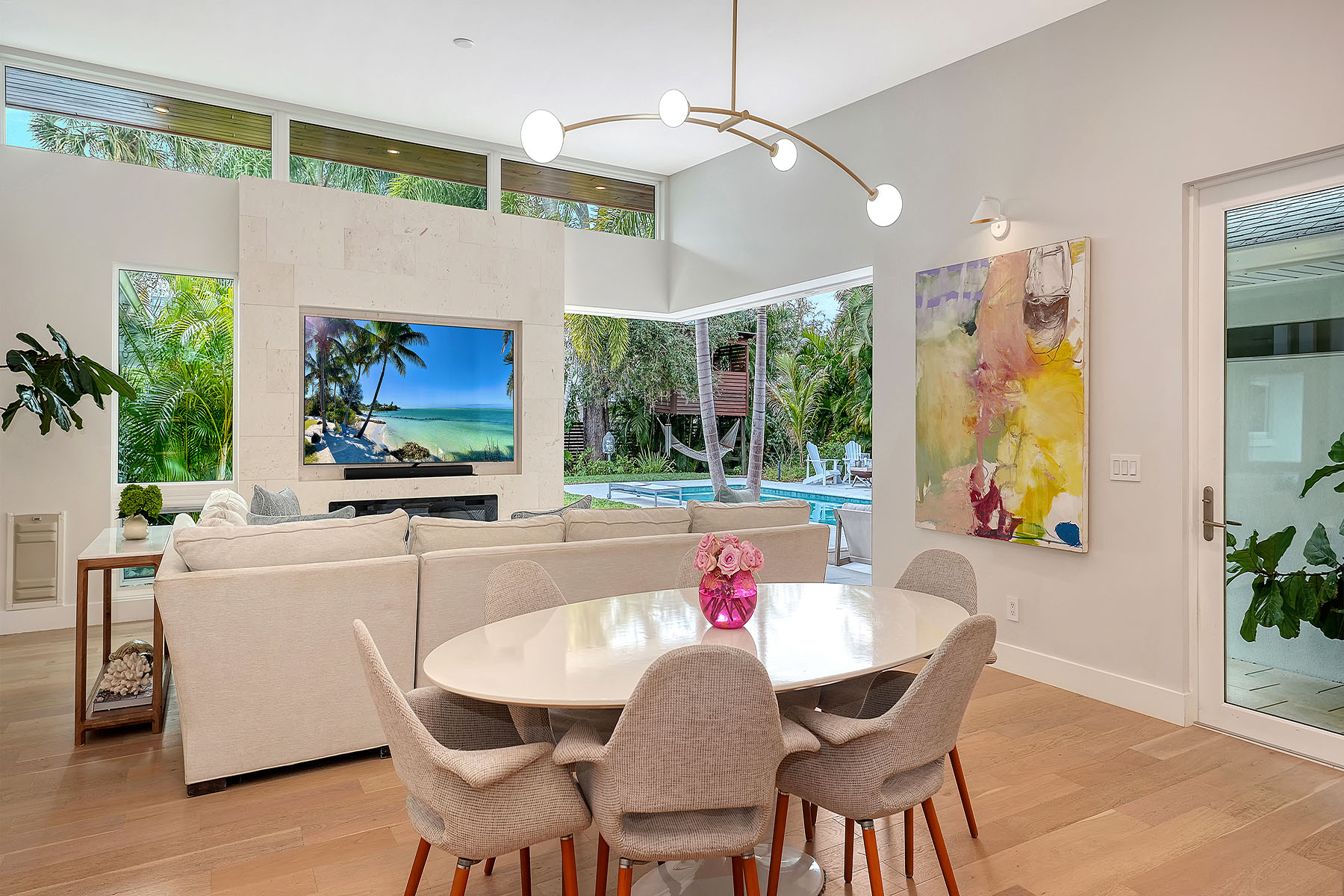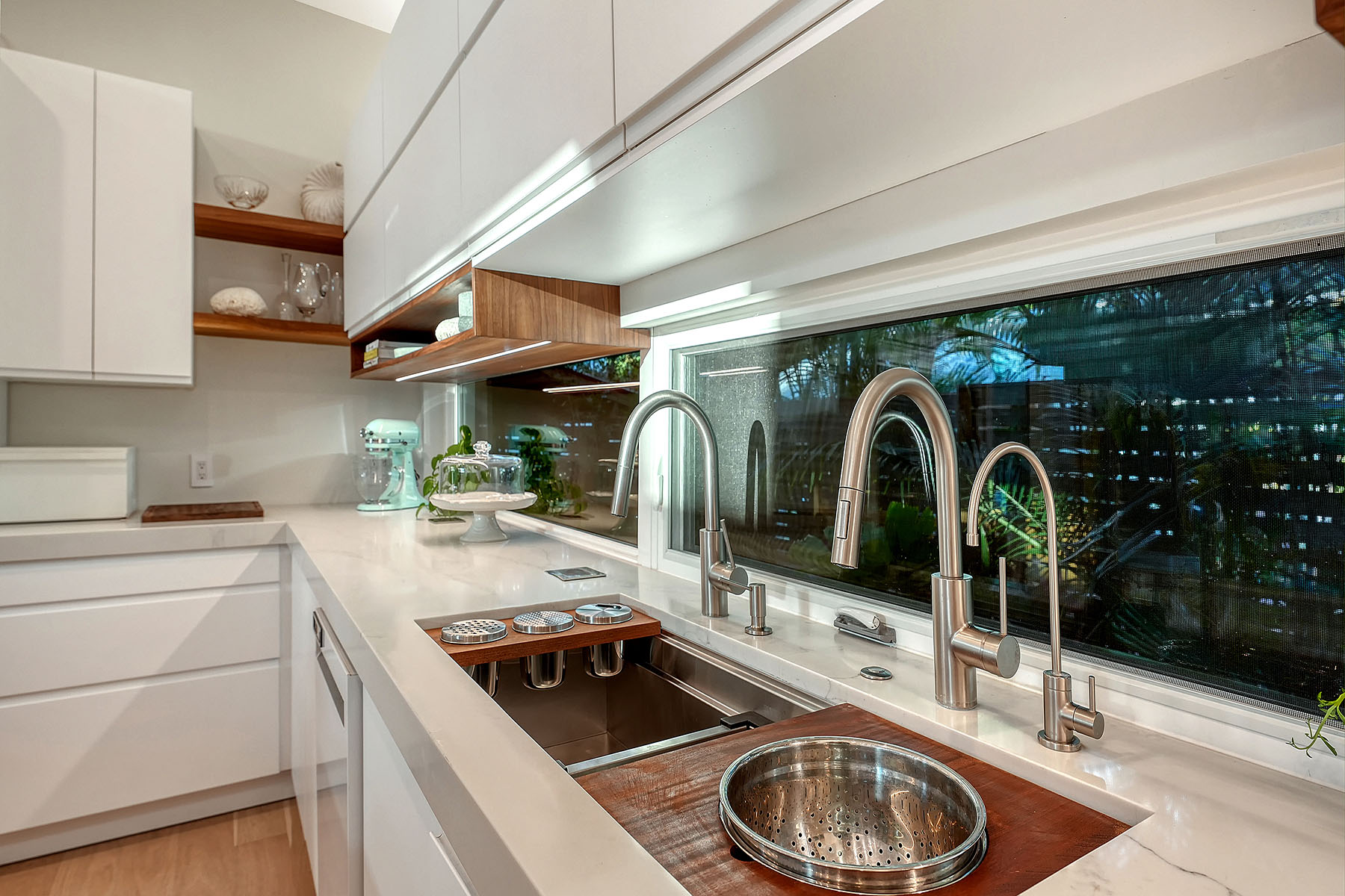 If you've been searching for a Sarasota West of Trail oasis, quiet, private, accessible and beautifully updated, this McClellan Park residence brings together the features discerning West of Trail buyers value most, a large .34-acre lot, a fully renovated home with a 2024 addition, a detached guest house, a heated saltwater pool and energy independence, all on a private dead-end street minutes from the best of Sarasota. Originally built with timeless character, this in-city sanctuary has undergone a comprehensive back-to-studs renovation and is up to Florida building code, with an official effective build date of 2013. A classic foundation, refined with modern upgrades and standards. The main home spans 3,100 square feet with three bedrooms and three baths, fully customized with all details valued by today's buyers. Bonus rooms include an office/den, plus a sitting room in the primary suite. The striking 2024 addition, designed by Jimmy Thornton, features an open-concept great room, dining and kitchen with zero-corner, fully pocketing sliding glass doors, a dramatic architectural detail that opens the living space completely to the pool and outdoor areas. The kitchen is a showpiece. It features high ceiling, super-organized European cabinetry with illuminated interiors, high-profile quartz and marble countertops, a glass window backsplash, and clerestory windows. Custom walnut open shelving adds artistic flair. Appliance garages, interior drawers, a workstation sink with two faucets and an oversize eat-in island add high-end functionality. The outdoors is incredibly lush and functional for an in-town location. Outdoor living rooms, fruit trees, trellises, native flowers and an expansive food garden, plus a treehouse for charm and fun. A heated saltwater pool anchors the backyard, while the detached guest house adds flexibility for recreation, home office, studio or guests.