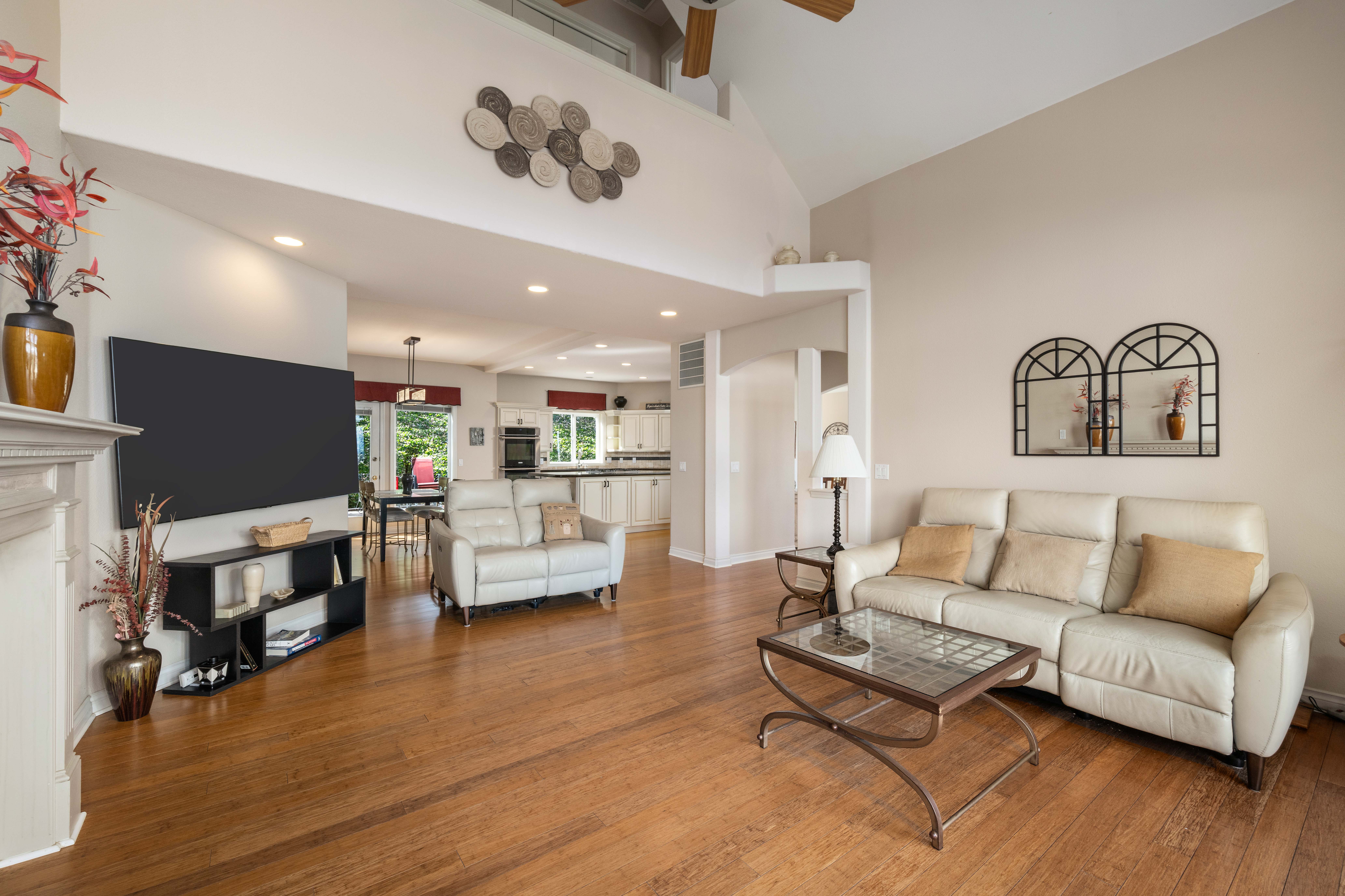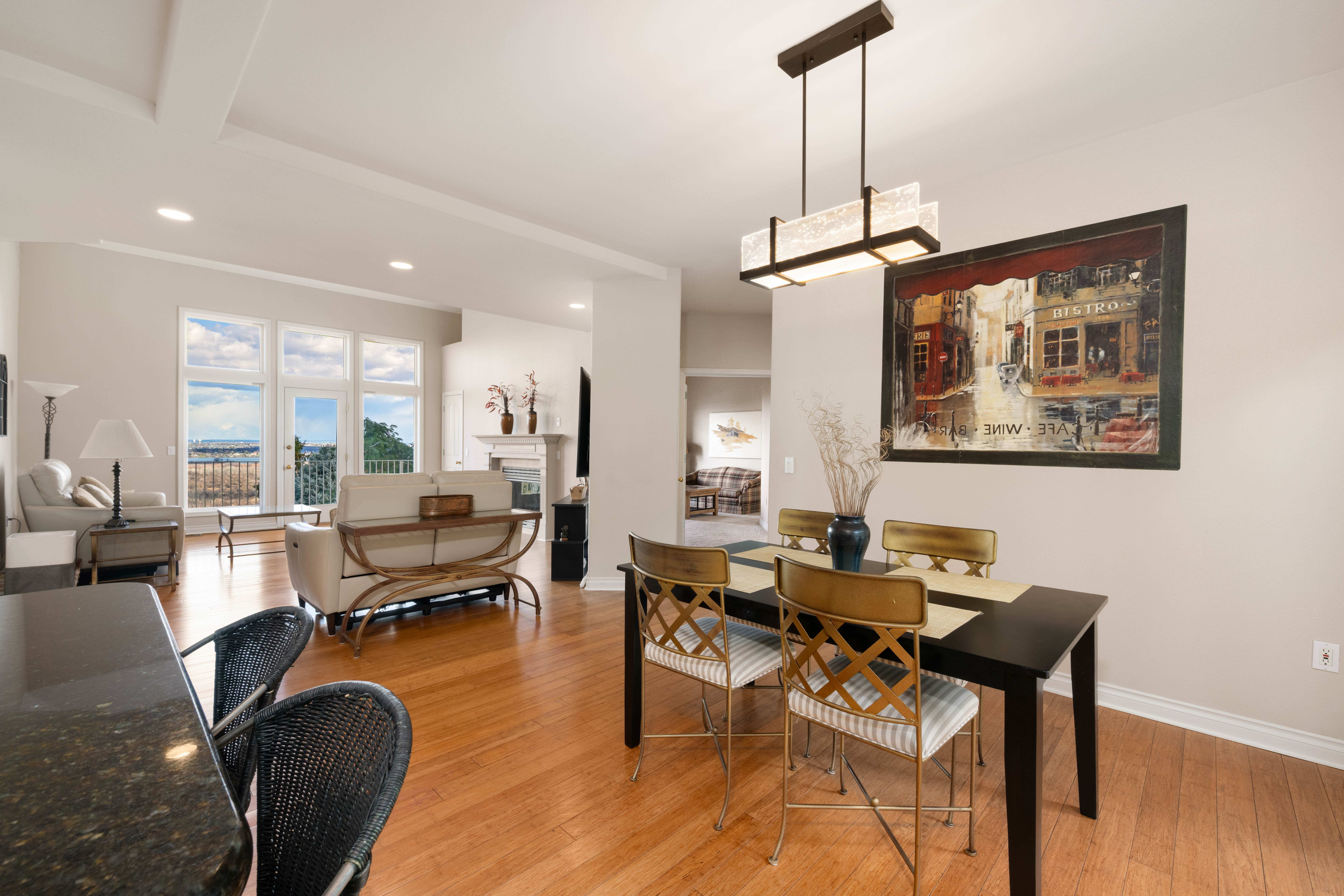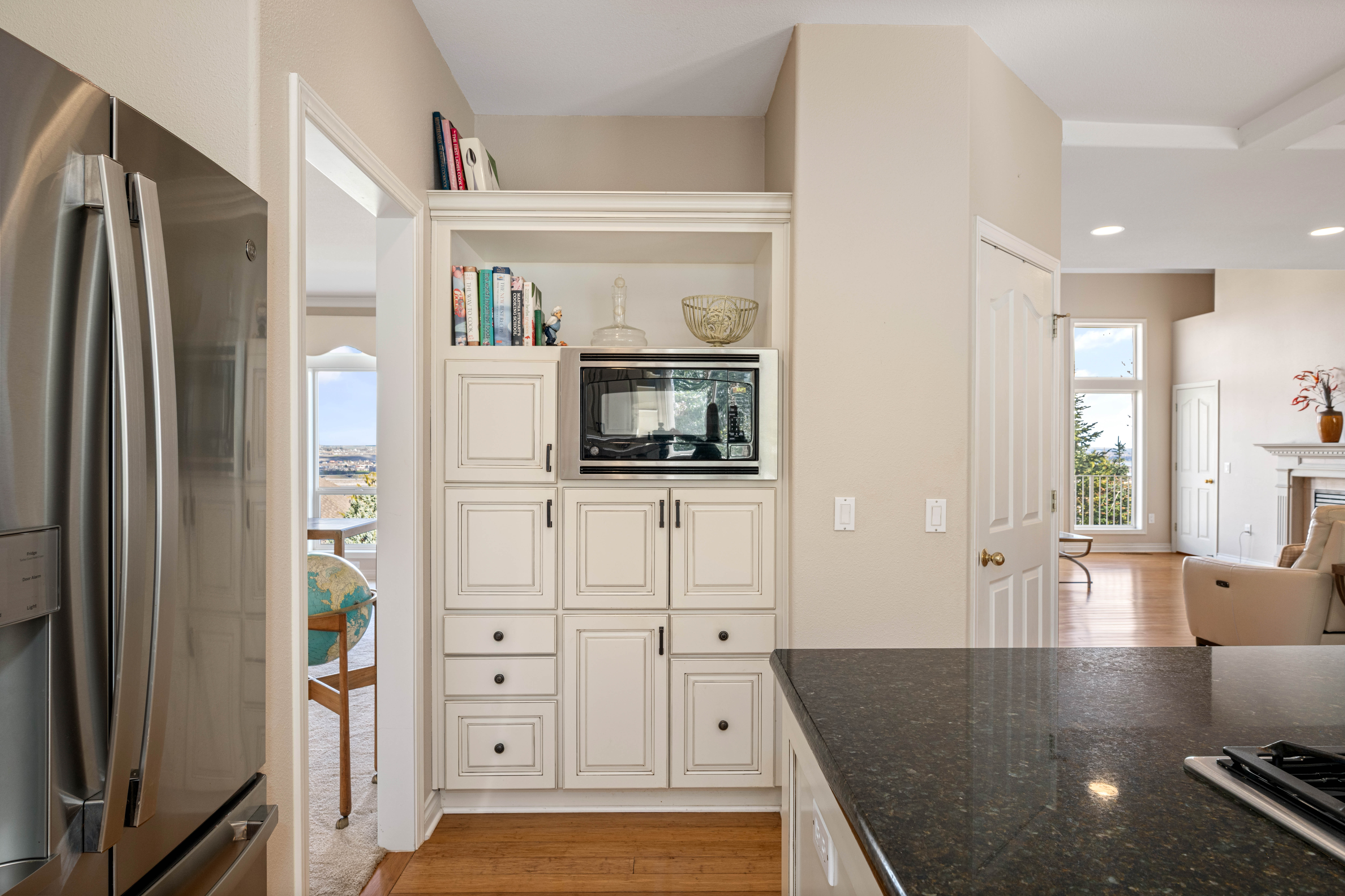 Elevated above the city with breathtaking panoramic views of both the Yakima and Columbia Rivers, this exceptional Richland residence offers an impressive blend of space, privacy, and unforgettable scenery. Spanning 3,707 square feet across three thoughtfully designed levels, the home features 4 bedrooms, a private den, and 4 bathrooms, providing versatility for both everyday living and elegant entertaining. Rich bamboo flooring flows through the living spaces, while the updated kitchen serves as a stylish and functional centerpiece for gatherings with family and friends. Outdoor living is truly a highlight of this home. The expansive front deck captures sweeping river views, creating the perfect setting for morning coffee or sunset evenings. In contrast, the large rear deck is tucked into mature landscaping, offering a peaceful and private retreat for entertaining or relaxing. Practical luxury continues with dual HVAC systems for year-round comfort, a spacious 3-car garage complete with workbench, and an oversized driveway providing ample parking for guests. The home’s stucco exterior and commanding presence enhance its curb appeal while the multi-level design maximizes both living space and spectacular views. A rare opportunity to enjoy space, privacy, and iconic river views in one of Richland’s most desirable settings.