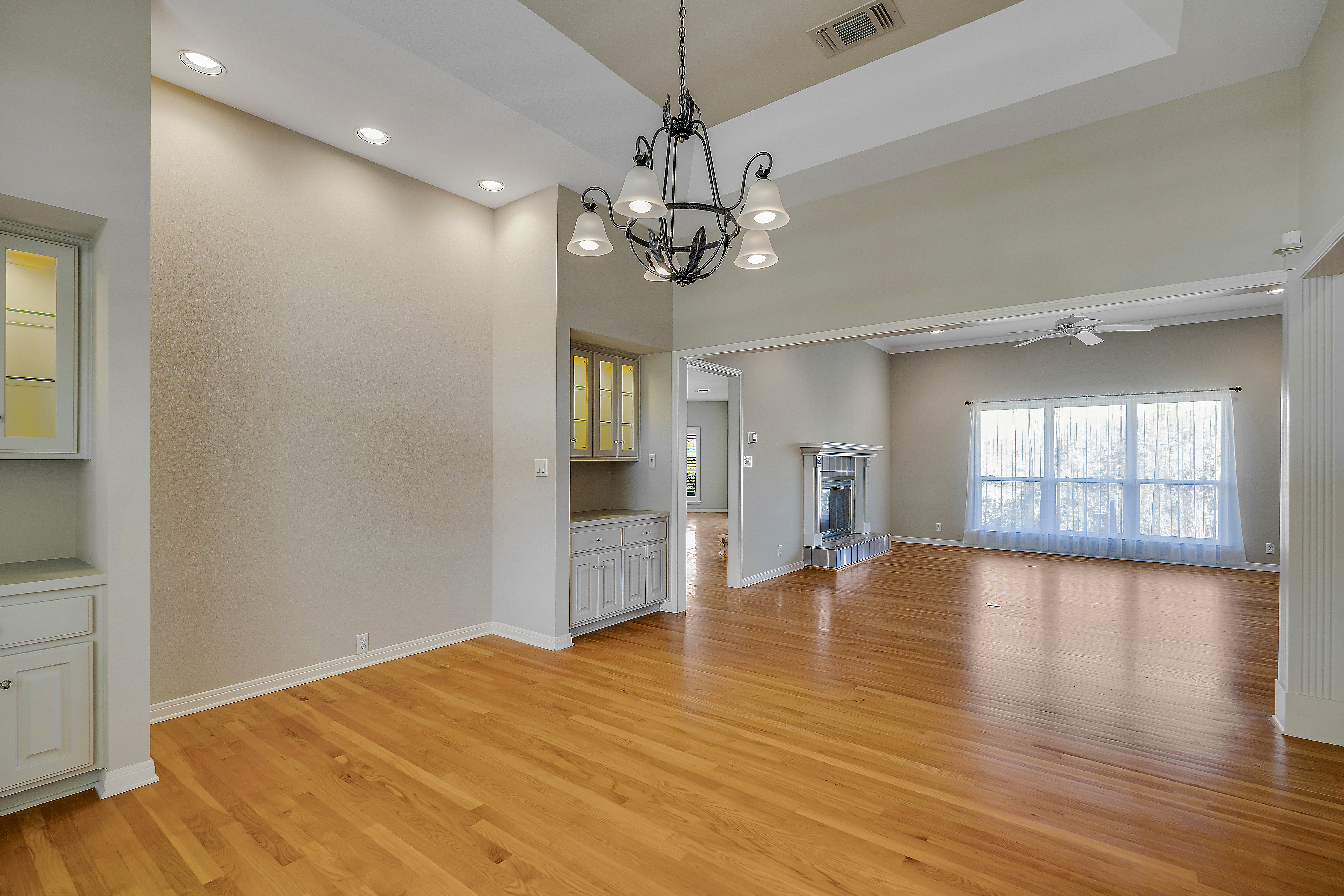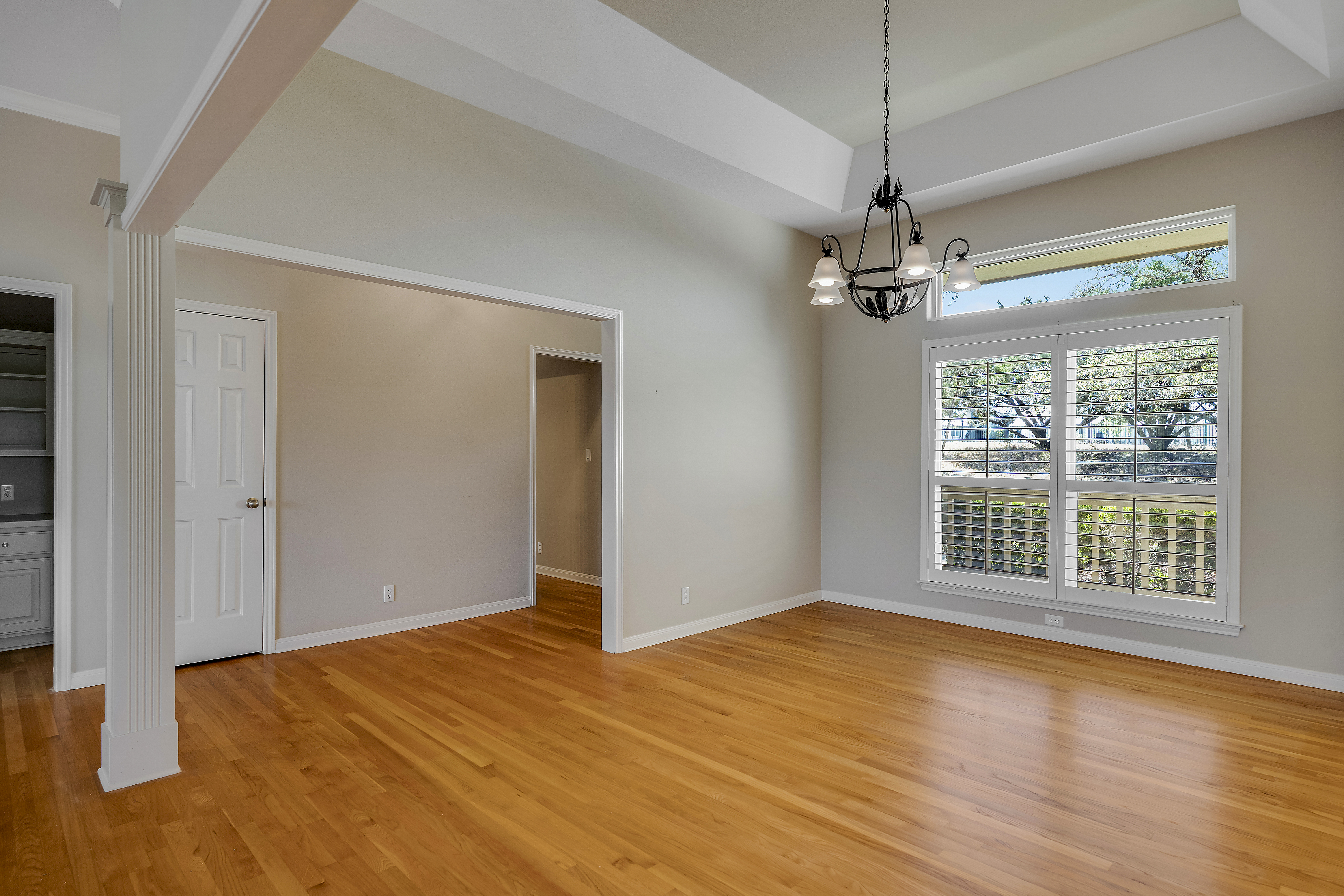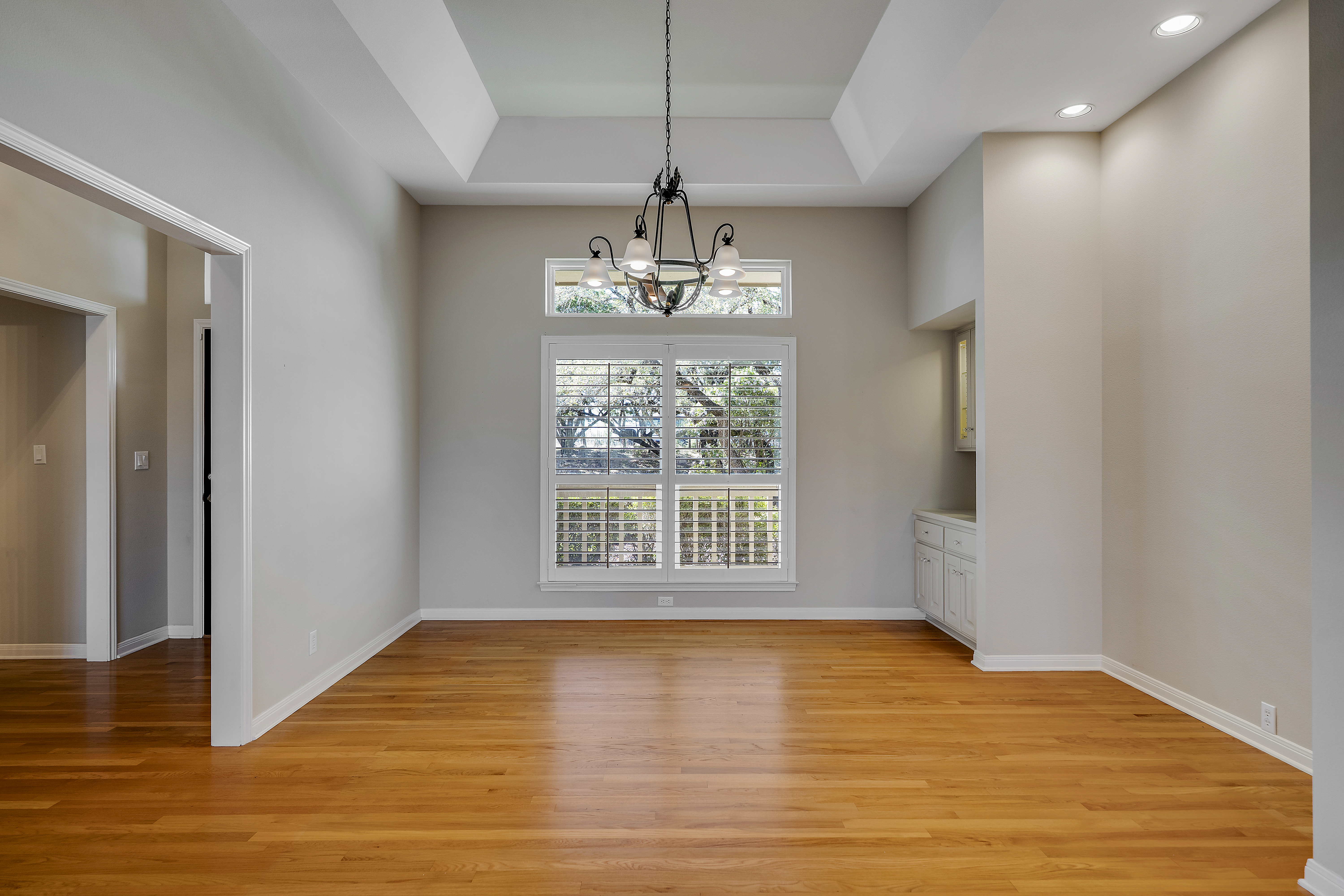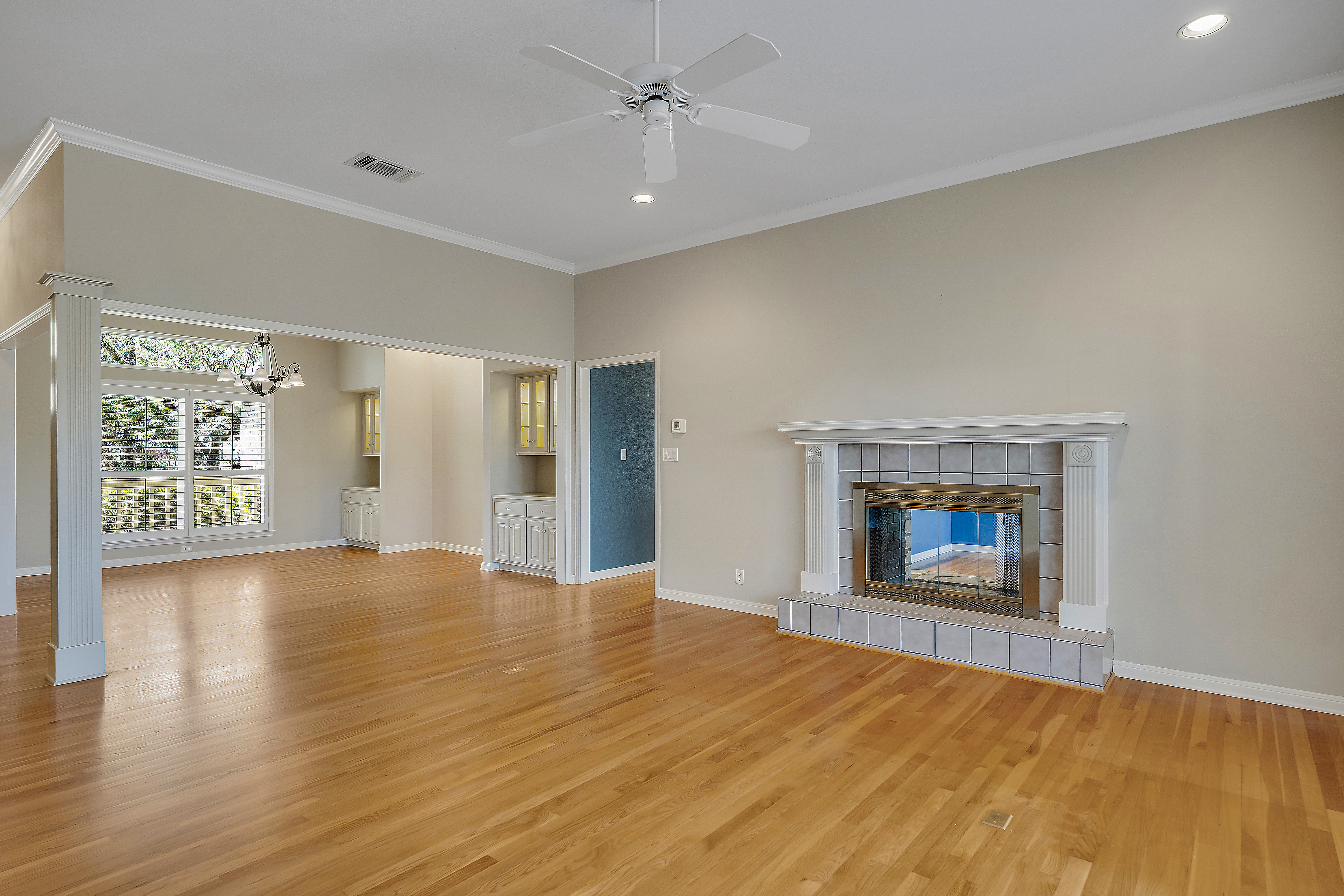 Nestled on 2.5 beautifully treed acres in Fair Oaks Ranch, this charming one-story stone home with a metal roof offers privacy, comfort, and wonderful Hill Country living. A welcoming covered front porch sets the tone, while the spacious covered back porch overlooks the sparkling pool and spa and the peaceful, tree-filled backyard. Inside, the home features 4 bedrooms and 2.5 baths with two inviting living areas. A striking dual-sided fireplace creates a warm focal point between the family room and living room, and the kitchen is open to the family room, making it ideal for everyday living and entertaining. The kitchen is well appointed with Bosch appliances and enjoys beautiful views of the backyard. Large windows bring in natural light and showcase the scenic outdoor setting from the living areas and the spacious primary suite. The primary bedroom features bamboo floors and an updated spa-like bath with separate tub and shower, separate vanities, and a walk-in closet. Additional highlights include custom built-ins in the living, family, and dining rooms, plantation shutters, and updated Pella windows throughout. Located within walking distance to the neighborhood park and served by highly regarded Boerne ISD, this special property combines serene acreage living with comfort, style, and convenience.
