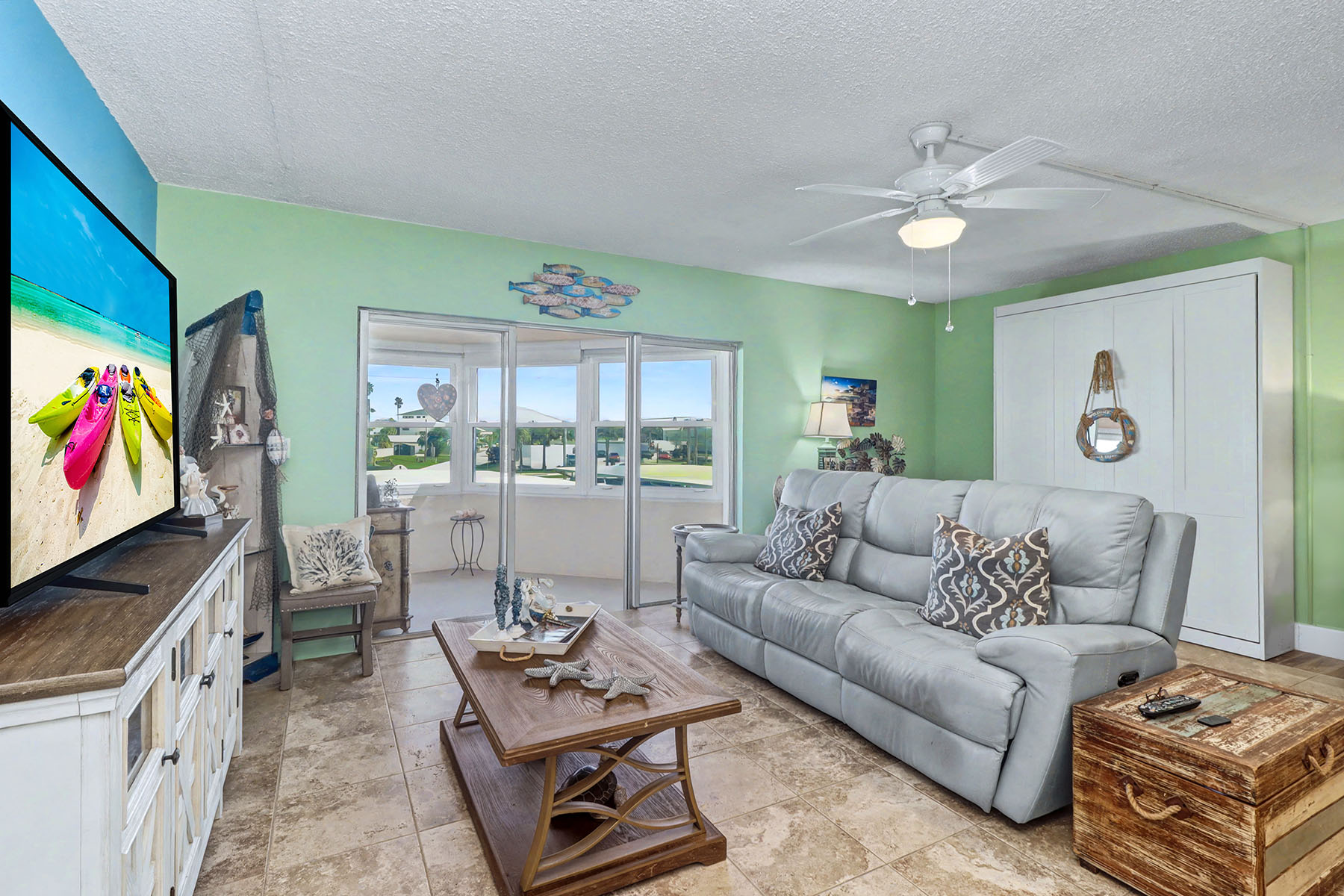 Superb deal, bright one-bedroom, two-bath beach condominium offering 930 square feet of thoughtfully upgraded living space. Large tile flows throughout the open floor plan into an upgraded kitchen with Corian counters, solid wood cabinetry and an intricate tile backsplash. Both baths feature custom tile work and updated vanities with quartz tops. There is also a pull out Murphy Bed in the living room for over night guest. A sun-drenched sunroom with storm-rated windows provides abundant natural light and a peaceful spot to enjoy fresh ocean air and sunrises. Tower Isle is a well-run association with an excellent reputation and resort-style amenities such as pristine grounds, on-site property manager, full-time maintenance manager, key-fob secured entry, surveillance cameras, covered assigned parking, storage lockers, heated pool with multiple sun decks overlooking the beach, outdoor grill stations and two elevators. Outdoor recreation includes fishing, boating, paddleboarding and sea shelling. Prime location, minutes to downtown St. Petersburg's dining and nightlife, 10 minutes to Clearwater Beach, and easy access to St. Pete–Clearwater and Tampa airports.