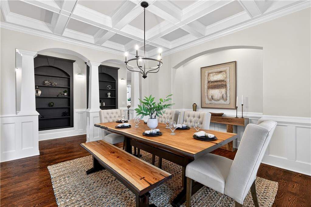 Located in the prestigious golf community in Arbor Springs, this extraordinary estate has been masterfully and extensively reimagined with thoughtful, high-end renovations throughout. Perfectly positioned on a private wooded lot within this sought-after country club setting, the home blends timeless architecture with modern luxury, refined comfort, and exceptional functionality. Every level has been meticulously updated creating a truly turnkey residence designed for elegant living and effortless entertaining. A grand two-story foyer welcomes you with soaring ceilings, abundant natural light, and exquisite architectural detailing. The formal dining room features custom built-ins and elegant trim work, flowing seamlessly into the impressive great room anchored by a dramatic stacked stone fireplace. Just beyond, a bright, and inviting sunroom with stone flooring and its own stone fireplace provides the perfect setting for evening cocktails while enjoying tranquil backyard views. Both spaces open on a covered grilling deck as well as an open-air deck, offering exceptional indoor-outdoor flow for entertaining on any scale. The chef's kitchen has been beautifully updated and designed to both impress and perform, featuring a professional-grade gas range with pot filler, expansive center island with bar seating, two preparation sinks, abundant cabinetry, and new counter tops. The adjacent keeping room showcases rustic ceiling beams and a cozy stone fireplace, creating an intimate gathering space ideal for morning coffee or relaxed evenings with guests. A thoughtfully redesigned laundry room and scullery on the main level offers built in cabinetry, a second refrigerator, washer and dryer and additional storage , serving as the perfect prep and organization space. The expansive primary suite, located on the main level, serves as a luxurious private retreat complete with intimate sitting room and stone fireplace. The custom-designed closet system is exceptional in both scale and function. The spa-inspired inspired ensuite bath has been fully renovated and features gorgeous vanities, a bar area complete with wine refrigerator, designed tile, soaking tub, and oversized shower with glass enclosure, and refined finishes throughout. Upstairs, a central hallway leads to three generously sized bedrooms, each with its own private ensuite bath, all completely updated. The upper level also includes a built in computer workstation with cabinetry. Step into another light filled bonus room perfect for hobbies or upstairs theatre but that is not it, there is and a second bonus room upstairs above the over sized the three-gar garage. Finished and unfinished knee-wall storage areas provide abundant additional space. All bedrooms feature new carpet, fresh paint, lighting and ceiling fans. The terrace level is designed for elevated entertainment and recreation. A dramatic two-story billiard room with spiral staircase and catwalk overlook , creates a stunning architectural focal point. This level also features a full bar with seating, a secondary kitchen, a dedicated display for awards, books, or memorabilia, a fireside great room, another bedroom with full bath, a FULL home gym, private home theater and an impressive WINE CELLAR. Also downstairs is another garage area perfect for the "toys". The bright open layout makes this level for hosting gatherings of any size or multi-generational living. Outdoor living is equally as exceptional. Two fully equipped cooking areas with dual 54 inch-Lynx grills and outdoor refrigeration anchoring entertaining spaces. a FULL-SIZE BASKETBALL COURT adds to the lifestyle amenities, while the private wooded backdrop provides serenity and seclusion. An invisible dog fence enhances convenience for pet owners. Extensive recent improvements include a new roof, new gutters, downspouts, and leaf guards, fresh exterior paint, new epoxy garage flooring, in the OVERSIZED three-car garage and four new Carrier HVAC'S