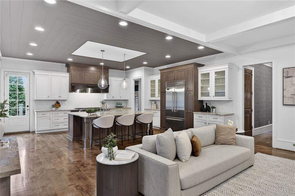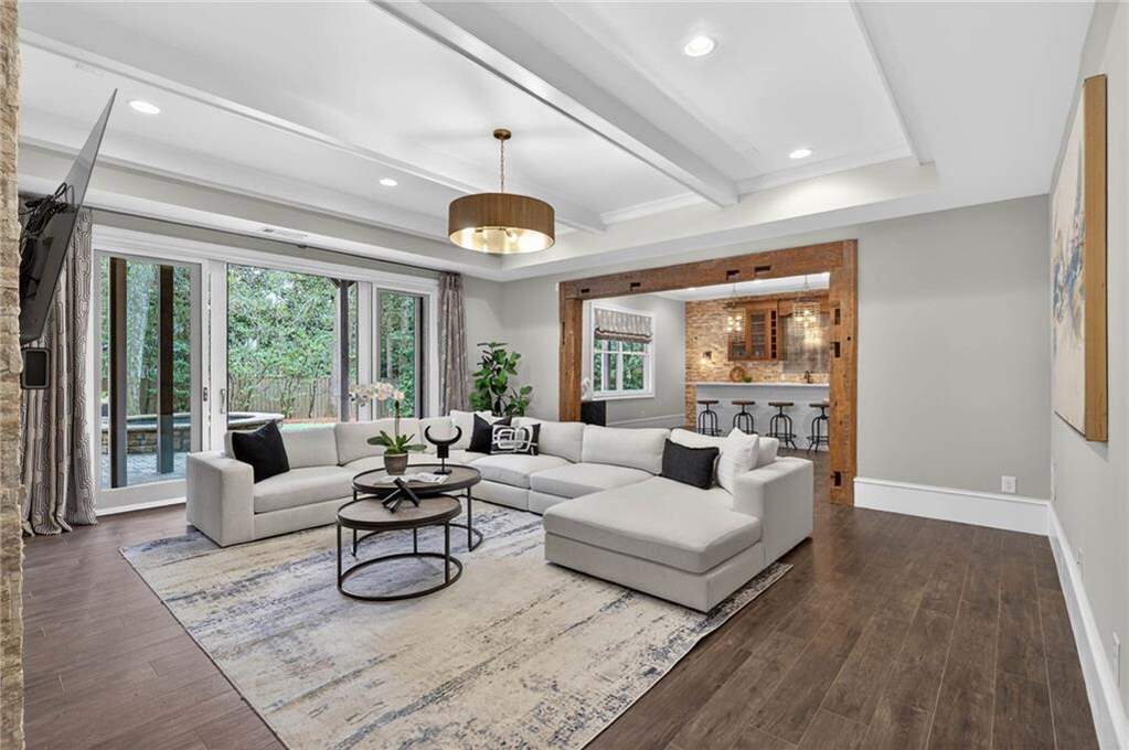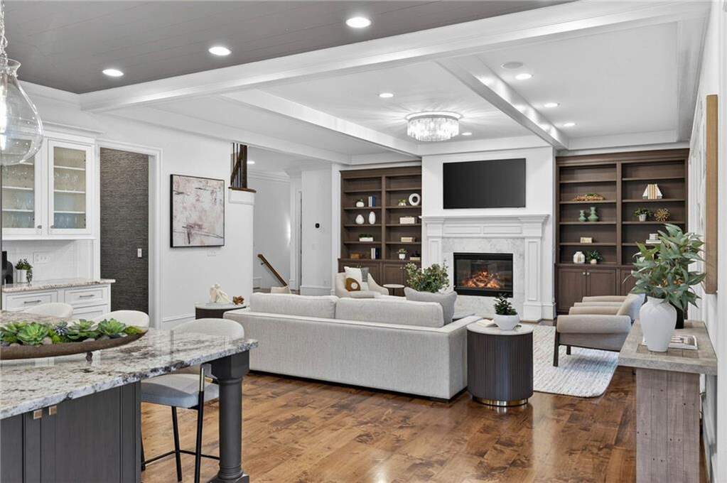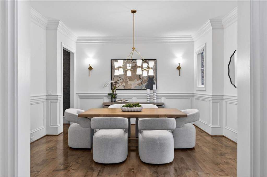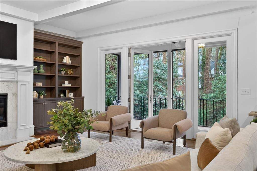 Just steps from Chastain Park, this exceptional five-bedroom residence offers refined luxury living with seamless indoor-outdoor spaces, a private backyard oasis, heated saltwater pool, and beautifully finished terrace level. Elevator ready. An impressive stone front porch sets the tone for the home's elegant design. Inside, the main level features a formal dining room, stylish wet bar, and an inviting sitting room with gas fireplace. The light-filled family room showcases exposed beam ceilings, a marble fireplace, dual built-in bookcases and glass doors that open to screened porch. The open floor plan flows effortlessly into the gourmet kitchen, outfitted with Viking appliances including a six-burner range with built-in griddle and French door refrigerator. Just beyond, a spacious screened porch and grilling deck overlook the private backyard retreat featuring a heated saltwater pool and level turf lawn. A main-level guest suite offers its own covered porch overlooking the pool and a spa-inspired marble bath with frameless shower. Two powder rooms with marble vanities and designer wallpaper complete the main floor. Additional highlights include a walk-in pantry, custom mudroom, three-car garage with a dedicated pet spa. Upstairs, the primary suite is a true retreat with a fireside sitting area, trey ceiling, and private covered porch. The luxurious primary bath features an oversized frameless shower, soaking tub, and two custom walk-in closets. Three additional bedrooms each offer ensuite baths and walk-in closets, along with a convenient laundry room and a versatile loft/media space with built-in desk. Designed for entertaining, the terrace level features reclaimed Wisconsin barnwood beams, a spacious fireside family room with built-ins, a full bar with kegerator and dual beverage refrigerators, and a 500+ bottle wine cellar with dedicated champagne storage. Additional spaces include a pool bath with snack bar and a large fitness room. Ideally situated on a quiet street just 200 feet from the Chastain Park trail, the home is moments from neighborhood favorites including The Chastain restaurant, Synovus Bank Amphitheater at Chastain Park, Chastain Park Horse Park, Chastain Park Golf Course, NYO baseball fields, tennis and pickleball courts, and the Play Chastain playground.