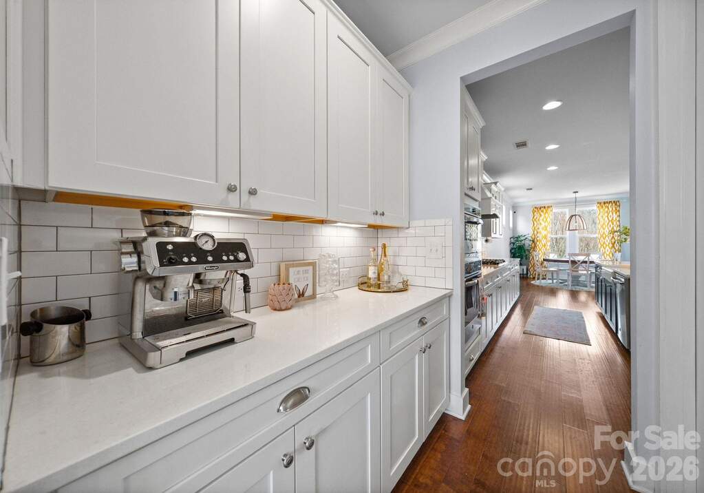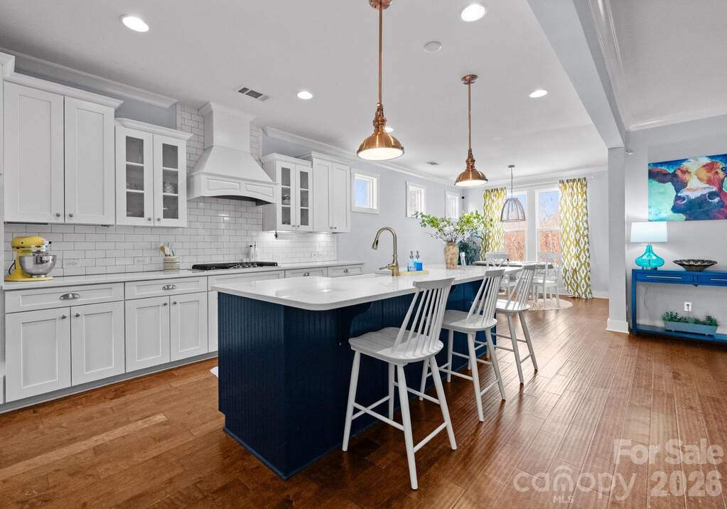 Rare opportunity for a basement home in the sought-after Cobblestone Manor community, ideally set on a private lot with mature trees and natural privacy. Designed for both comfortable everyday living and effortless entertaining, this home offers nearly 4,900 sq ft across three levels. The main level features a welcoming great room with gas fireplace, private office, spacious dining area, and seamless access to the screened porch overlooking the fenced backyard. The kitchen is well-appointed with a large island, gas cooktop, walk-in pantry, and abundant cabinetry. The finished basement adds impressive additional living space with a large recreation/family room, bedroom, full bath, fitness room, and a built-in beverage bar with mini fridge-perfect for entertaining, game nights, or extended guest stays, along with additional storage. Upstairs, the primary suite provides a relaxing retreat with dual vanities, soaking tub, and separate walk-in closets. Additional bedrooms and a versatile loft offer flexibility for guests, recreation, or work-from-home needs. Enjoy outdoor living in the private backyard framed by mature trees, all within Cobblestone Manor with community pool and convenient access to Lake Norman, Birkdale Village, shopping, dining, and major commuter routes.