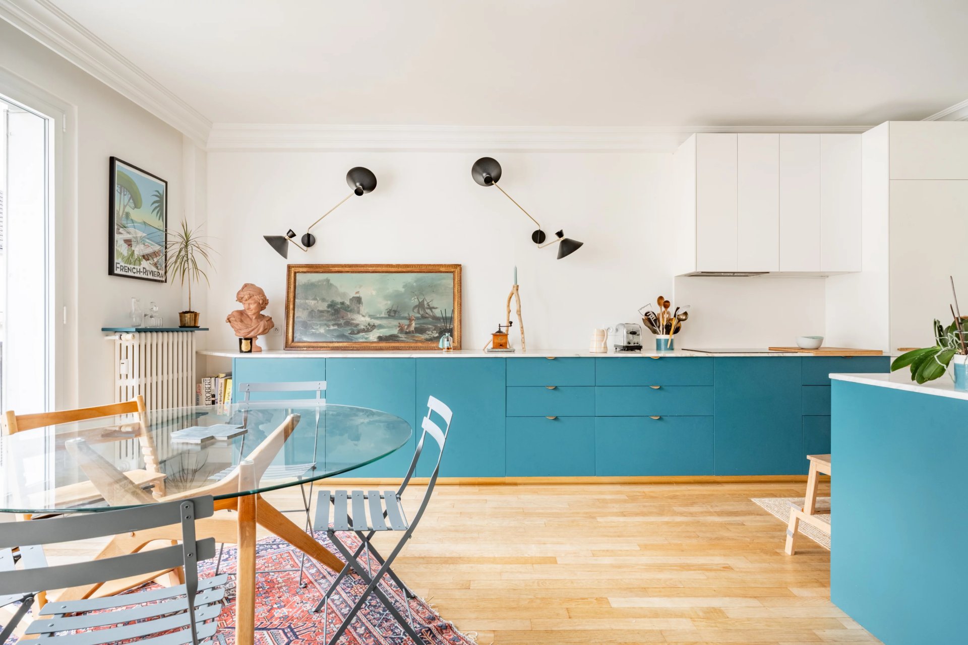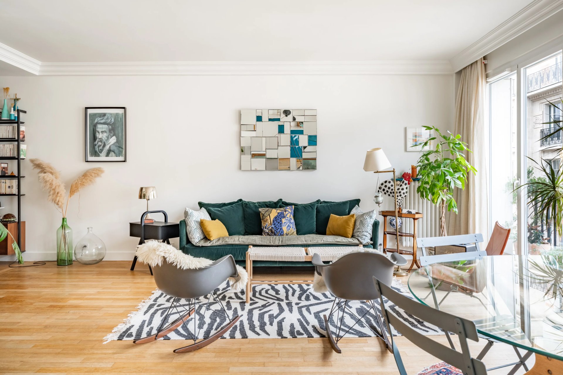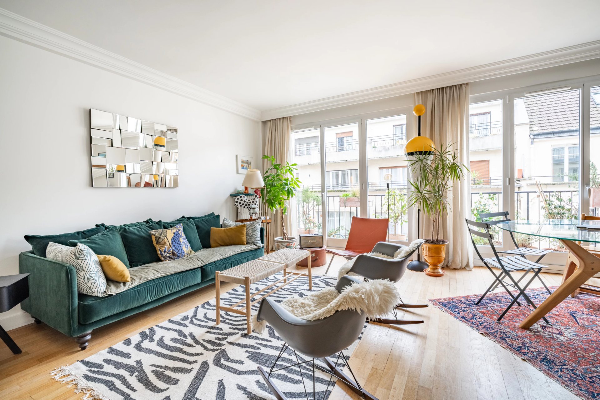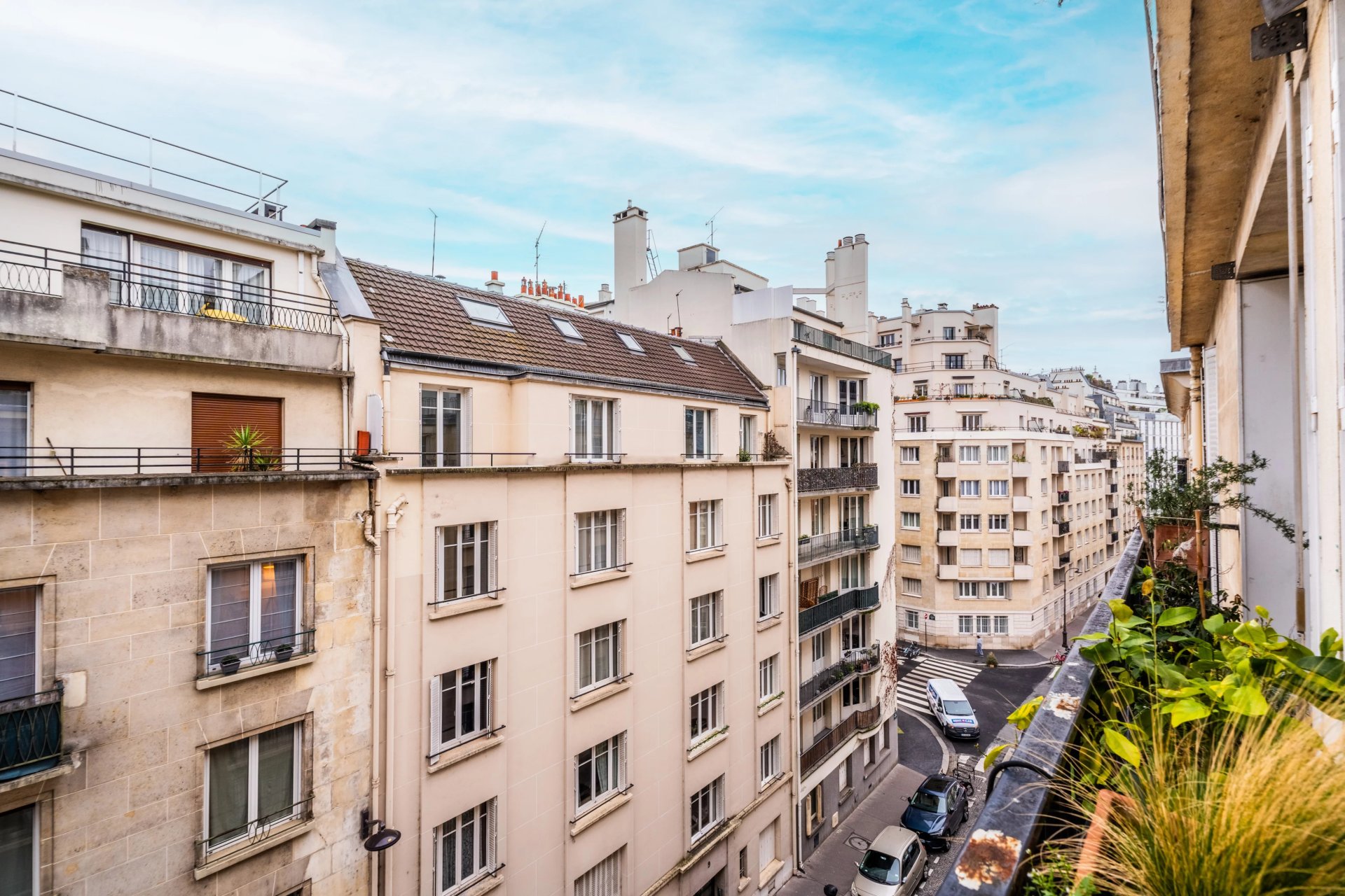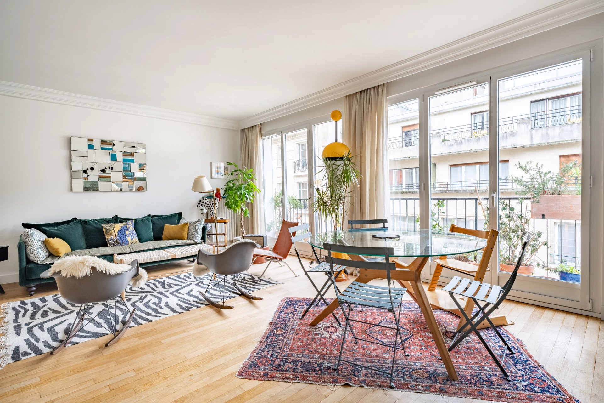 Sole Agent. Auteuil/Mirabeau neighbourhood. This 94 sqm apartment bathed in sunshine is on the 5th floor of a mid 20th century building with a caretaker and a lift. In perfect condition, it includes a double living/reception room with an open-plan kitchen opening onto a south-west facing balcony, three bedrooms overlooking a peaceful courtyard, a bathroom and a separate wc.