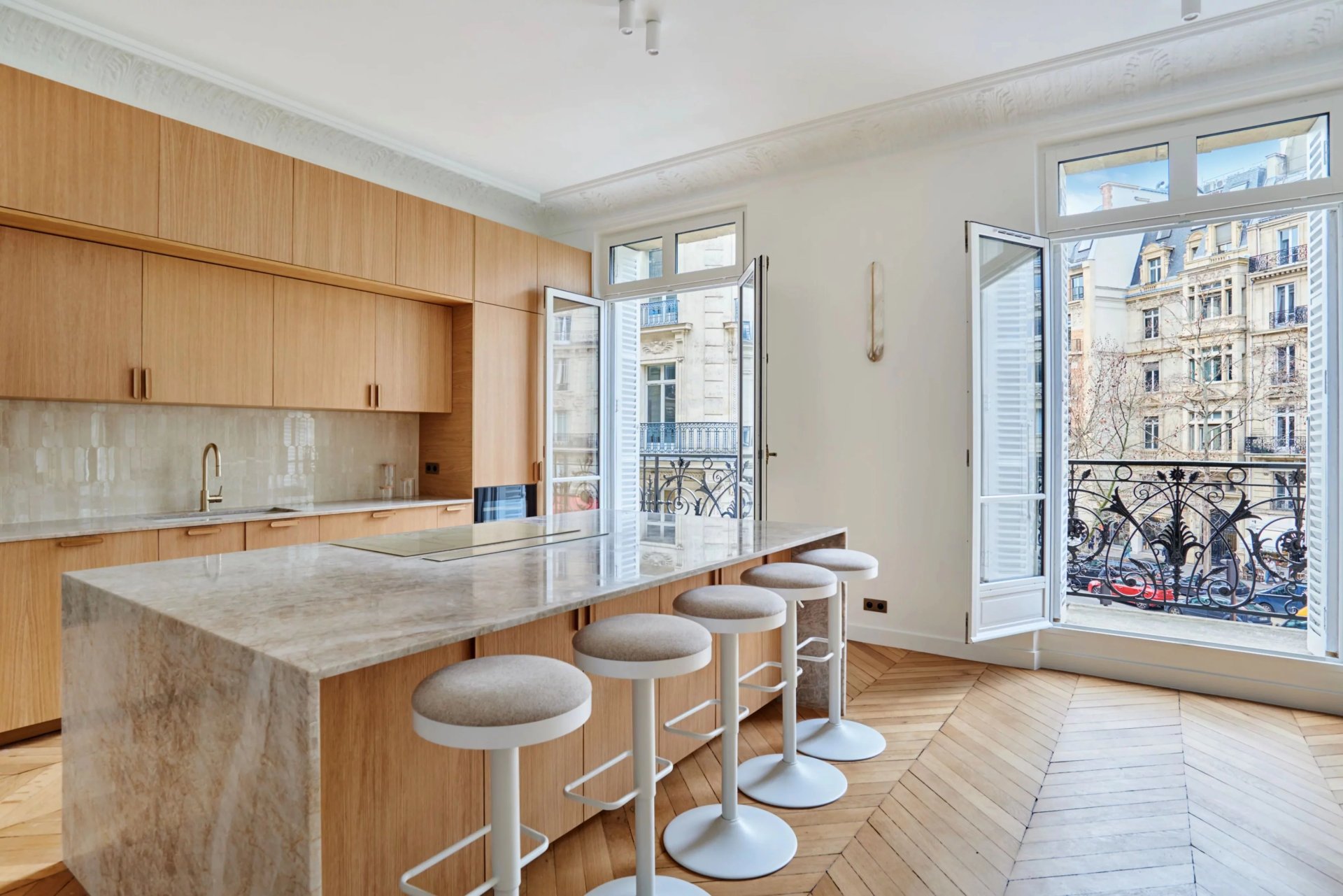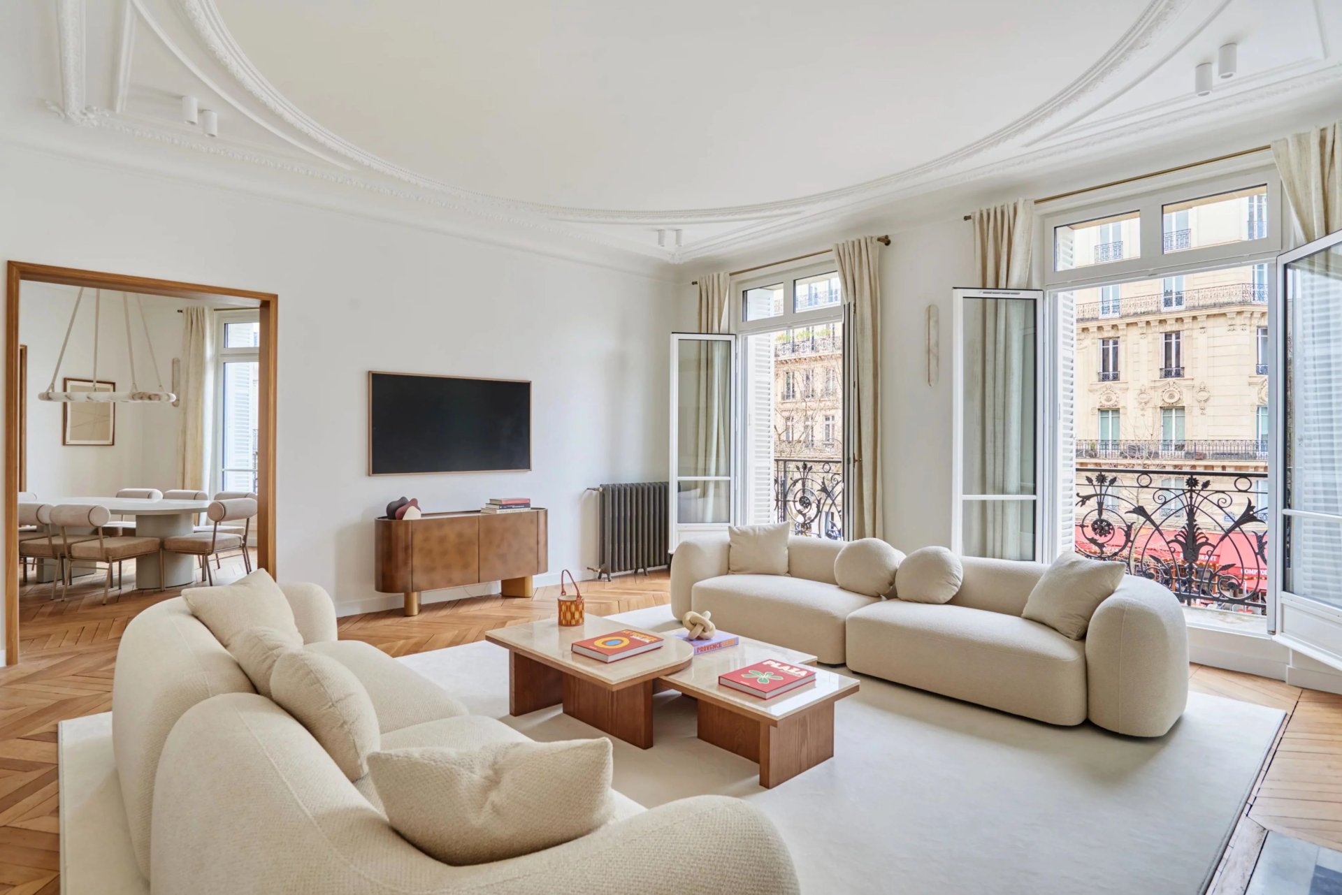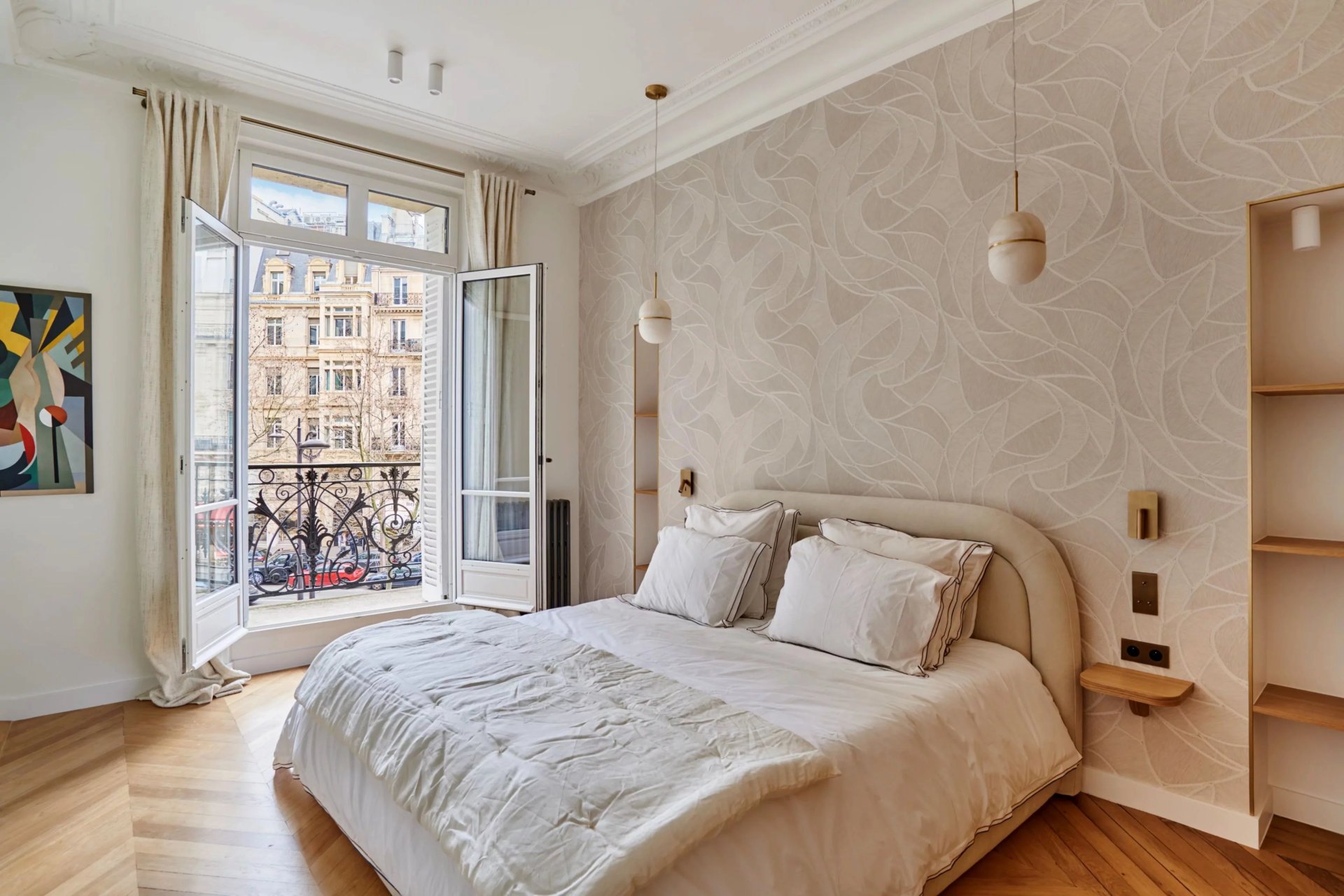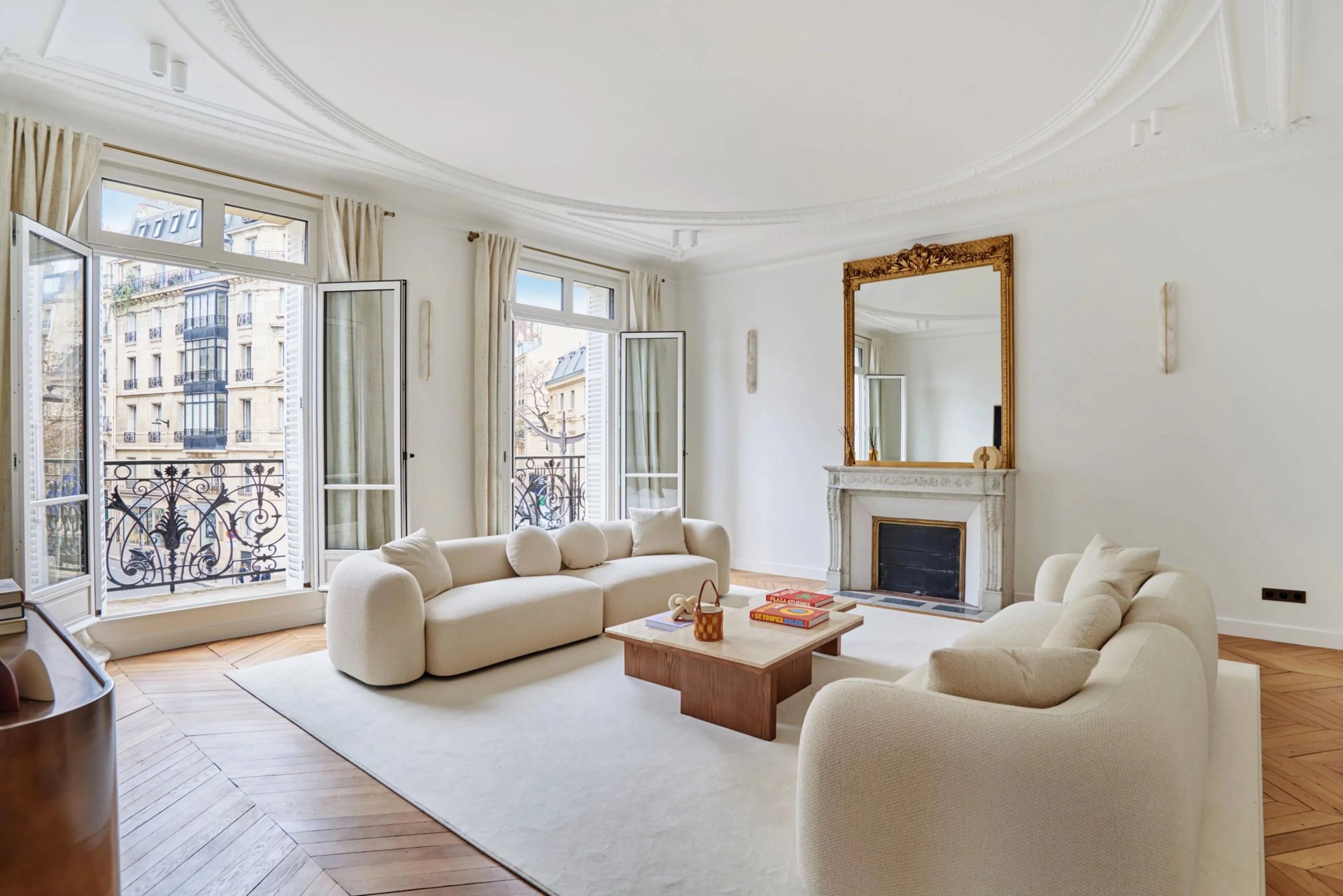 This elegant air-conditioned apartment on the 2nd floor of a fine early 20th century building located a stone's throw from Place du Trocadéro benefits from balconies enjoying views of the Eiffel Tower and the Arc de Triomphe. Meticulously renovated throughout by an interior decorator, it includes a spacious living/reception room, dining room and kitchen bathed in sunshine and featuring high ceilings, a master suite with a bathroom and dressing room, three further suites each with bathrooms, and a utility room.