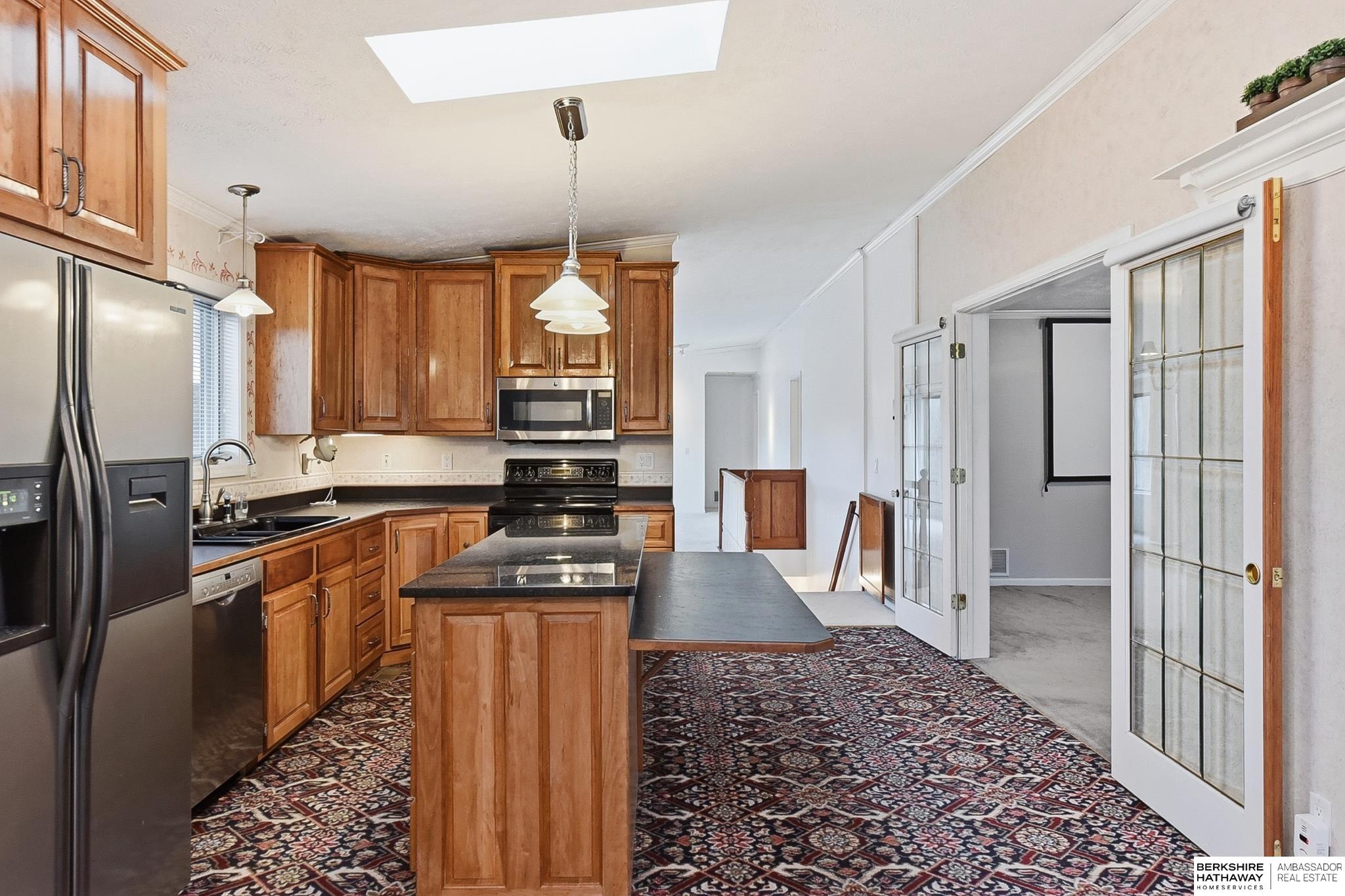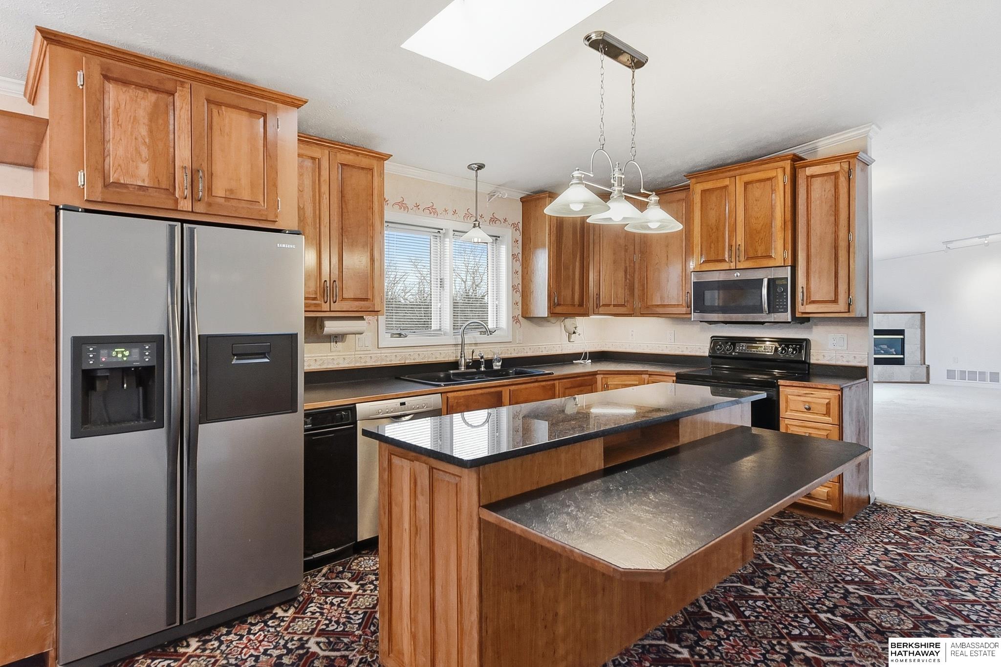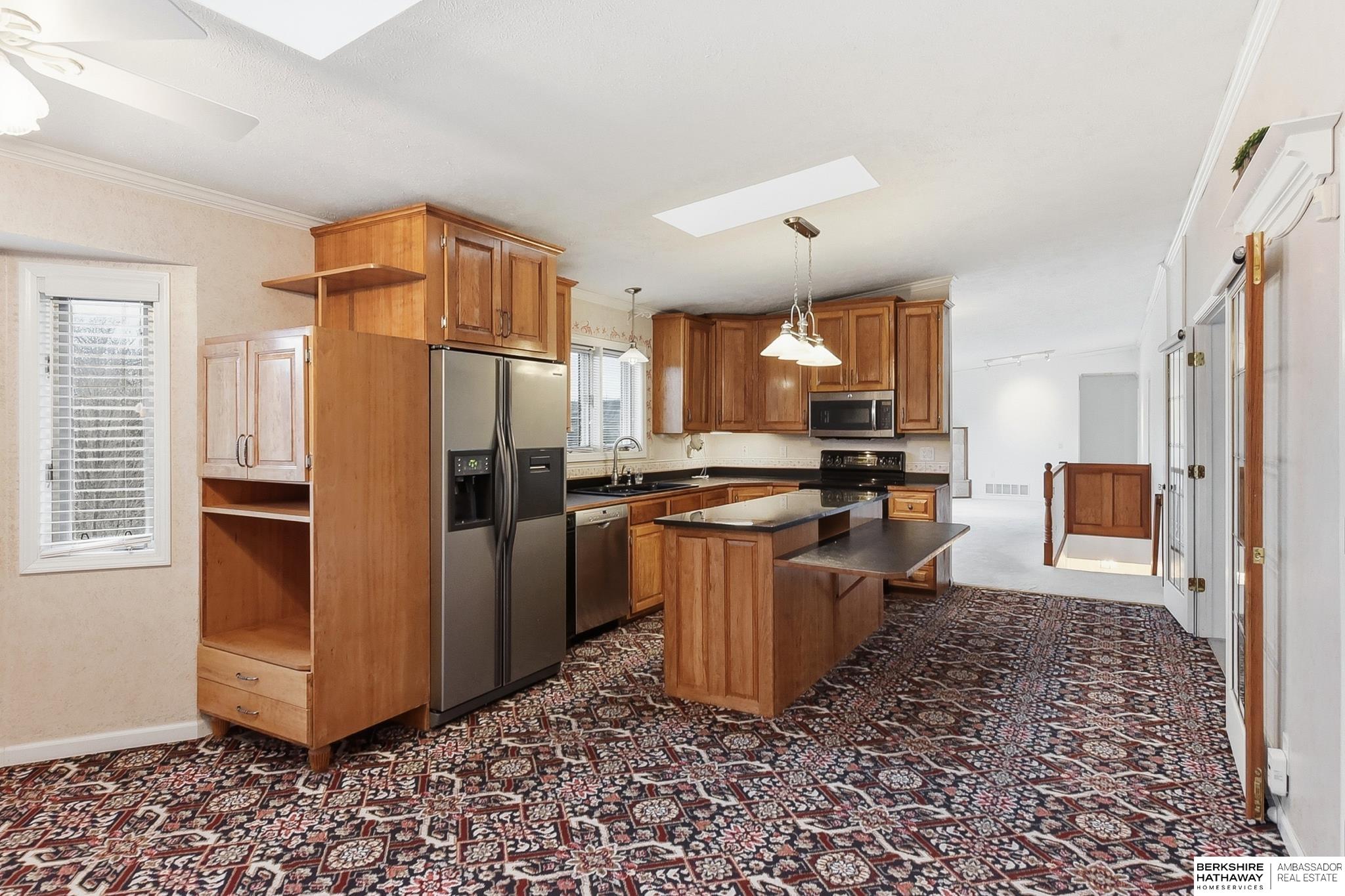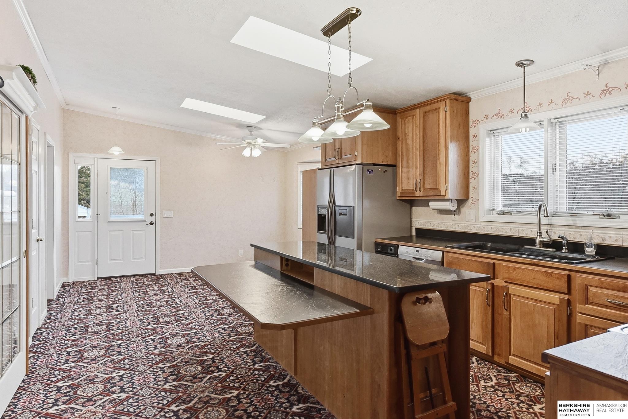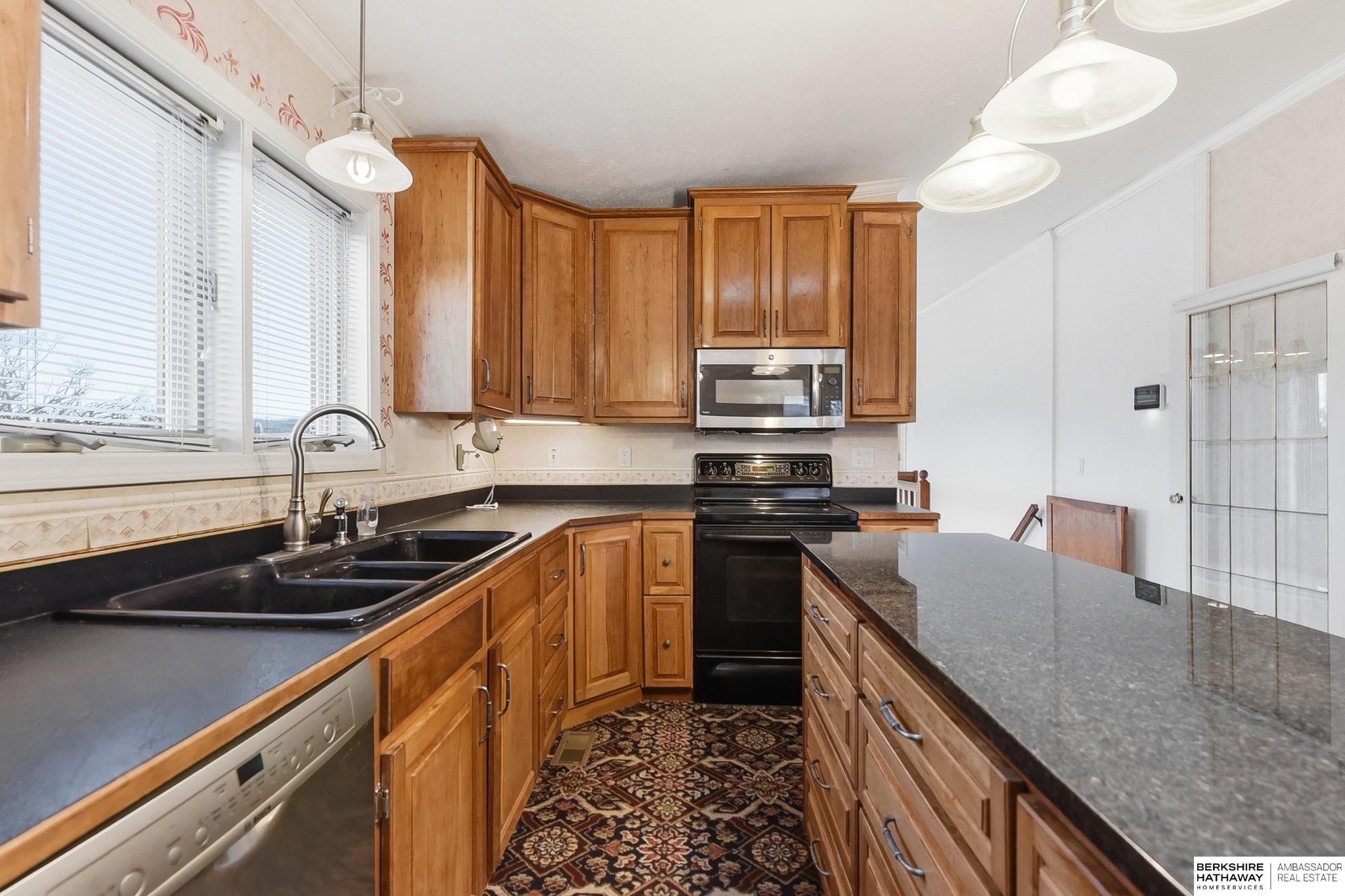 Enjoy peaceful living on 1.5 scenic acres with elevated views of beautiful trees and frequent visits from wildlife. This inviting ranch-style home offers 3 beds, 4 baths, and a 3-car garage, designed for comfortable living and flexible spaces. One of the home's incredible features is the climate controlled 25x25 indoor workshop with exterior double doors - ideal for woodworking, hobbies, projects, or storage. The kitchen features custom cherry cabinetry and flows easily into the main living areas. A spacious main-level family room could also serve as a home office or additional bedroom if desired. Convenient mudroom and main-floor laundry with half bath. The home offers added peace of mind with private well, septic, propane, and whole-house electrical EMP shield protection, with generator interlock connection. New roof 2025! Unique opportunity to update and personalize for potential added equity. Fantastic location near recreation with an easy commute and just 30 minutes to Offutt AFB.