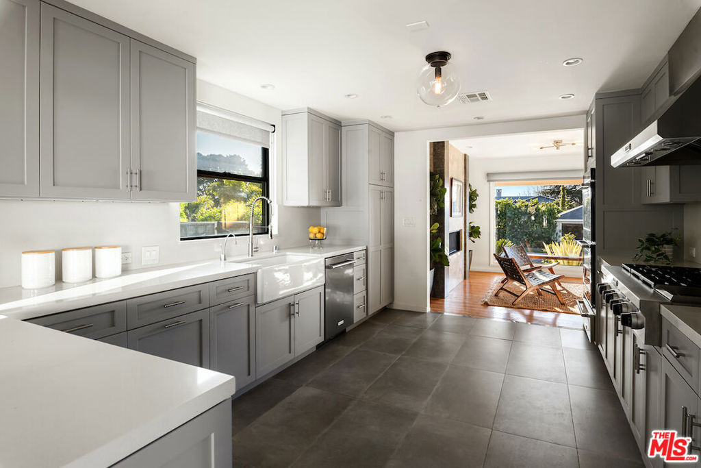 Welcome to this spacious, beautifully updated single level home in the centrally located Loyola Village neighborhood of Westchester. The main house features an open concept layout with 3 bedrooms, 2 bathrooms, an abundance of natural light, original wood floors, decorative fireplace, designer light fixtures, beautifully updated chef's kitchen with stone floors, farmhouse sink, stainless appliances, wine fridge, and dining room with concertina doors opening to the patio and expansive, private outdoor space. The primary bedroom has the en-suite bathroom, two additional bedrooms and the 2nd bathroom, both baths with stone floors and beautiful dual vanity areas. The finished garage/flex space is being used as a bonus area with natural light, a great area for entertaining or just relaxing, a split system HVAC and a separate laundry room and beautiful 3/4 bathroom. Additionally there is a cozy stand-alone bungalow serving as a private office. There is a tankless water heater, synthetic grass and outdoor shower. Don't miss this lovely property with easy access to all this wonderful location has to offer including top rated schools, Beach cities, Silicone Beach, Culver City, restaurants, shopping, LAX and so much more.