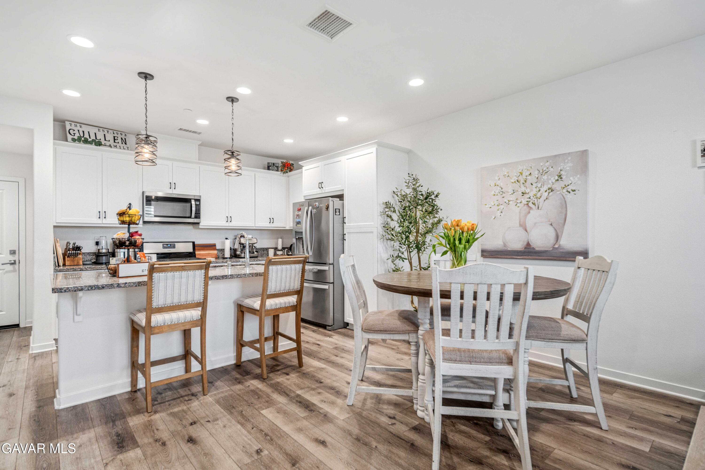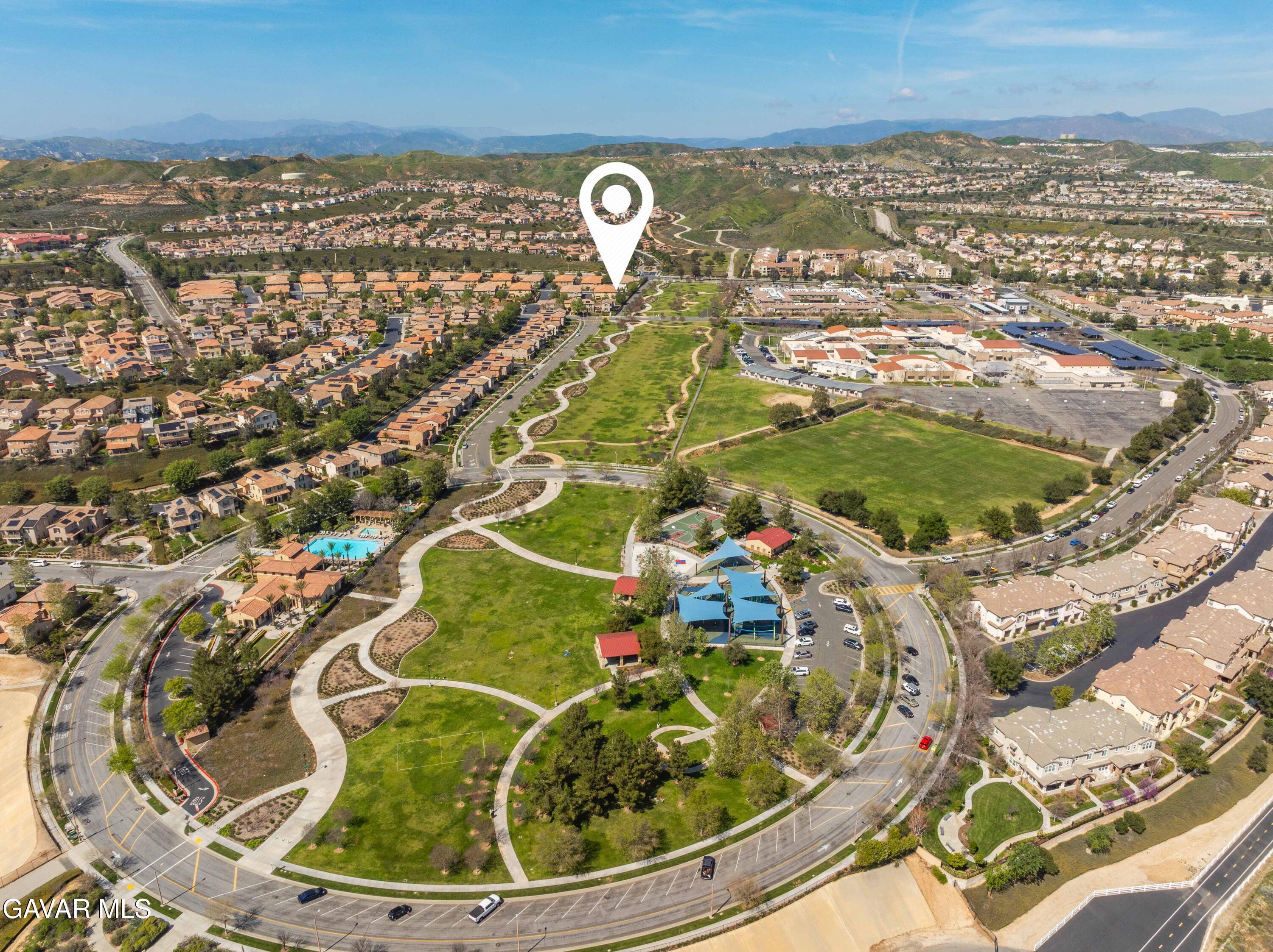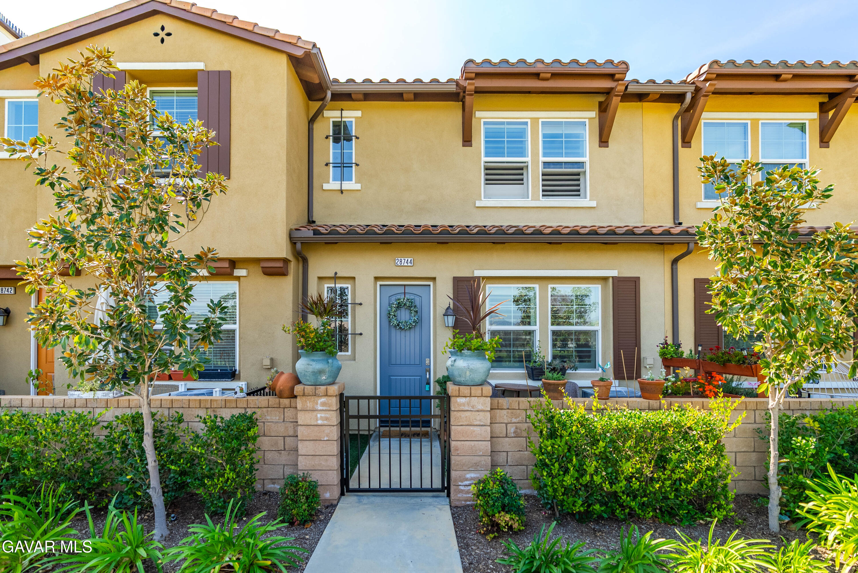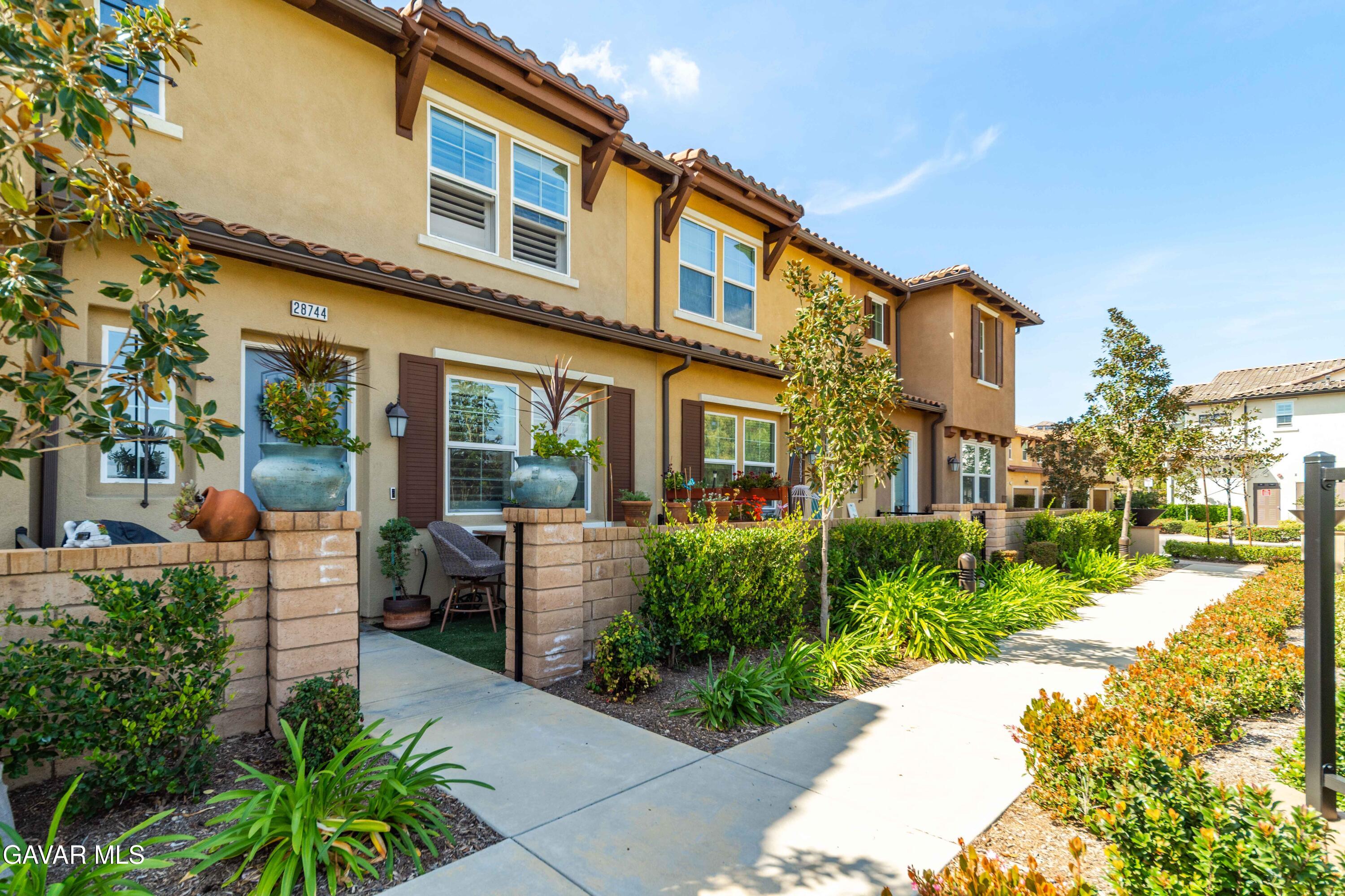 Rare park-front opportunity in Valencia's highly desirable West Creek community, offering scenic views and direct access to the park & paseo trail system. Welcome to this beautifully maintained home located in the Paloma neighborhood of West Creek in Valencia. Perfectly positioned fronting a large community park and paseo trail system with scenic mountain views in the distance, this 3-bedroom, 2.5-bath residence offers approximately 1,440 square feet of stylish, move-in ready living. A charming gated front patio and landscaped entry provide a welcoming outdoor space to relax and enjoy the open greenbelt setting just beyond your front door. Inside, the home features a bright open-concept floor plan with luxury vinyl plank flooring downstairs, plantation shutters throughout, recessed lighting, and a whole house fan. The kitchen is both functional and inviting with granite countertops, stainless steel appliances, white cabinetry, and a large center island with bar seating, seamlessly opening to the dining and living areas. Upstairs, the primary suite offers a spacious retreat with park views, a walk-in closet, and an ensuite bathroom featuring dual sinks, glass-enclosed shower. Two additional bedrooms provide flexible space for guests, family, or a home office, along with a convenient upstairs laundry room. Additional highlights include an attached two-car garage and nearby guest parking. Residents enjoy HOA amenities including a community pool, spa, BBQ area, and bathrooms, along with easy access to nearby parks, scenic trails, shopping, and Rio Norte Junior High School. This home offers the perfect combination of park-front living, mountain views, and turnkey comfort in one of Valencia's most sought-after communities.