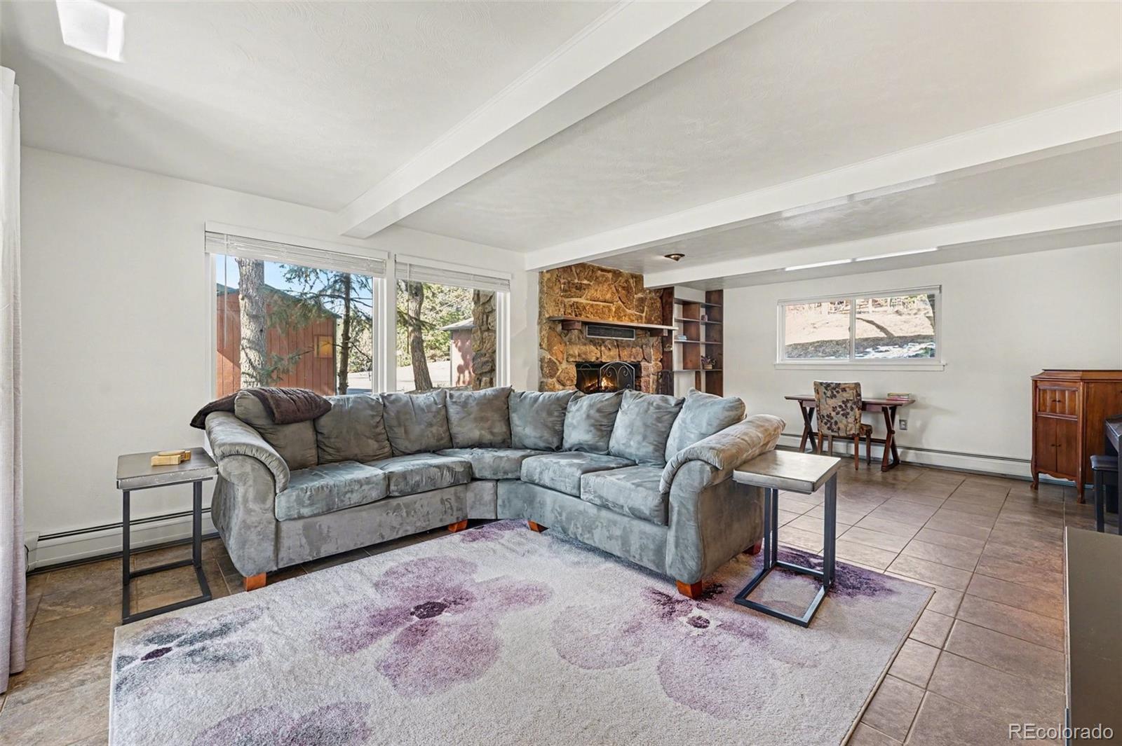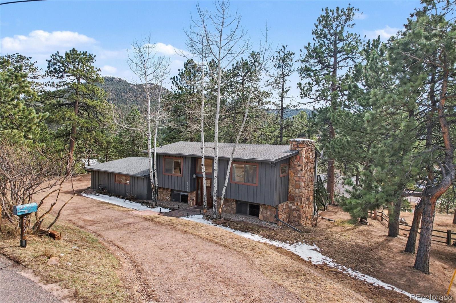 Great updated mid-century modern three-bedroom three-bathroom home on a wonderful lot right in the heart of Evergreen! Walk to stores, restaurants, ice cream, Bear Creek, and coffee shops! This very well cared for bi-level home offers hardwood floors, granite counters, designer tiles, and hickory cabinets. Energy efficient hot water heat, a wood burning fireplace, and southern exposure check all the boxes for quality residential mountain living. Located on a quiet cul-de-sac, this 1711 square foot home also features a gentle driveway and a useable lot. The covered patio and spacious upstairs deck allow for privacy and solitude. This is truly an Evergreen gem you don't want to miss out on!