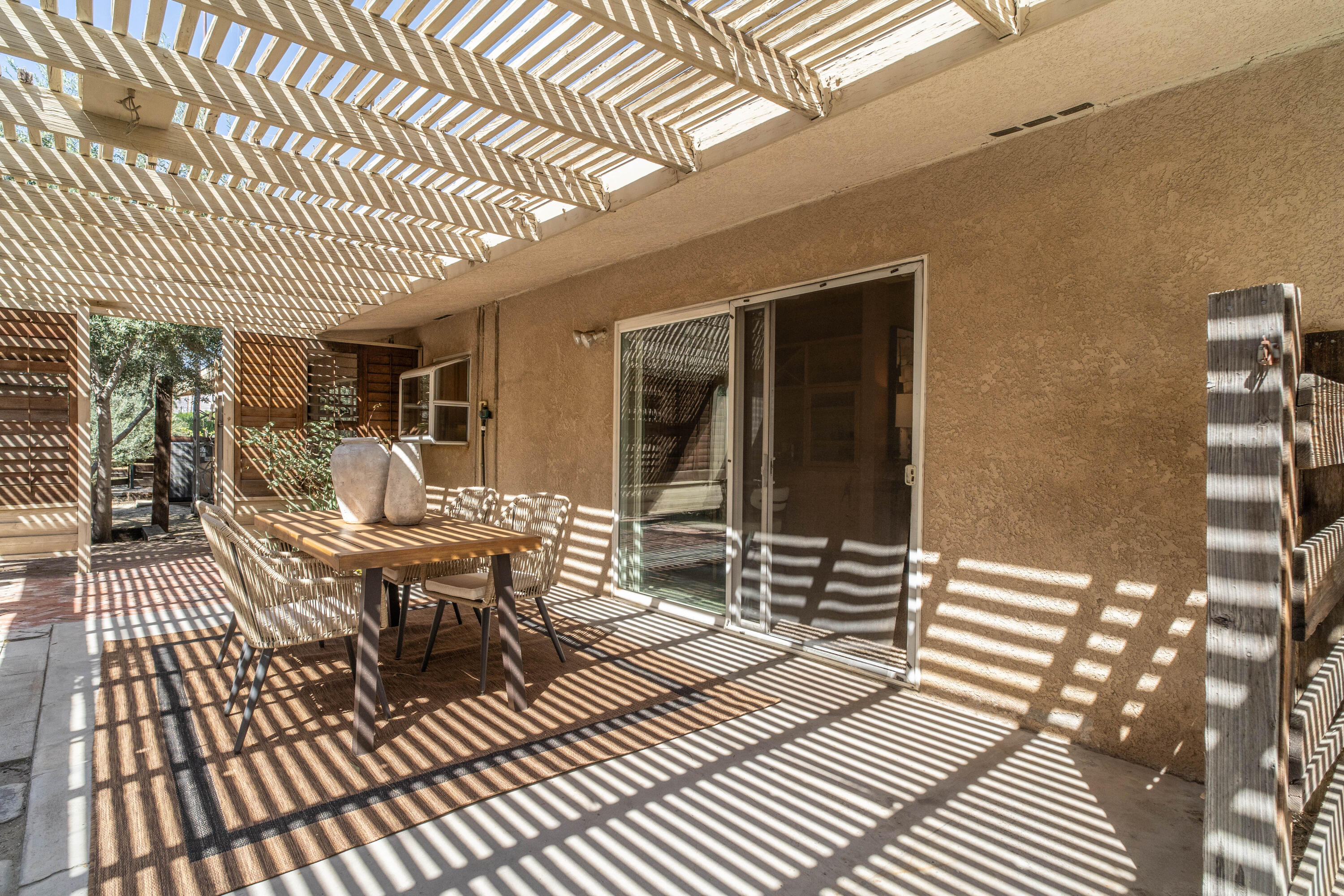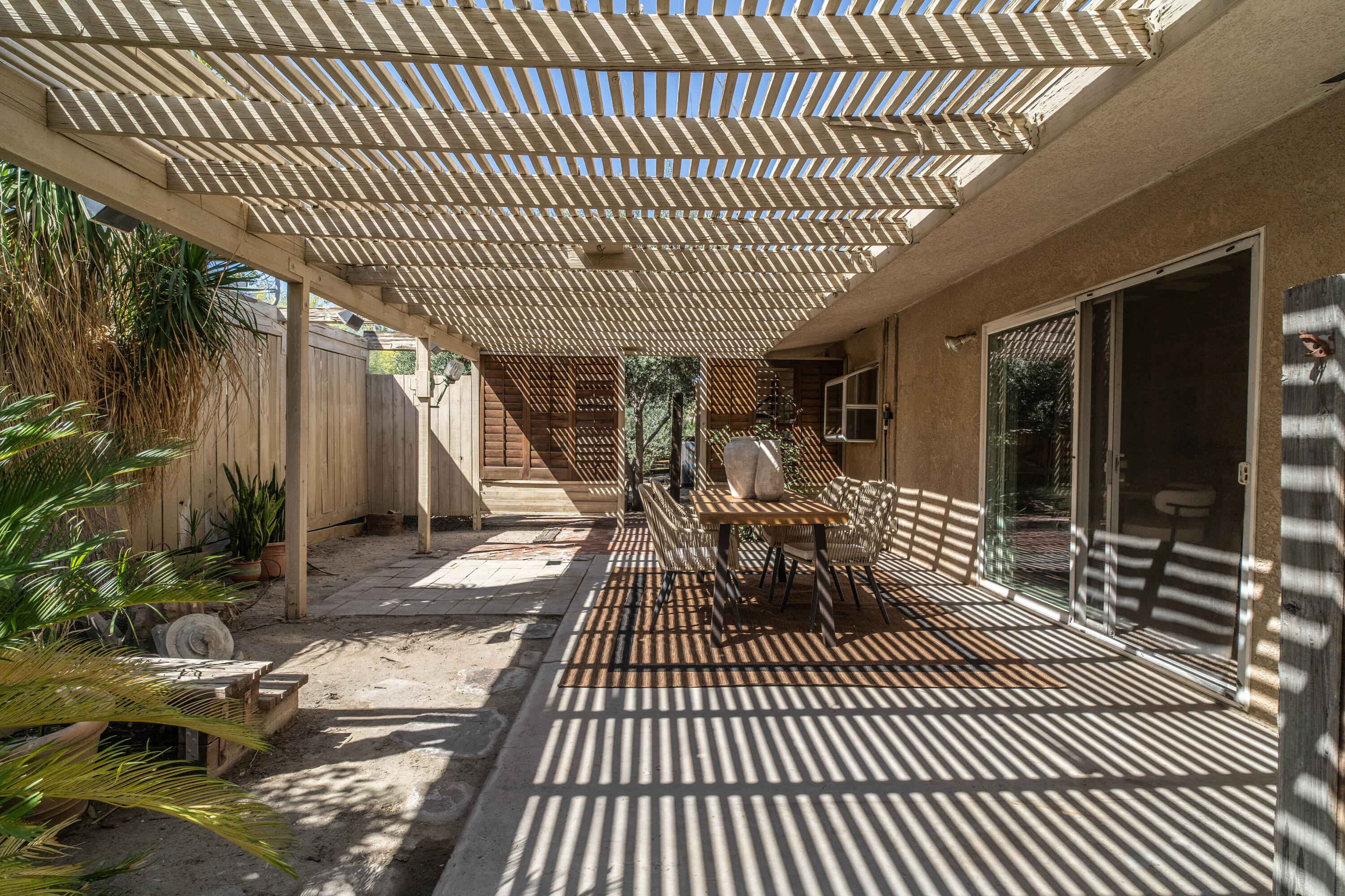 First time on the market, this beautifully maintained ranch-style home offers a rare blend of comfort, charm, and convenience. Featuring three bedrooms and two and a half bathrooms, the thoughtful floor plan provides separation between bedrooms and living spaces, perfect for privacy and functionality. The living room is a showstopper with soaring high ceilings, exposed beams, and a cozy brick fireplace, creating a warm and inviting space for gatherings or quiet evenings at home. The updated kitchen is a chef's dream, complete with dual sinks, ample counter space, and all the modern conveniences a cook could desire. An ample office space with a separate entrance provides flexibility for remote work, study, or creative projects. The primary suite is a serene retreat, featuring its own fireplace, walk-in closet, and an updated bathroom with a luxurious walk-in shower. Step outside to your private desert oasis: a beautifully landscaped pool area and a wraparound patio offer the perfect setting for entertaining, relaxing, or enjoying the starry desert nights. The property provides a seamless indoor-outdoor lifestyle, ideal for enjoying Palm Desert's perfect climate. The long, spacious driveway can accommodate RVs, Airstreams, and multiple vehicles with ease. Located in an established, highly desirable neighborhood, this home is just blocks from everyday conveniences. A short drive south brings you to the iconic El Paseo shopping and dining district, while heading west leads to the San Pablo Corridor -- Palm Desert's vibrant city center connecting residential neighborhoods with City Hall, College of the Desert, Civic Center Park, the McCallum Theater, and a wide array of shops and restaurants. With its high ceilings, exposed beams, cozy fireplaces, Plantation shutters throughout the home, modern updates, private pool, and prime location, this home perfectly combines desert charm and convenience. With a little TLC, it's ready to become a comfortable and inviting place to call home, offering both indoor and outdoor spaces that can be enjoyed year-round. This property is a rare opportunity to enjoy the quintessential Palm Desert lifestyle at its finest.